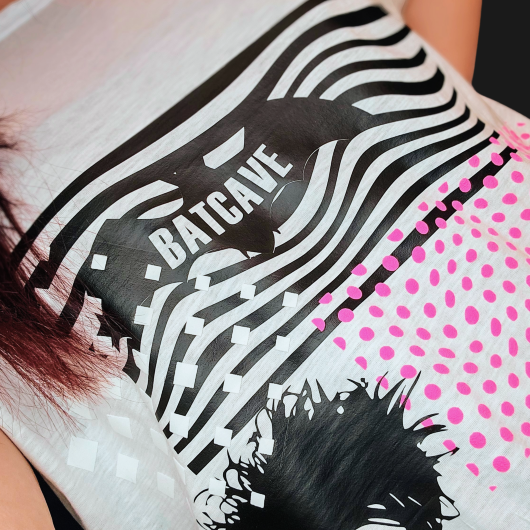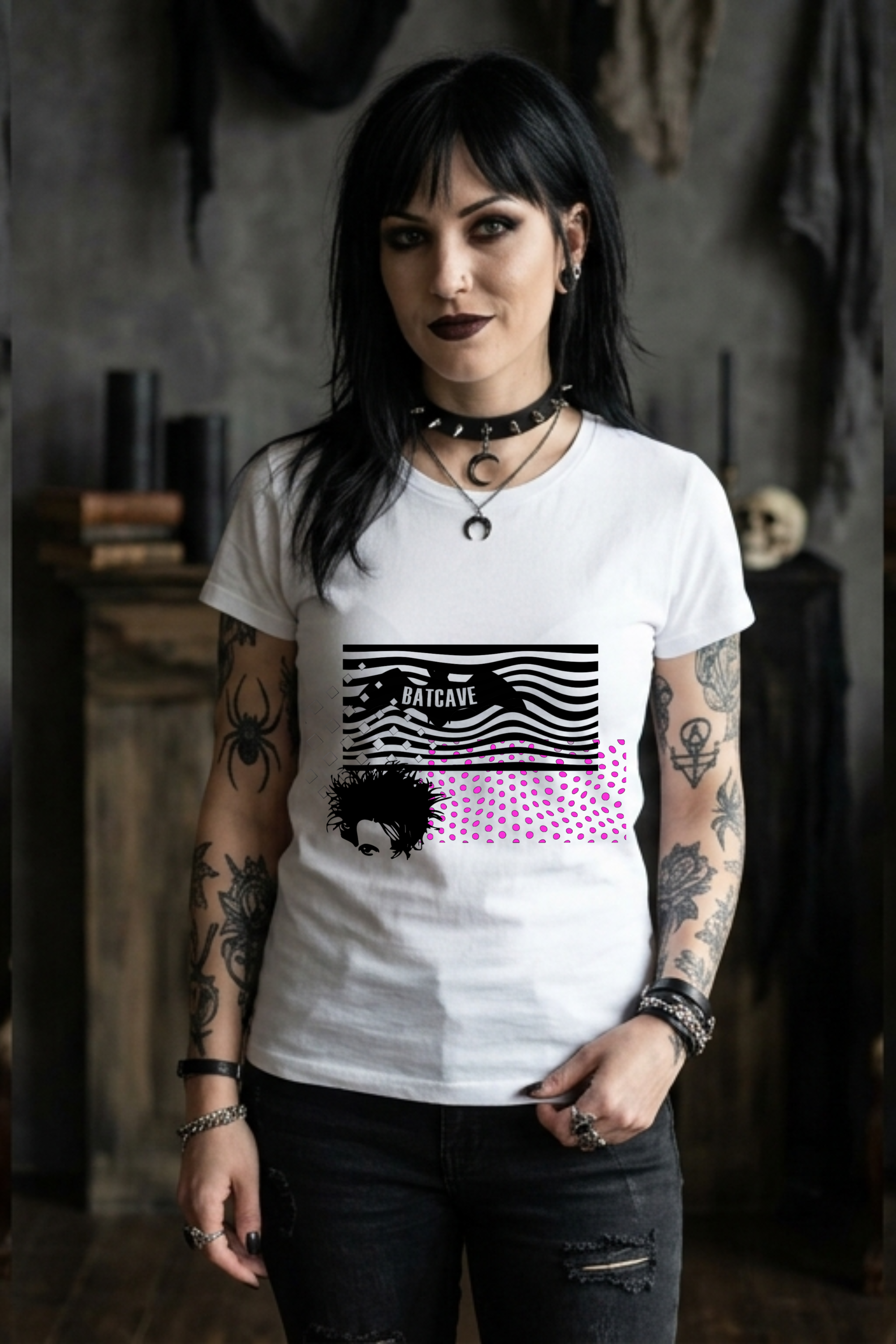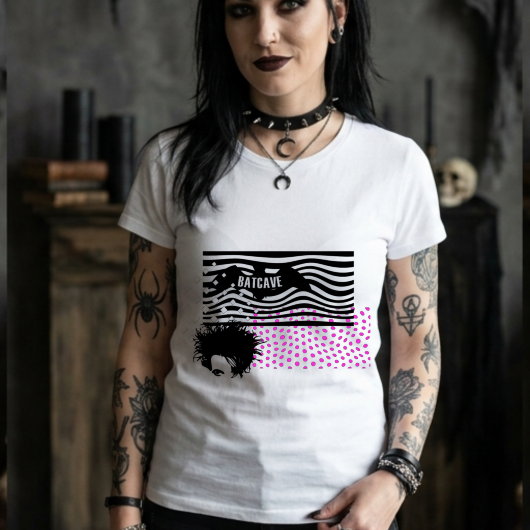 Dieses Shirt trägt die DNA der frühen Gothicszene: schwarz, weiß, Neon-Pink. Kein Kompromiss, kein Fast-Fashion-Vibe. Das Design verbindet die rohe Energie der 80er Club Culture mit einem klaren visuellen Statement – getragen von Menschen, die Dark Wave nicht nur hören, sondern leben.