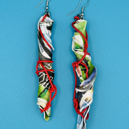 I upcycled discarded material into one-of-a-kind wearable art pieces.