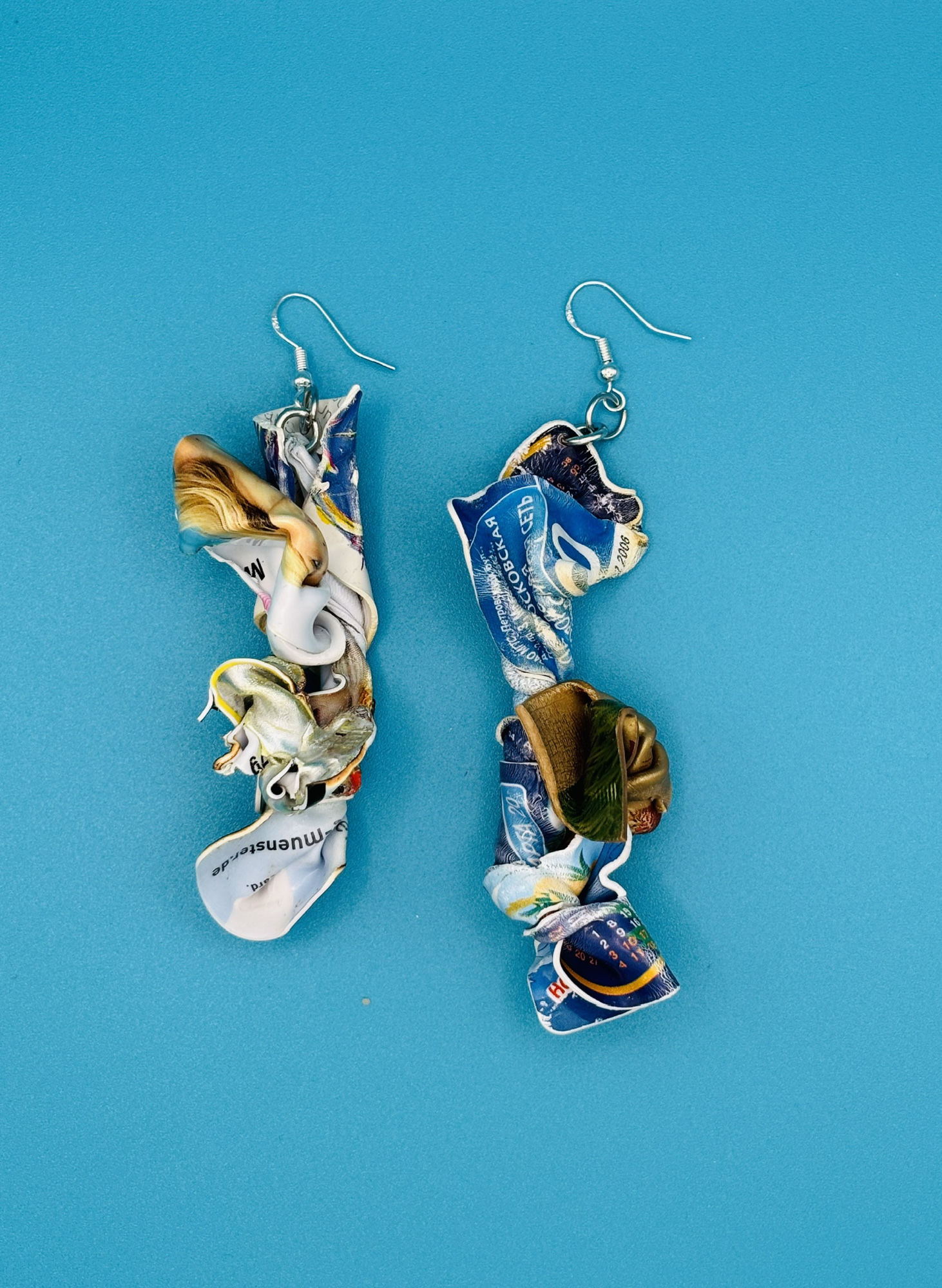 Handmade up-cycle Wearable Art earrings. They are bold, fun, and elegant. Light in weight.