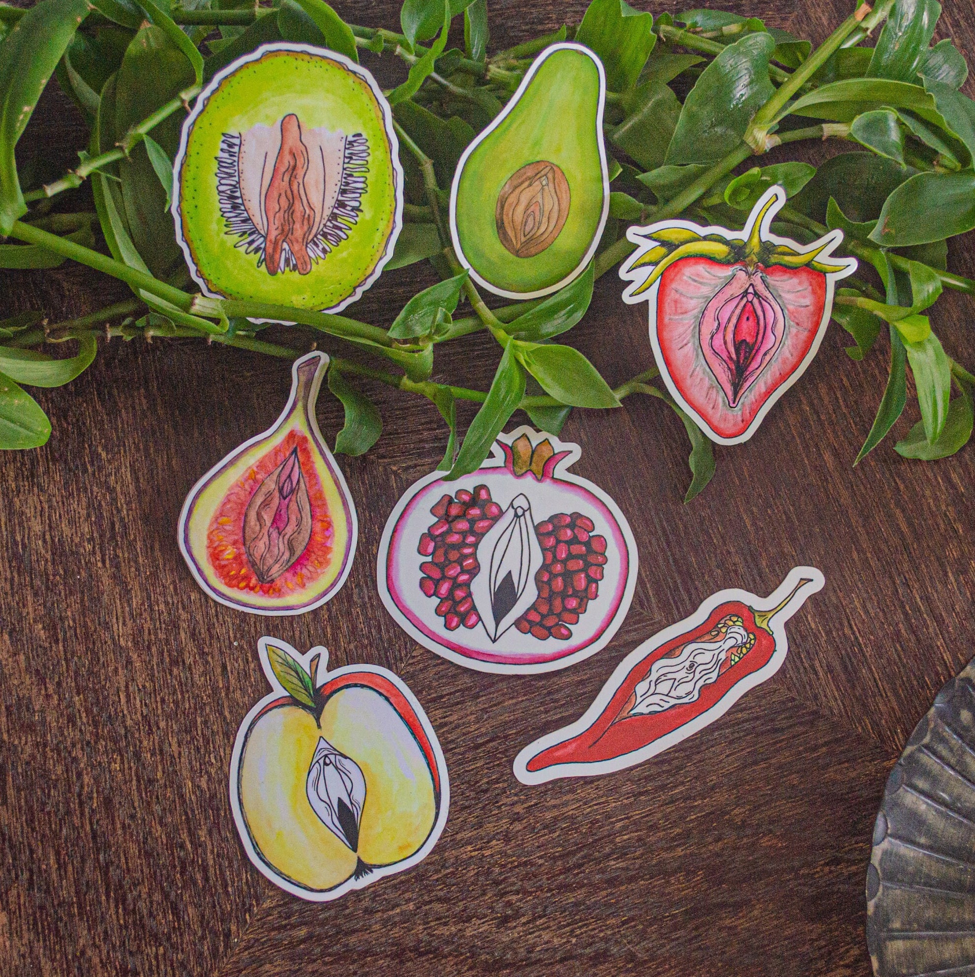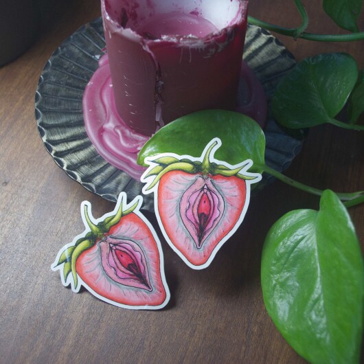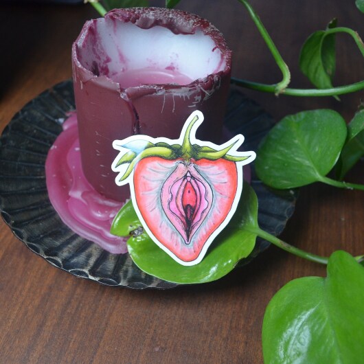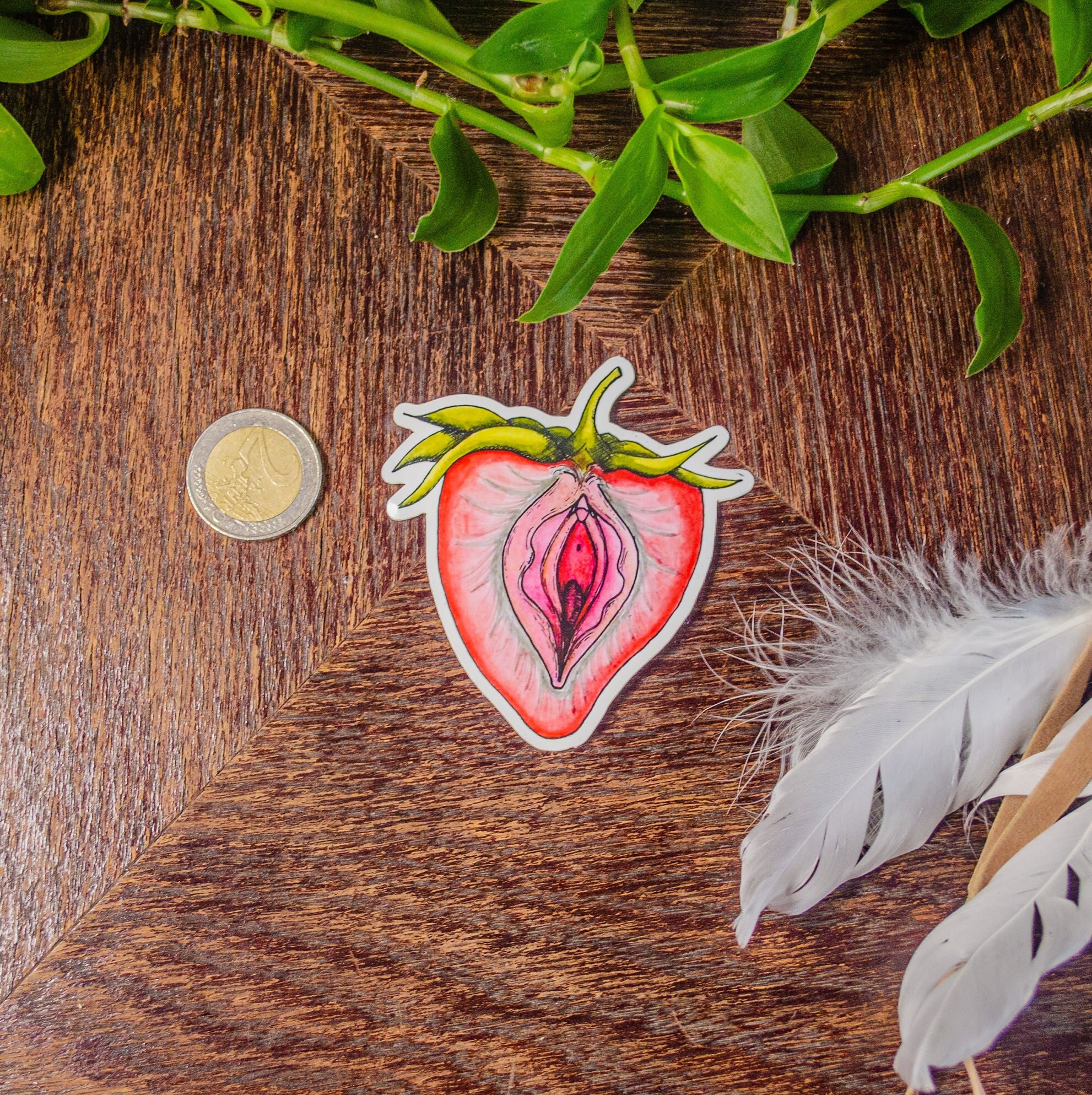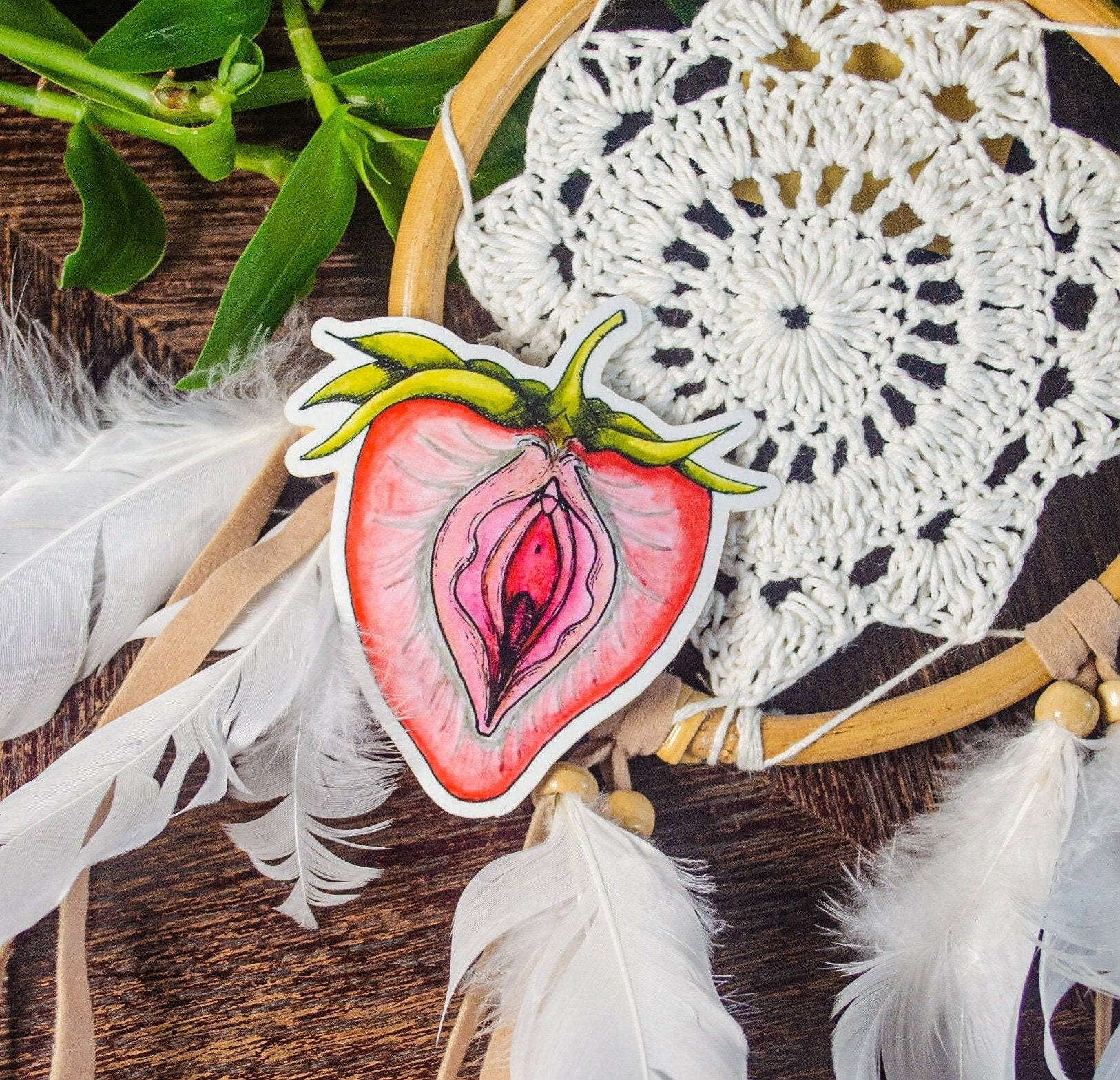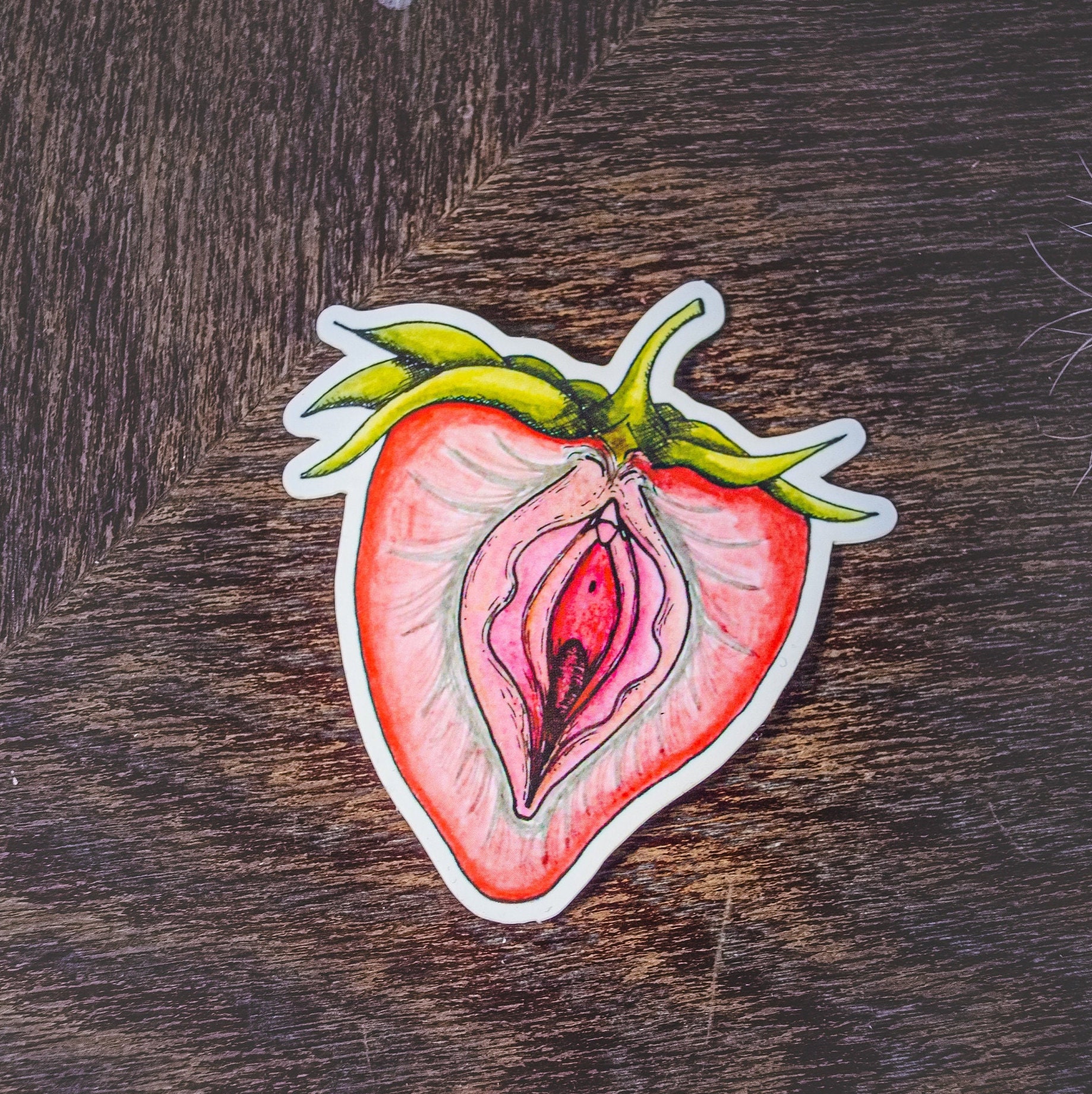 Strawberry Vulva Sticker | Feminist Art Accessory | Fruit Illustration | Viva la Vulva Drawing