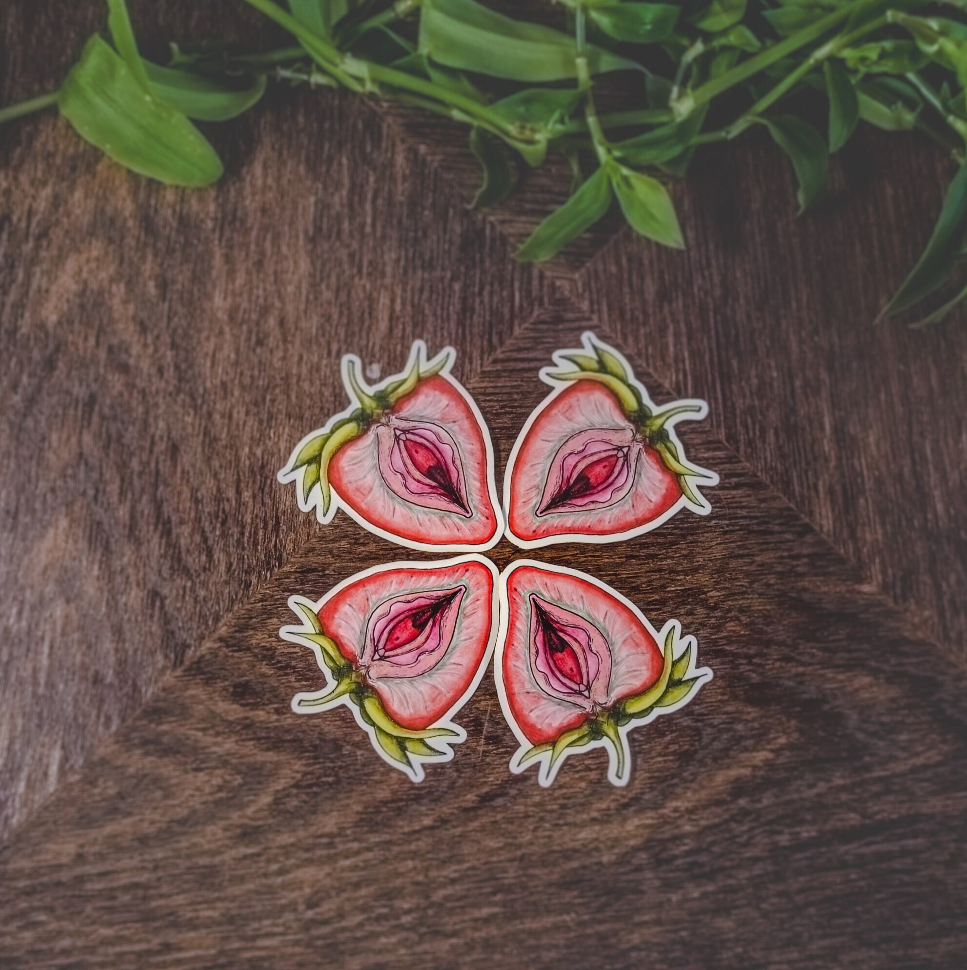 Everybody loves strawberries! Indulge in the sweet and playful charm of the Strawberry Vulva Sticker! This tastefully designed sticker celebrates body positivity and embraces the beauty of diversity. Crafted with high-quality materials and vibrant colors, this sticker is perfect for adorning your laptop, water bottle, or any surface that could use a touch of fruity femininity. This Strawberry Vulva Sticker is more than just an accessory; it's a statement of self-love and acceptance. Whether you're gifting it to a friend or treating yourself, this sticker is a unique way to express confidence and joy.