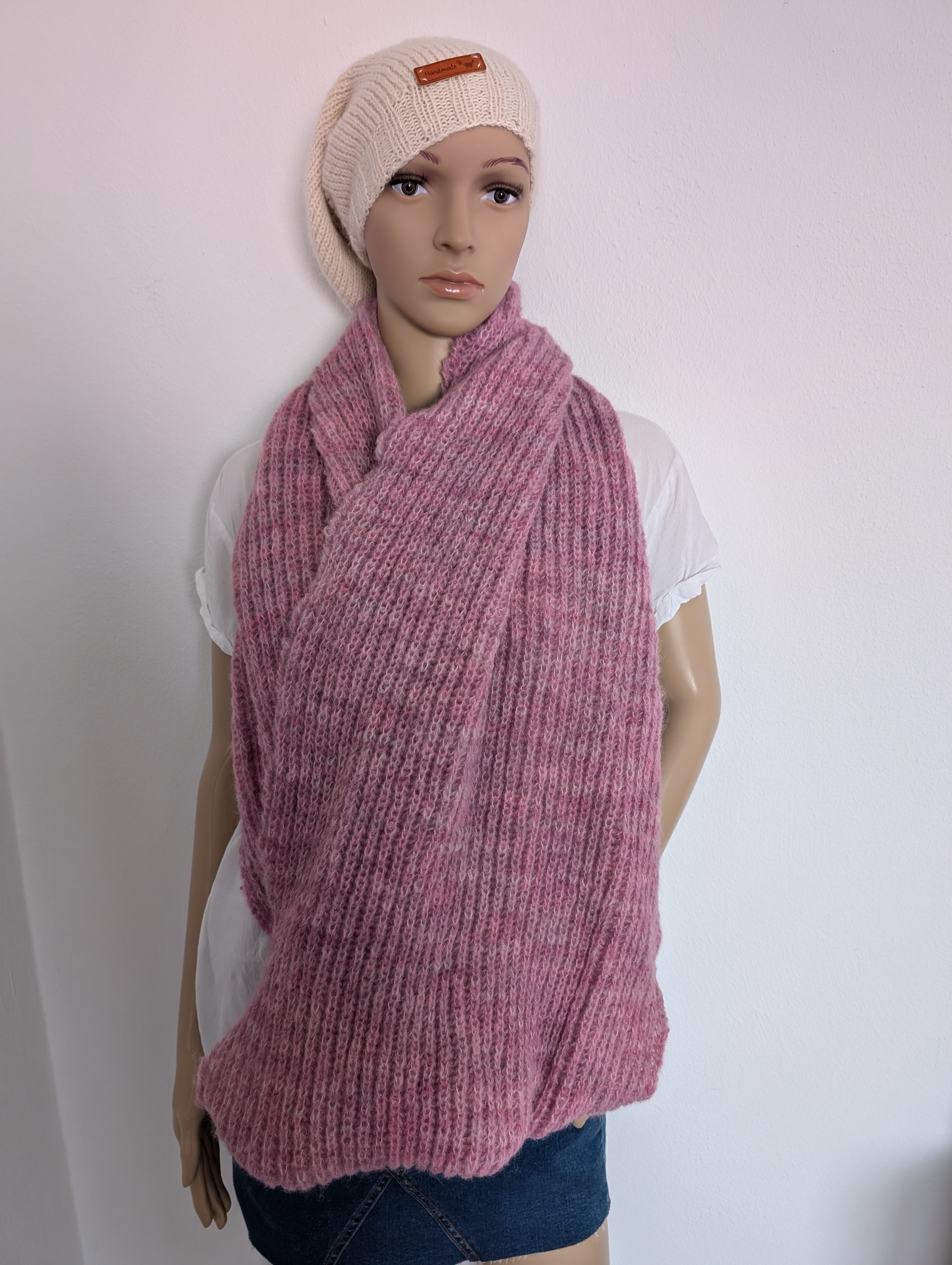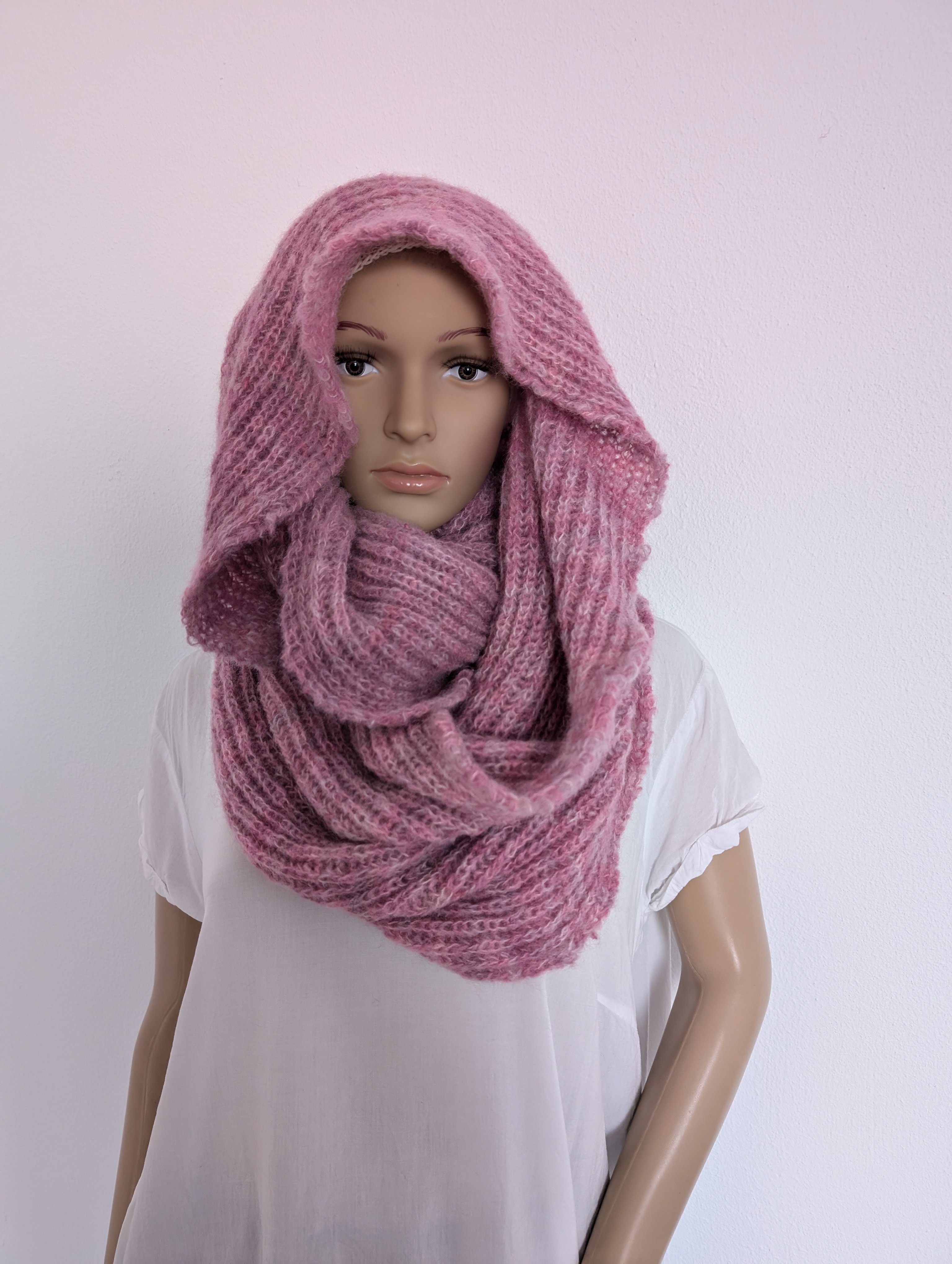 Dieser edle Loopschal wurde in liebevoller Handarbeit aus reiner Babyalpaka-Wolle gefertigt. Die rosa melierte Farbgebung verleiht ihm eine sanfte, feminine Ausstrahlung, während die feine Rippenstruktur für angenehme Elastizität und optimalen Tragekomfort sorgt.