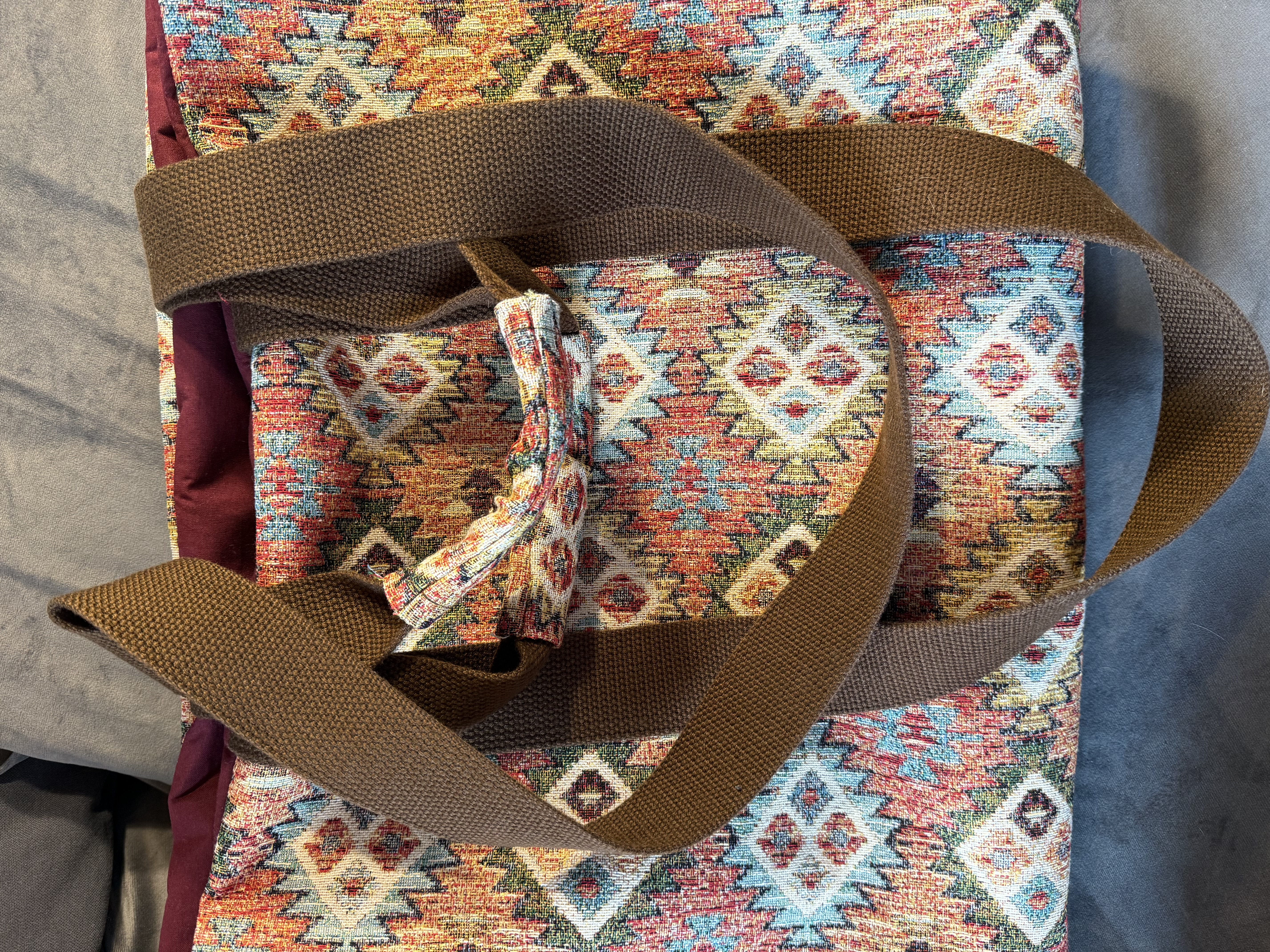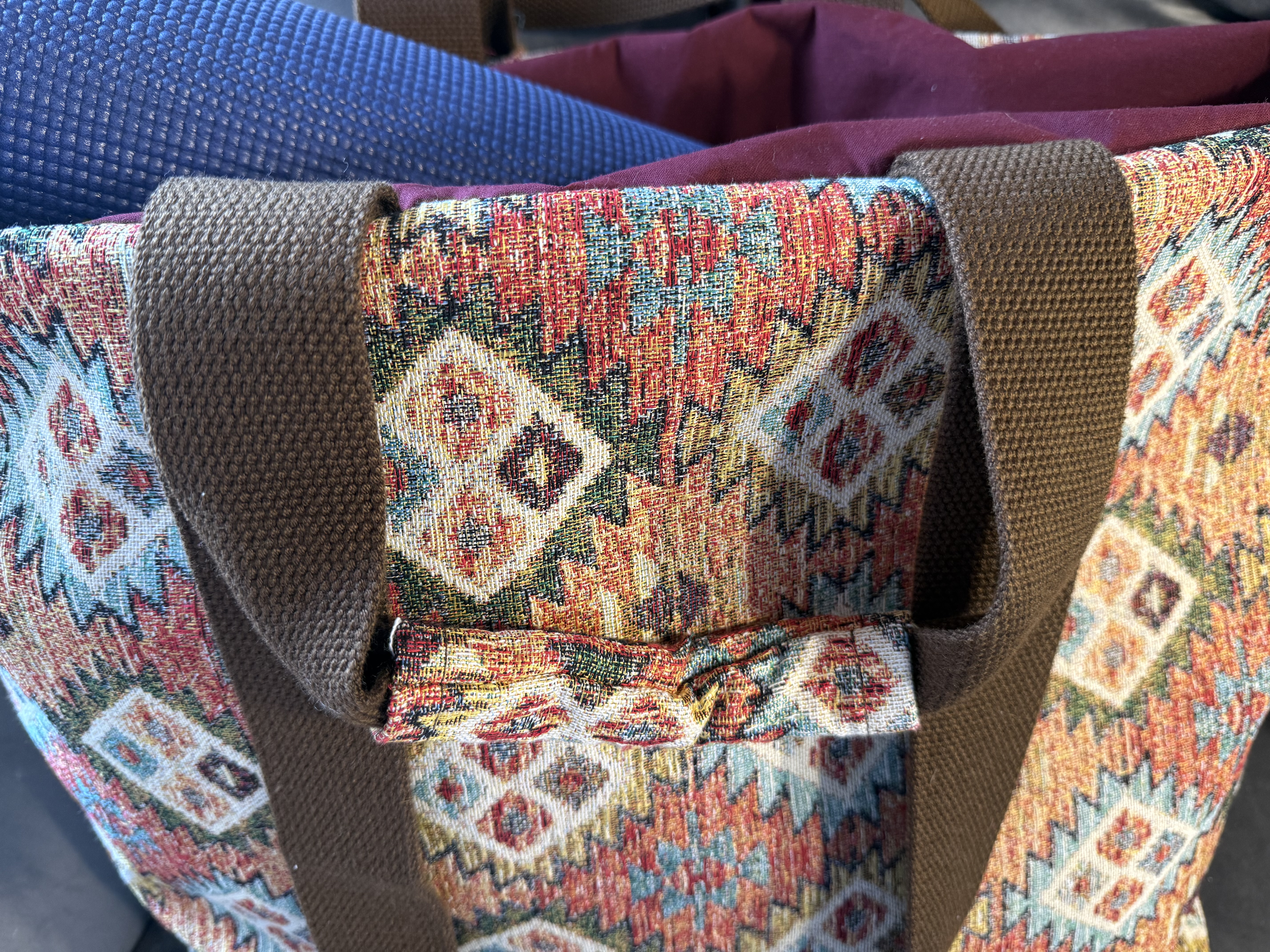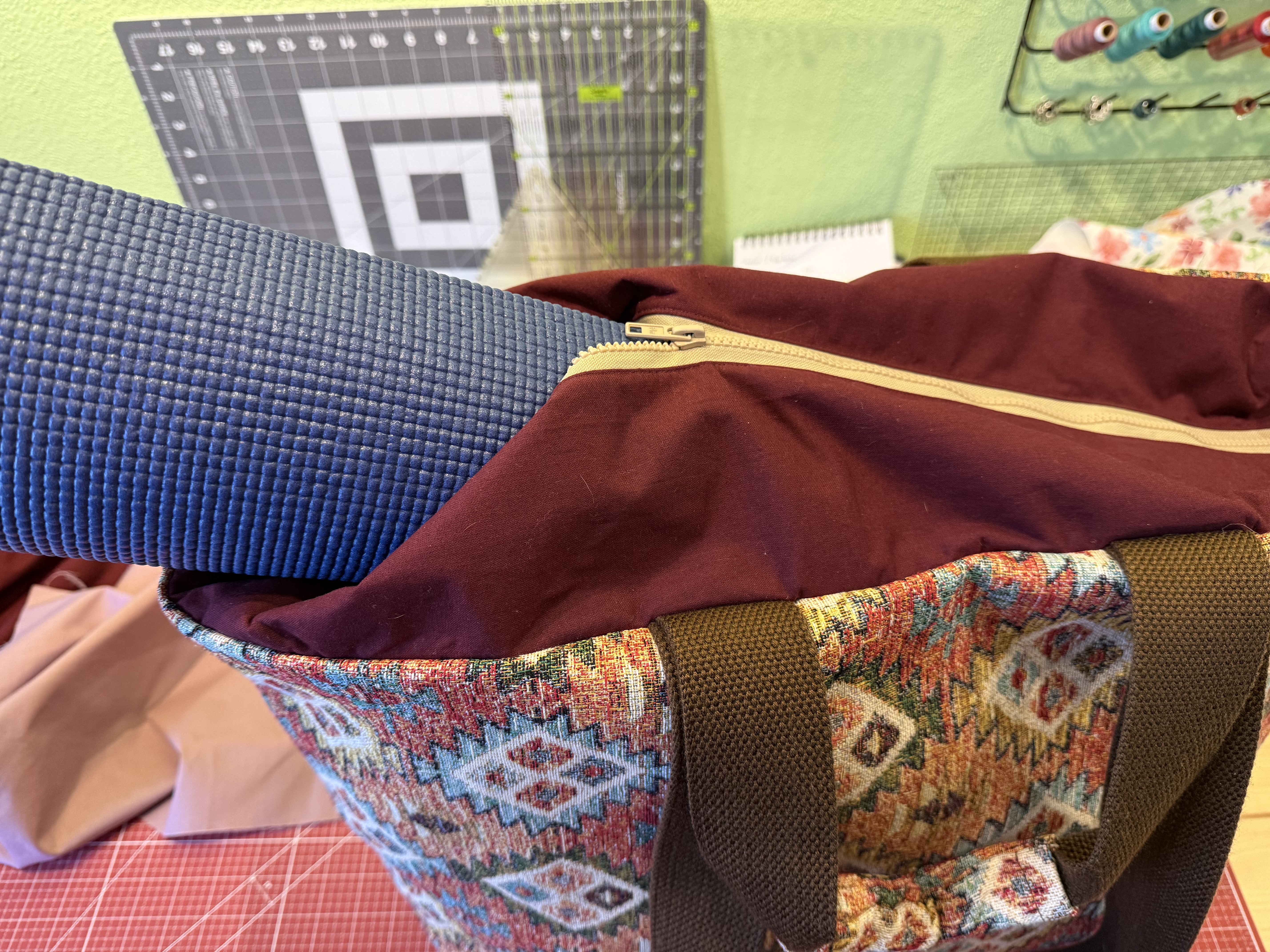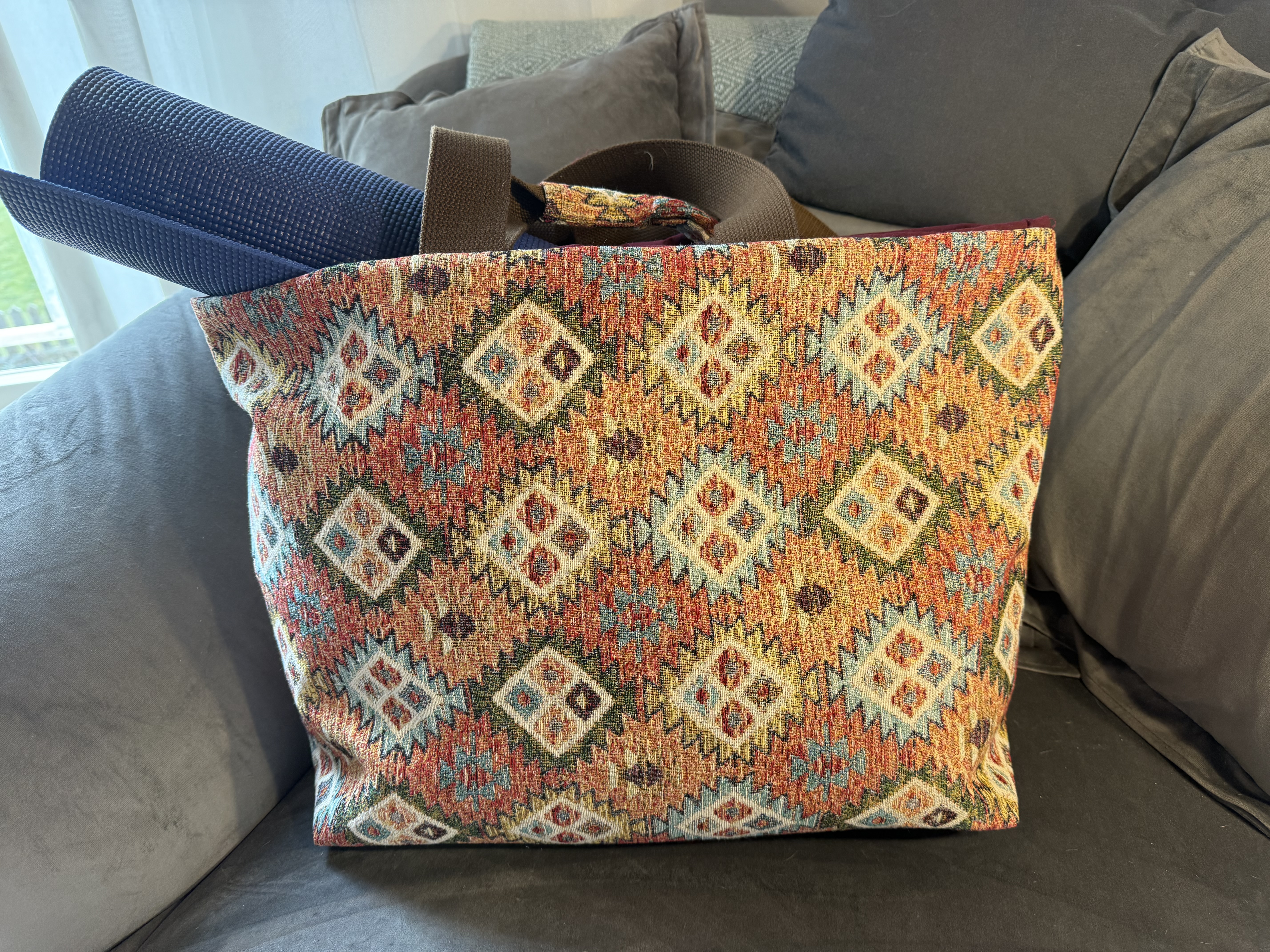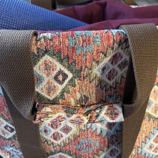 raktische Yogatasche, groß genug für Sitzkissen, Decke und Yogamatte (siehe Foto).