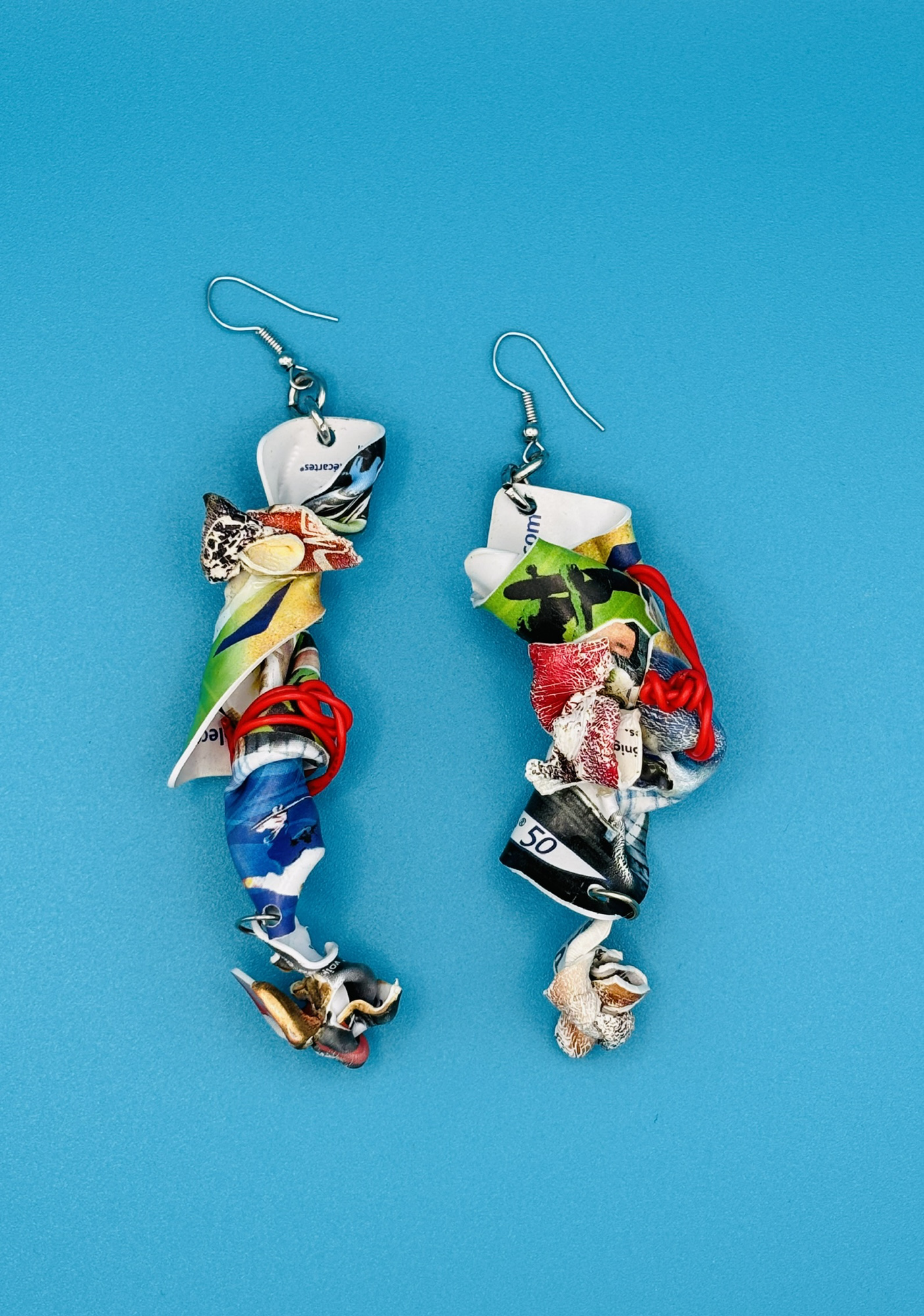 Handmade up-cycle Wearable Art earrings. They are bold, fun, and elegant. Light in weight.