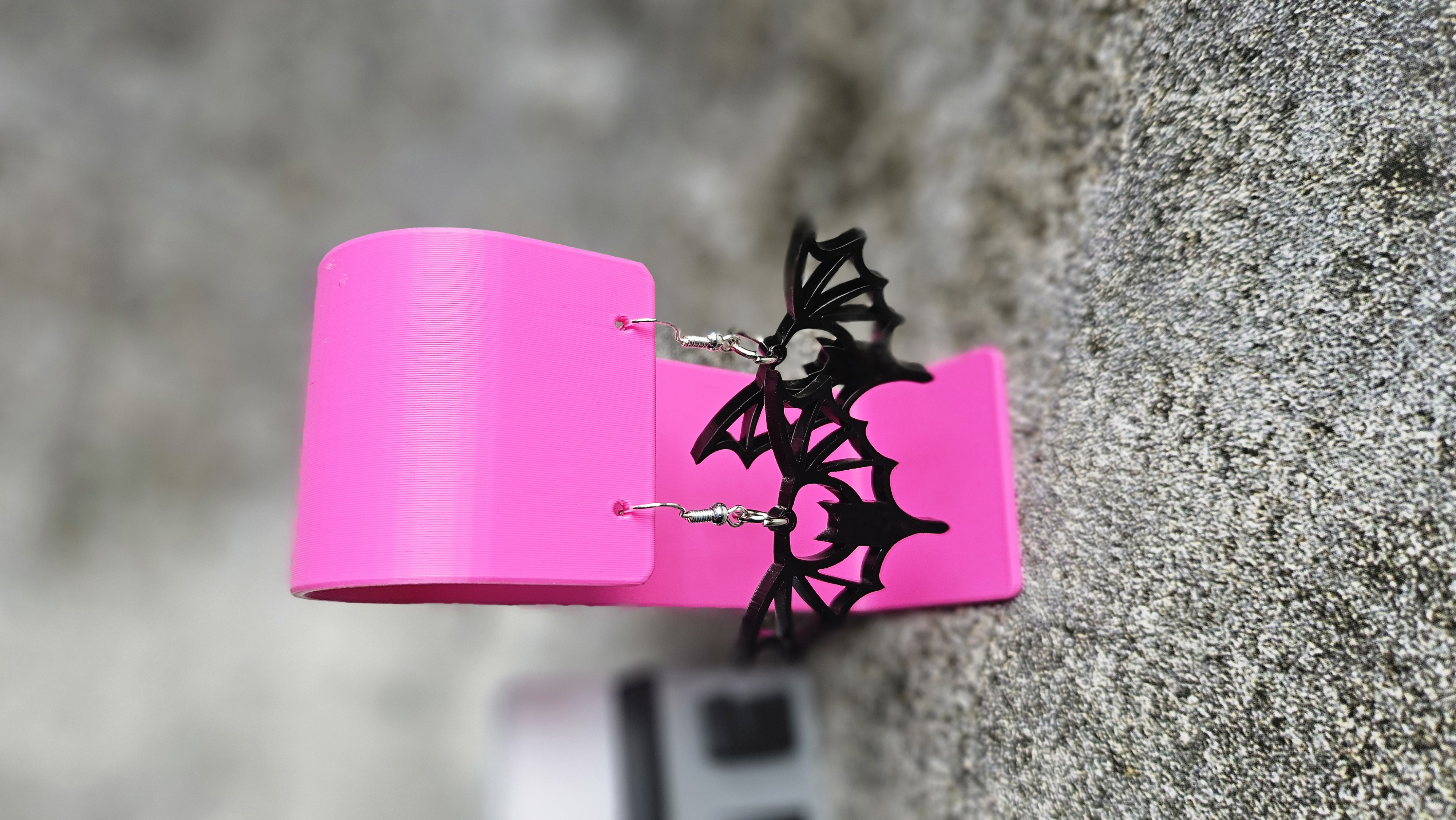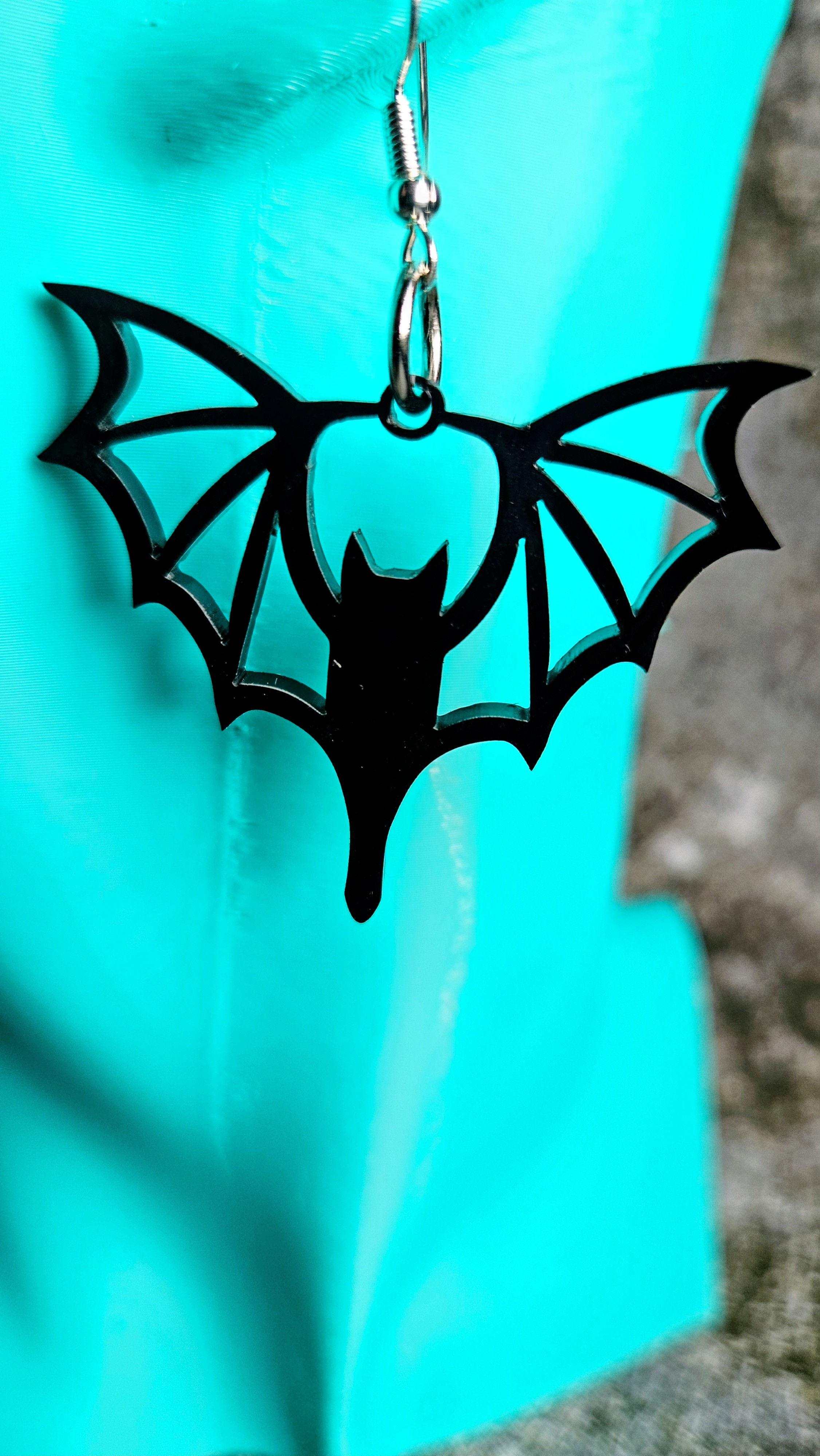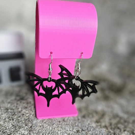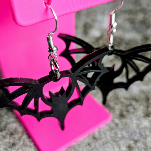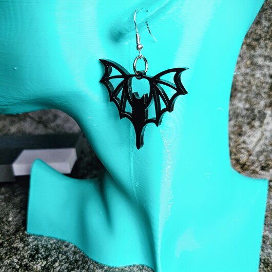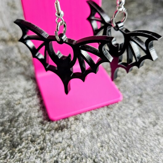 Jedes Paar wird aus 3 mm starkem, hochglänzendem schwarzen Acryl gelasert. Die detaillierte Schnittführung der Fledermausflügel sorgt für eine markante Silhouette – federleicht, detailreich, unverwechselbar. Lasergeschnittener Schmuck auf diesem Niveau ist kein Massenartikel. Er ist ein Statement.