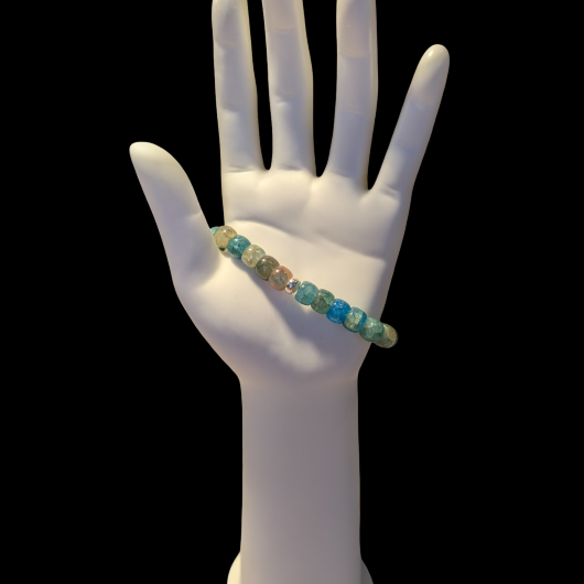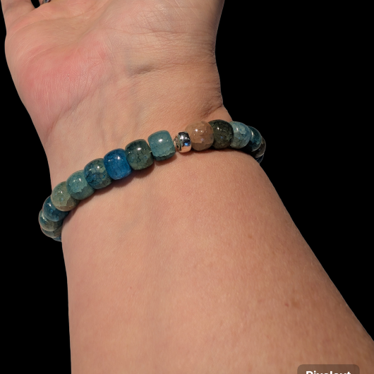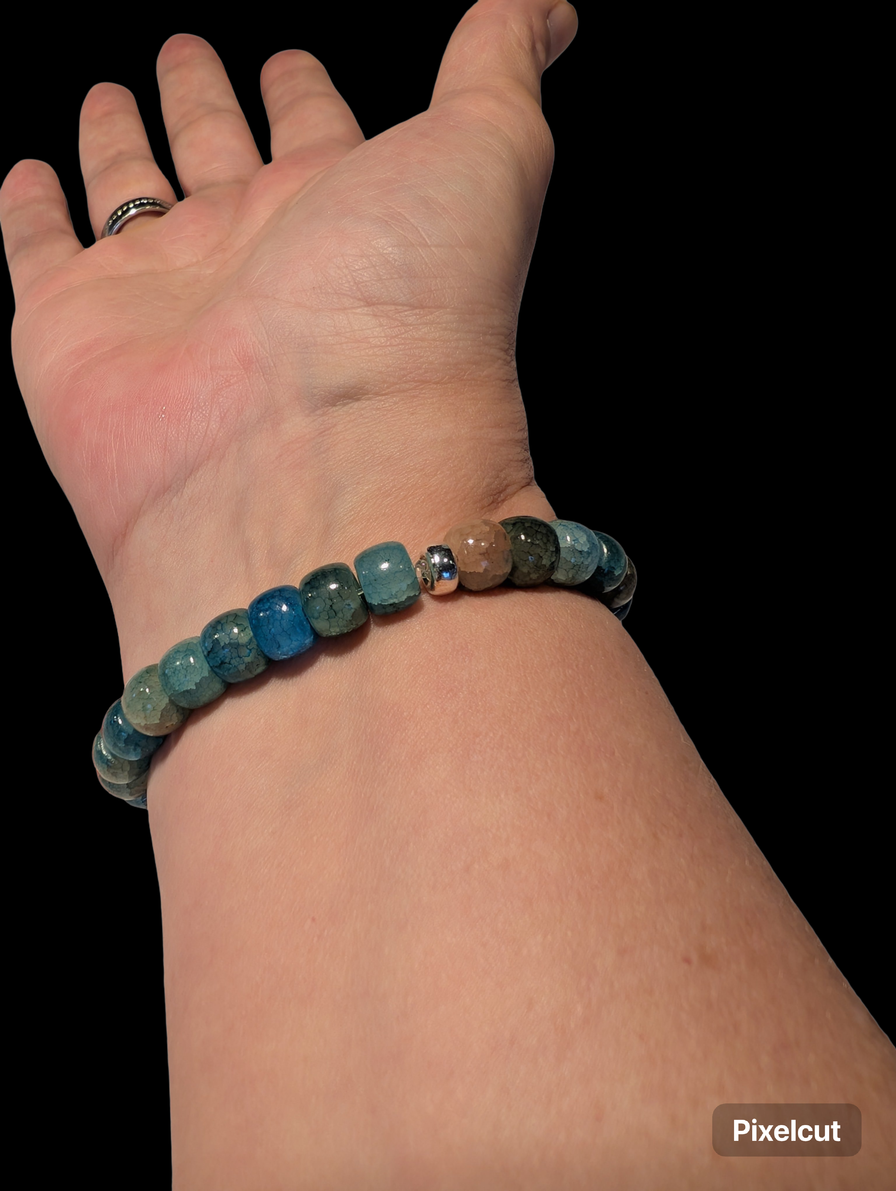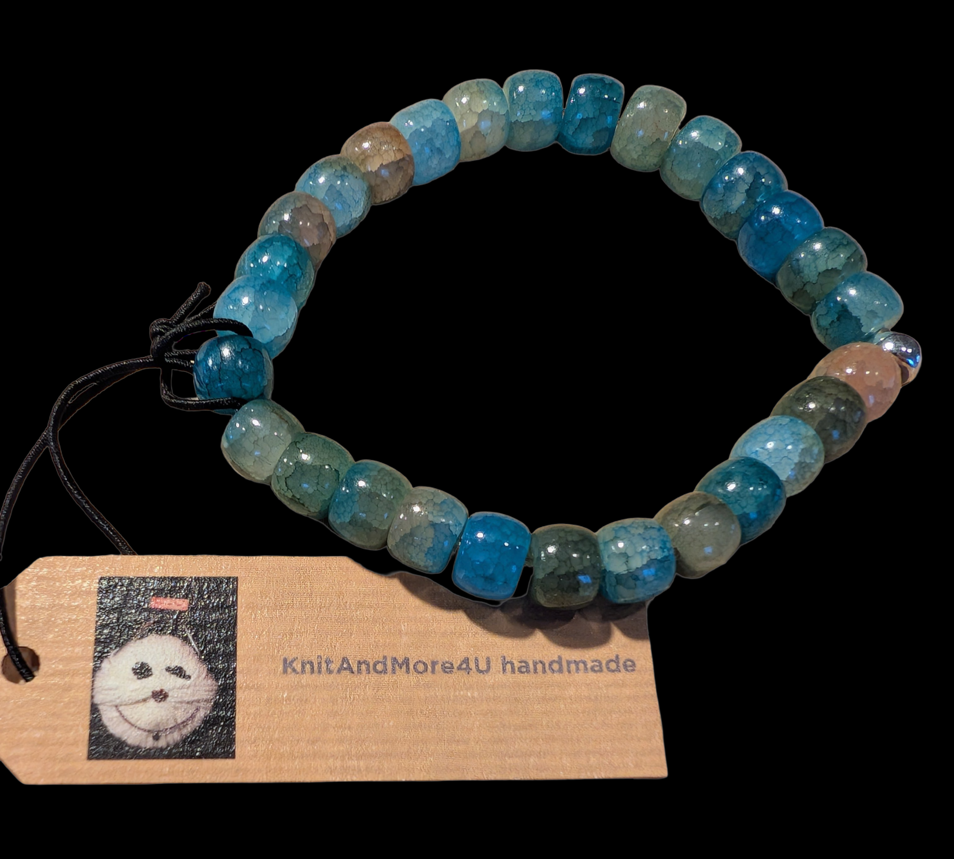 Entdecke dieses liebevoll gefertigte Armband aus echten Achat Natursteinperlen in harmonischen Blau-, Grün- und Rosétönen. Die hochwertigen Fassperlen mit 8 mm Durchmesser verleihen dem Schmuckstück eine elegante Präsenz, während ein einzelnes Element aus 925er Sterlingsilber für einen edlen Akzent sorgt.
