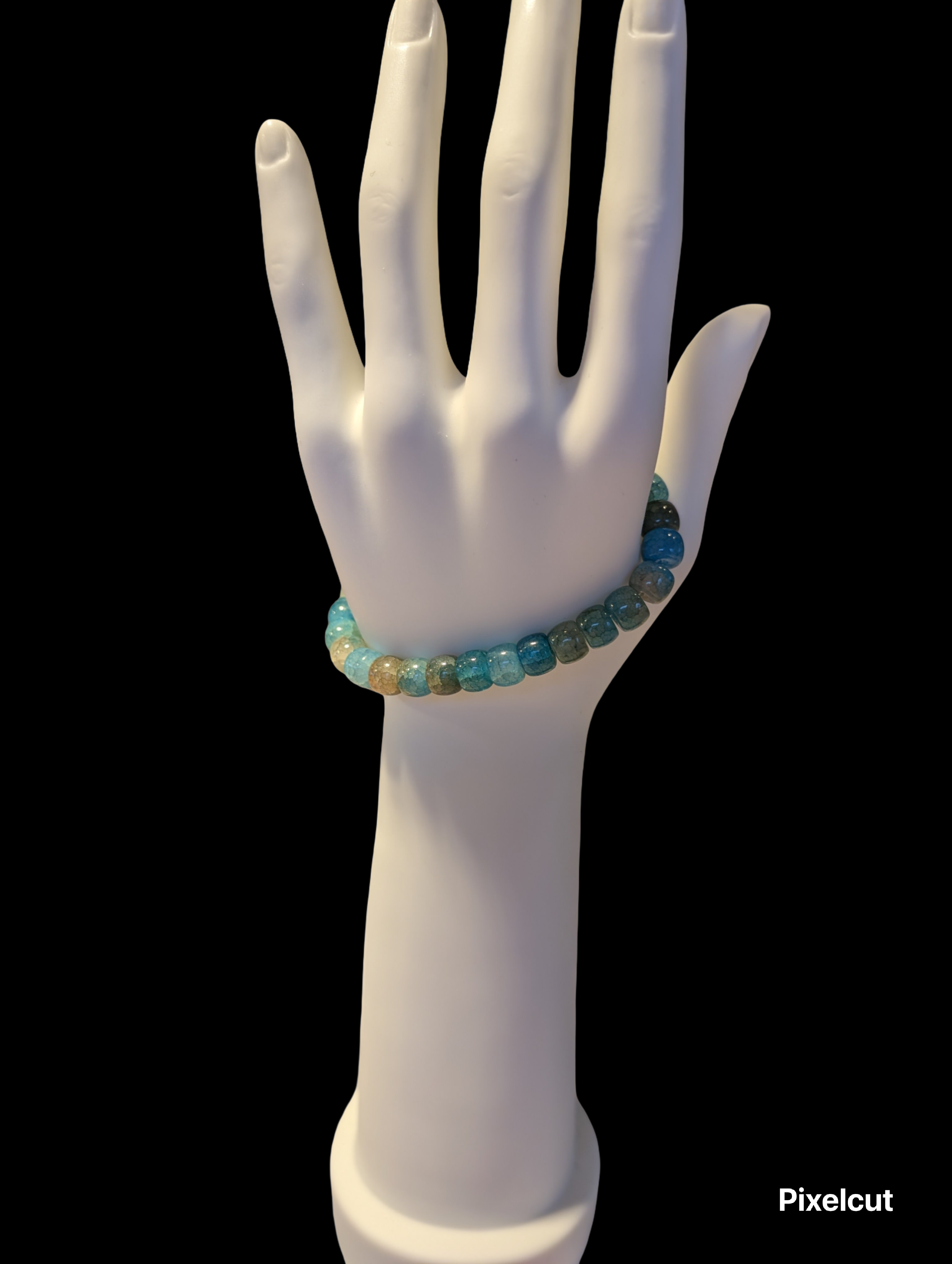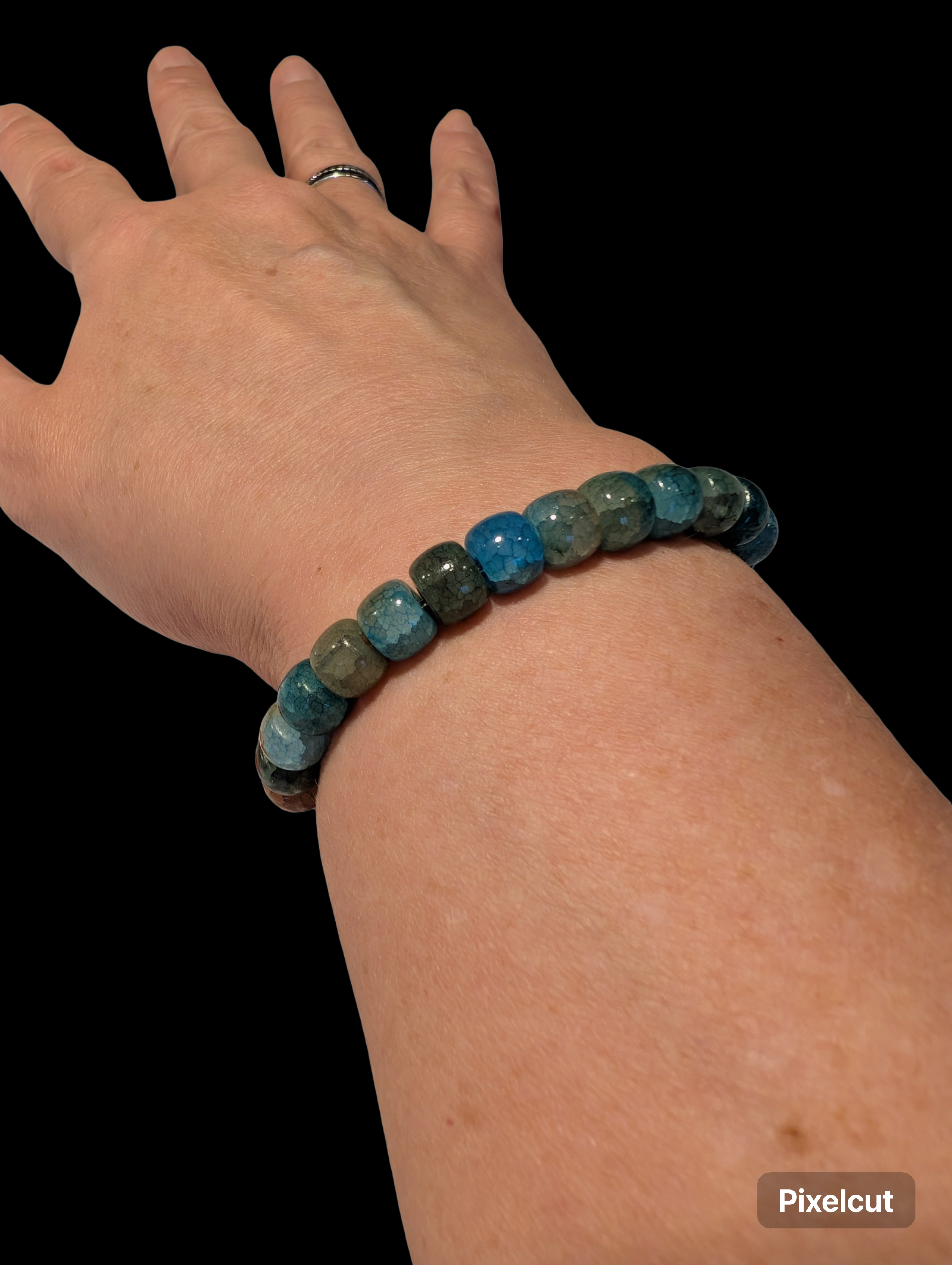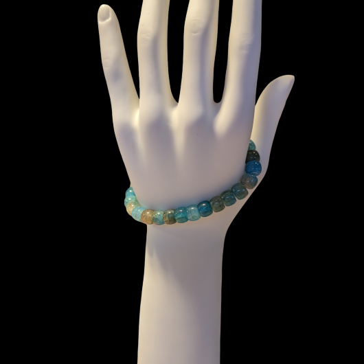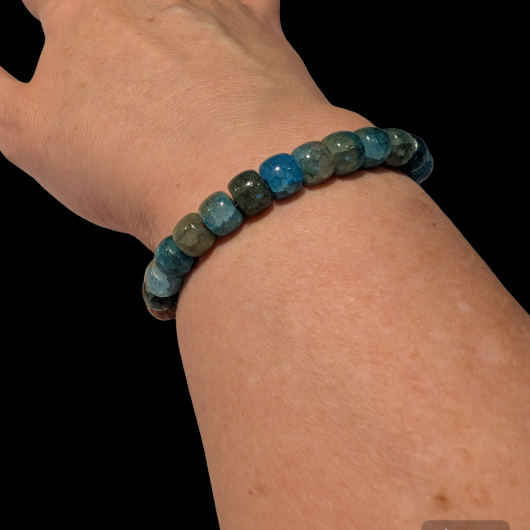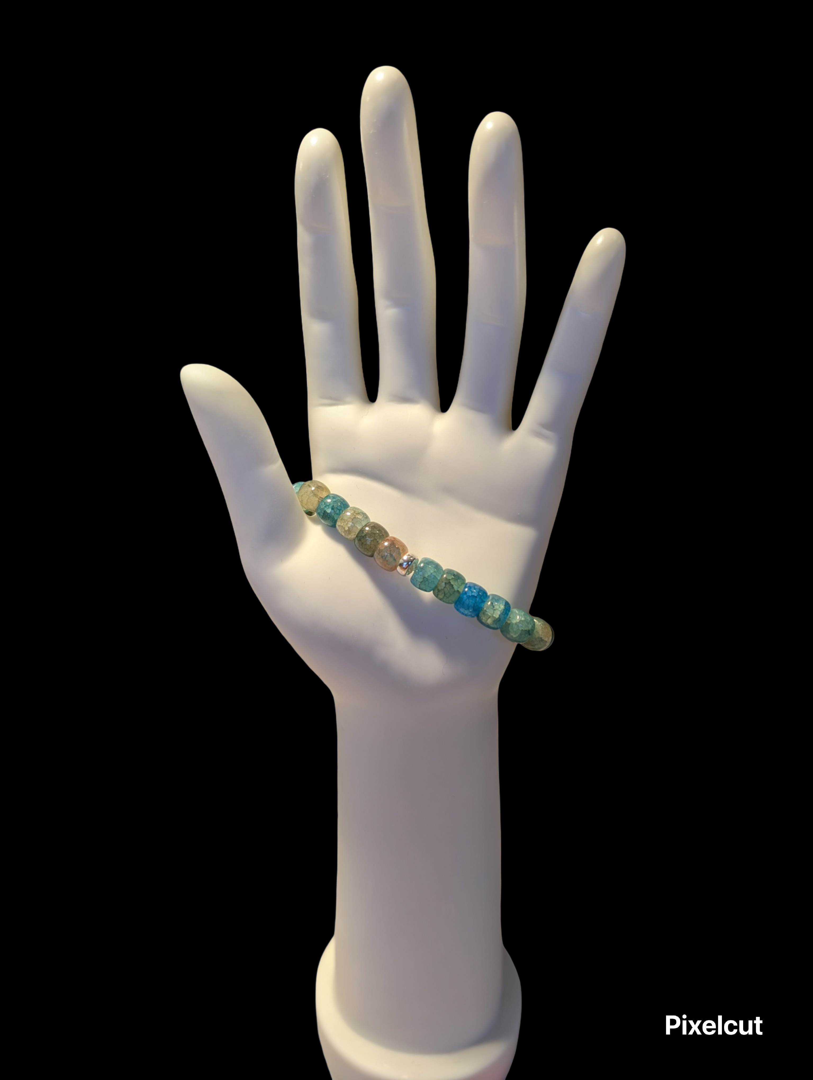 Entdecke dieses liebevoll gefertigte Armband aus echten Achat Natursteinperlen in harmonischen Blau-, Grün- und Rosétönen. Die hochwertigen Fassperlen mit 8 mm Durchmesser verleihen dem Schmuckstück eine elegante Präsenz, während ein einzelnes Element aus 925er Sterlingsilber für einen edlen Akzent sorgt.