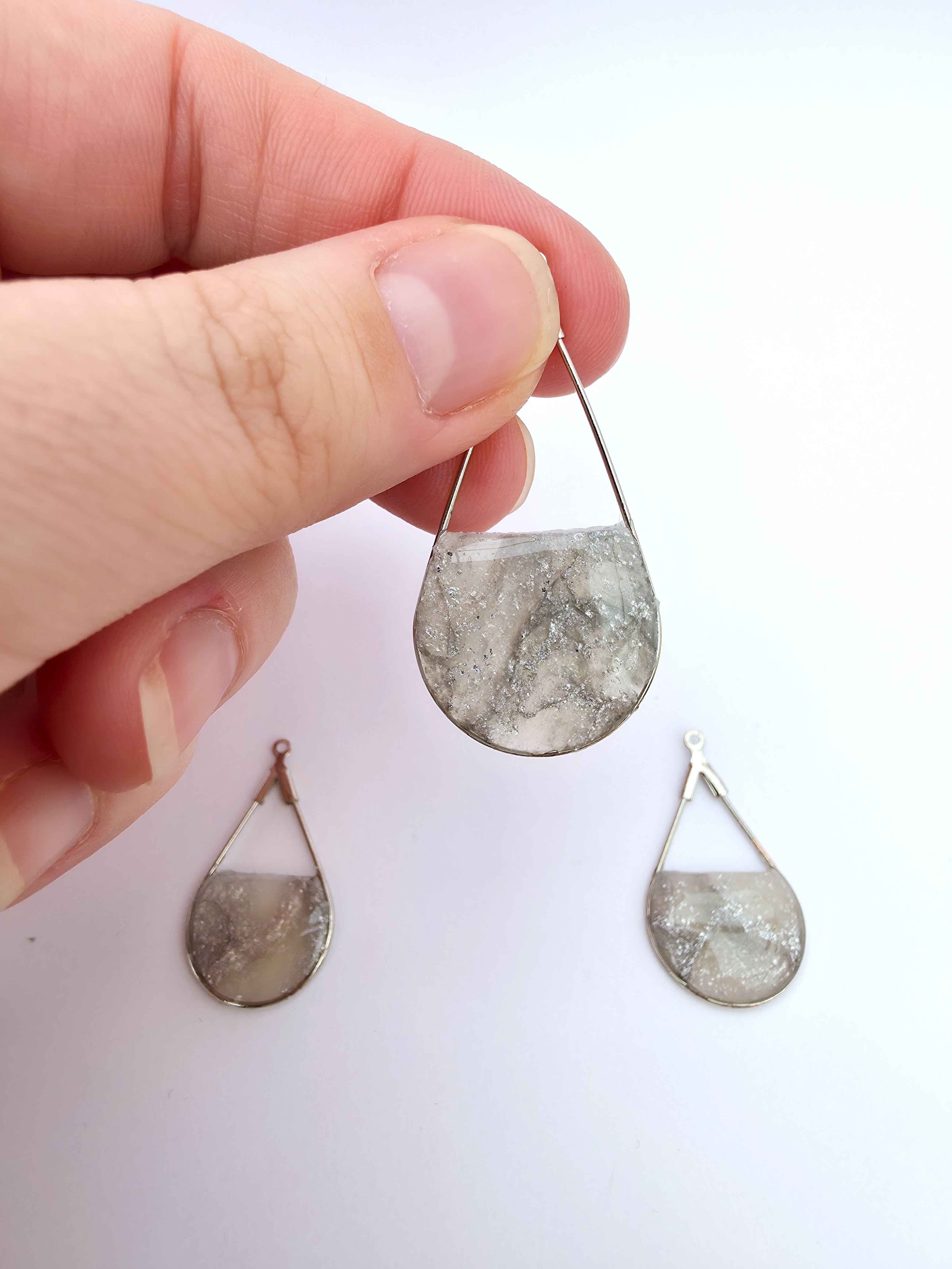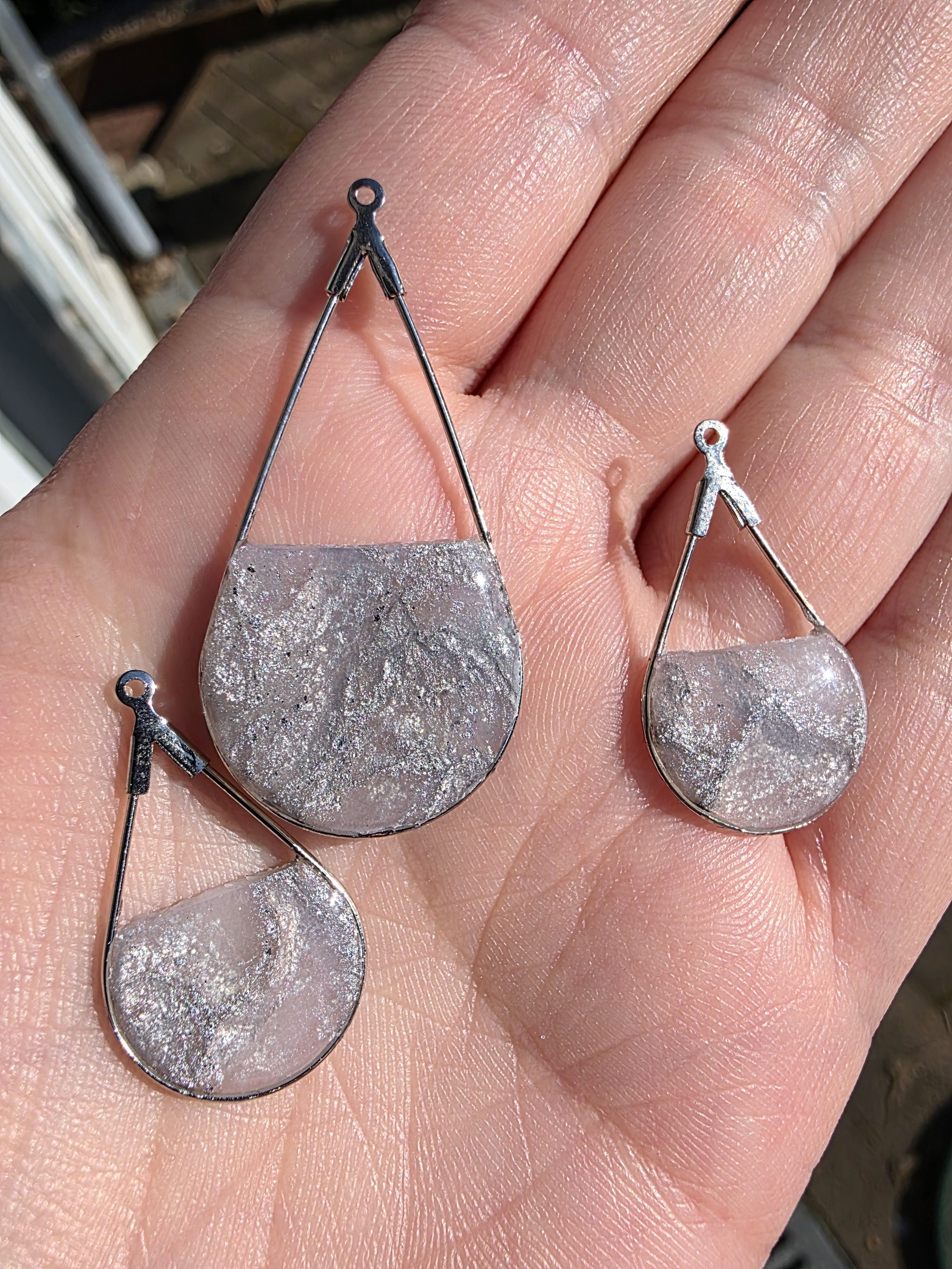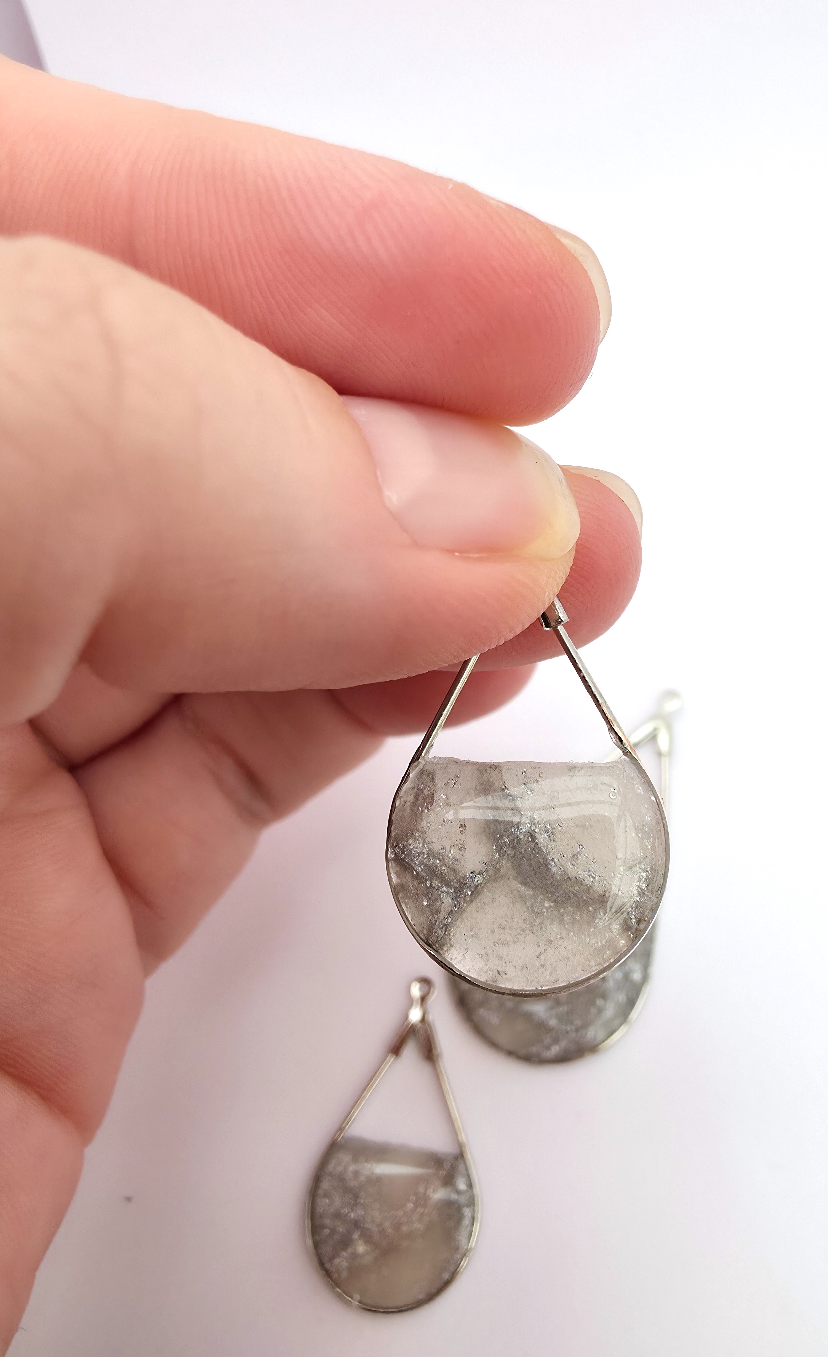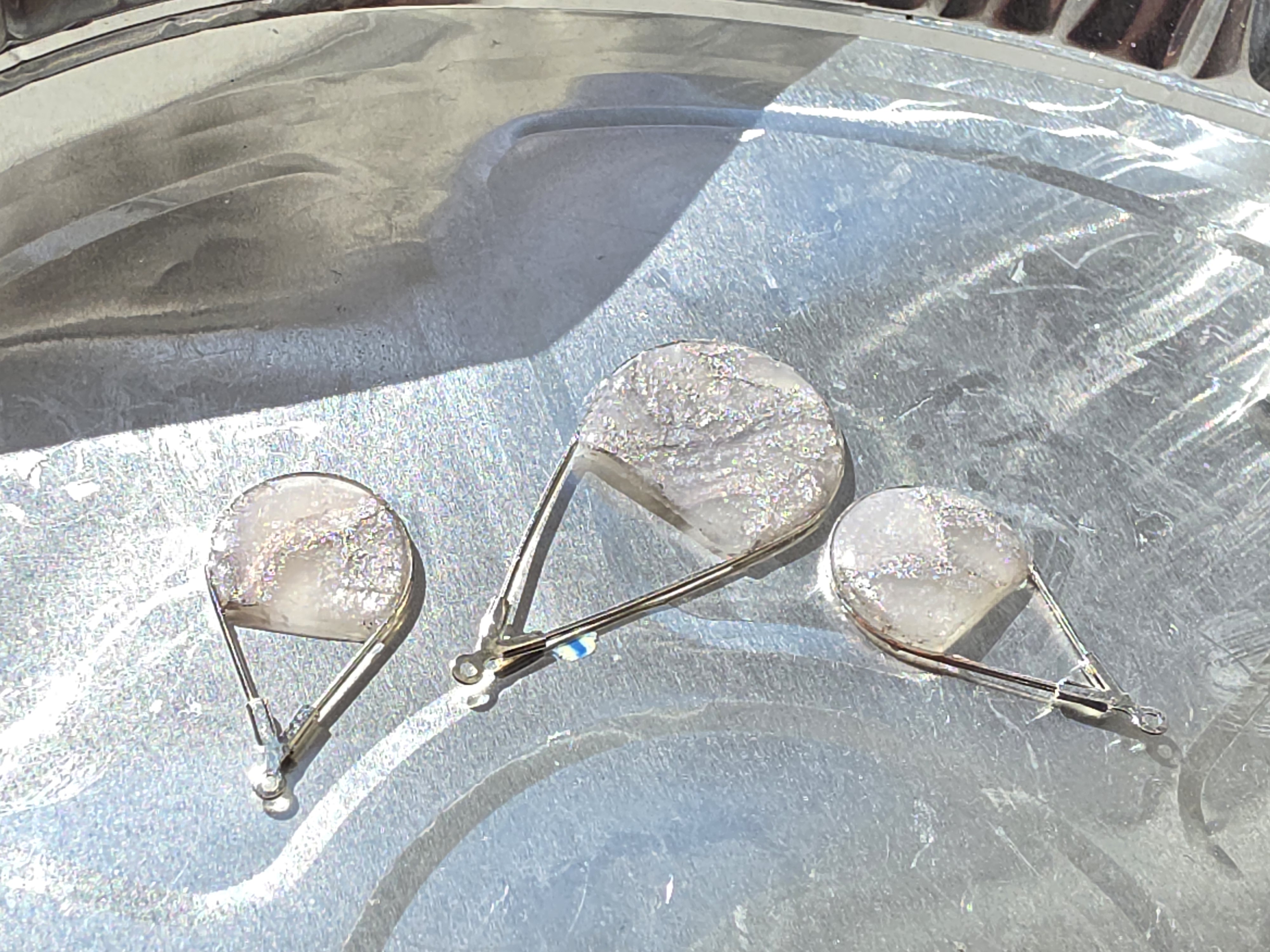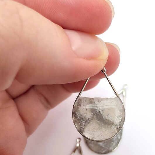 Wunderschönes Schmuckset in Silber Grau. Wenn man sie gegen das Licht hält, sind sie leicht durchscheinend.