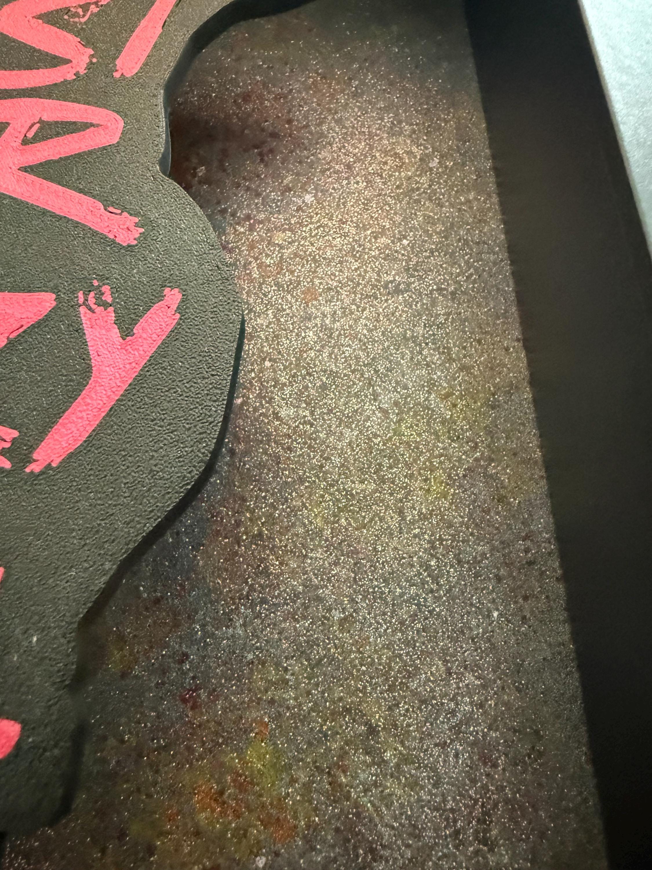 Schriftzug per 3D Druck hergestellt, Hintergrund mit acryl und lackfarben bearbeitet.