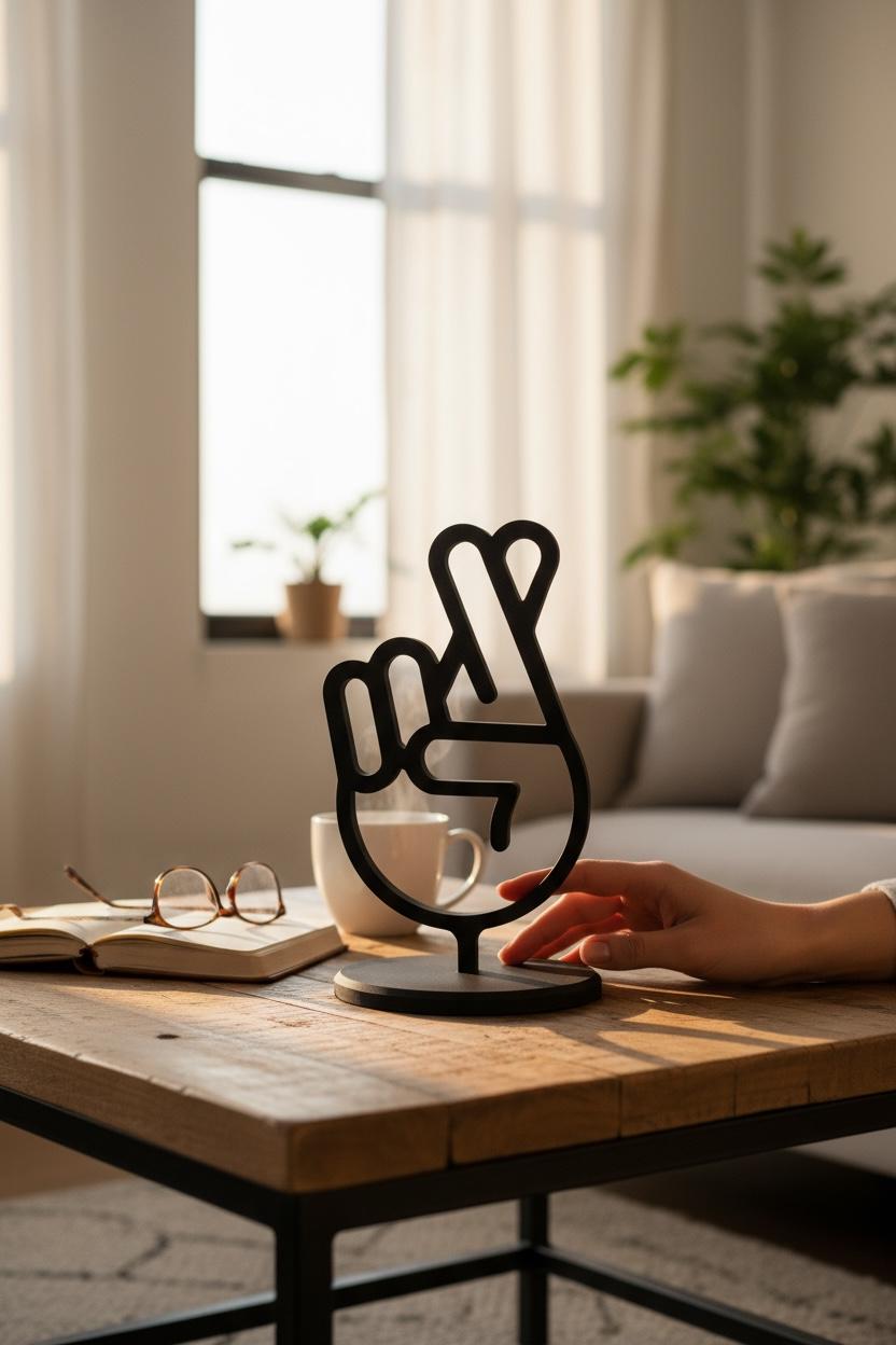 3D gedrucktes Handzeichen Daumen drücken / Fingers Crossed – Gebärdensprache Figur, moderne Dekoration, Geschenkidee , Freund, Freundin