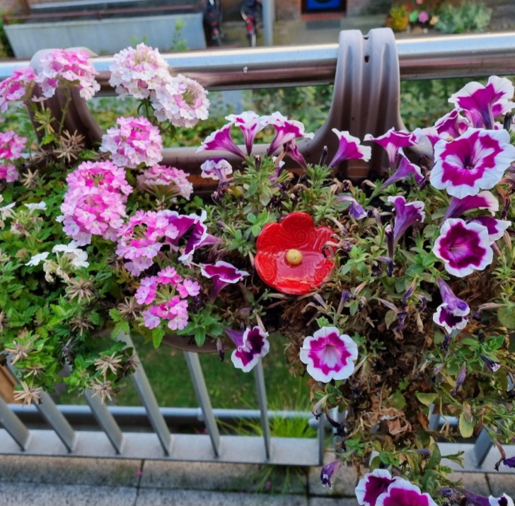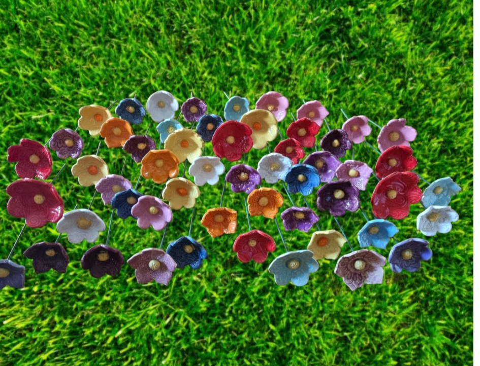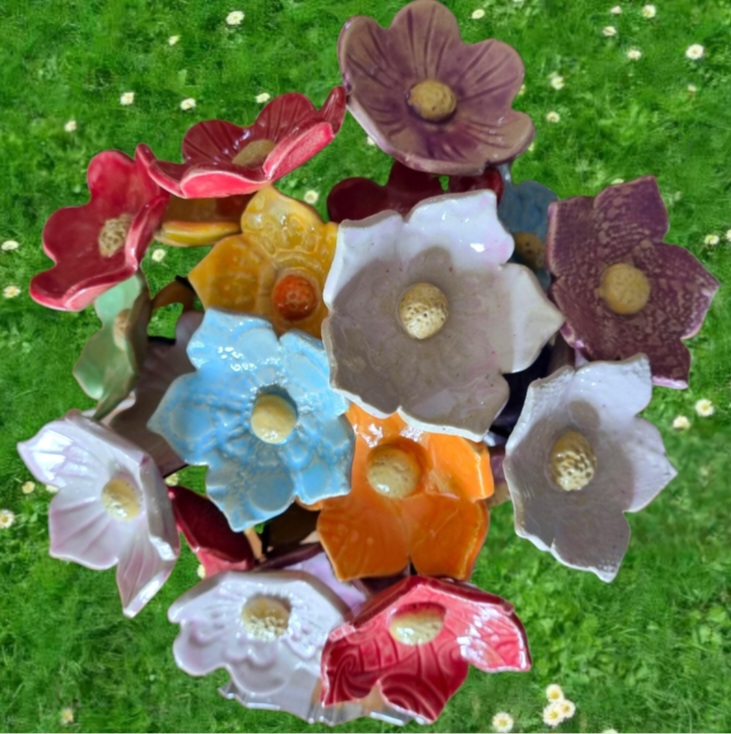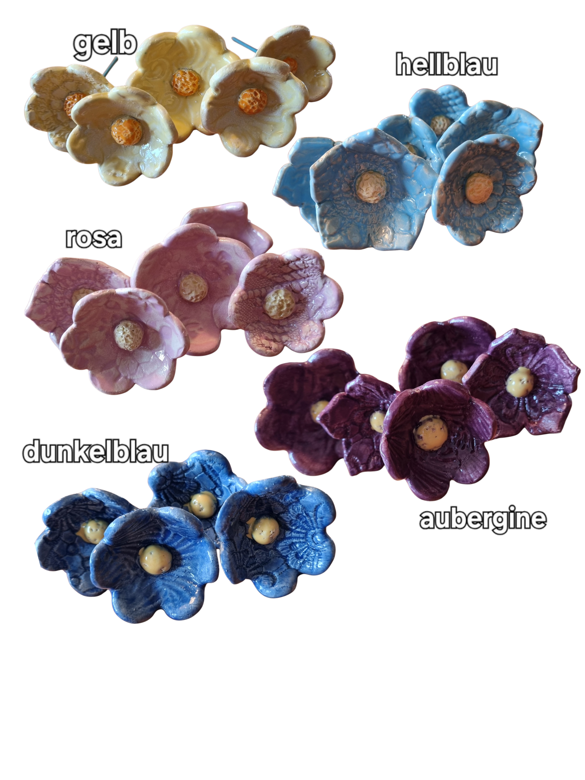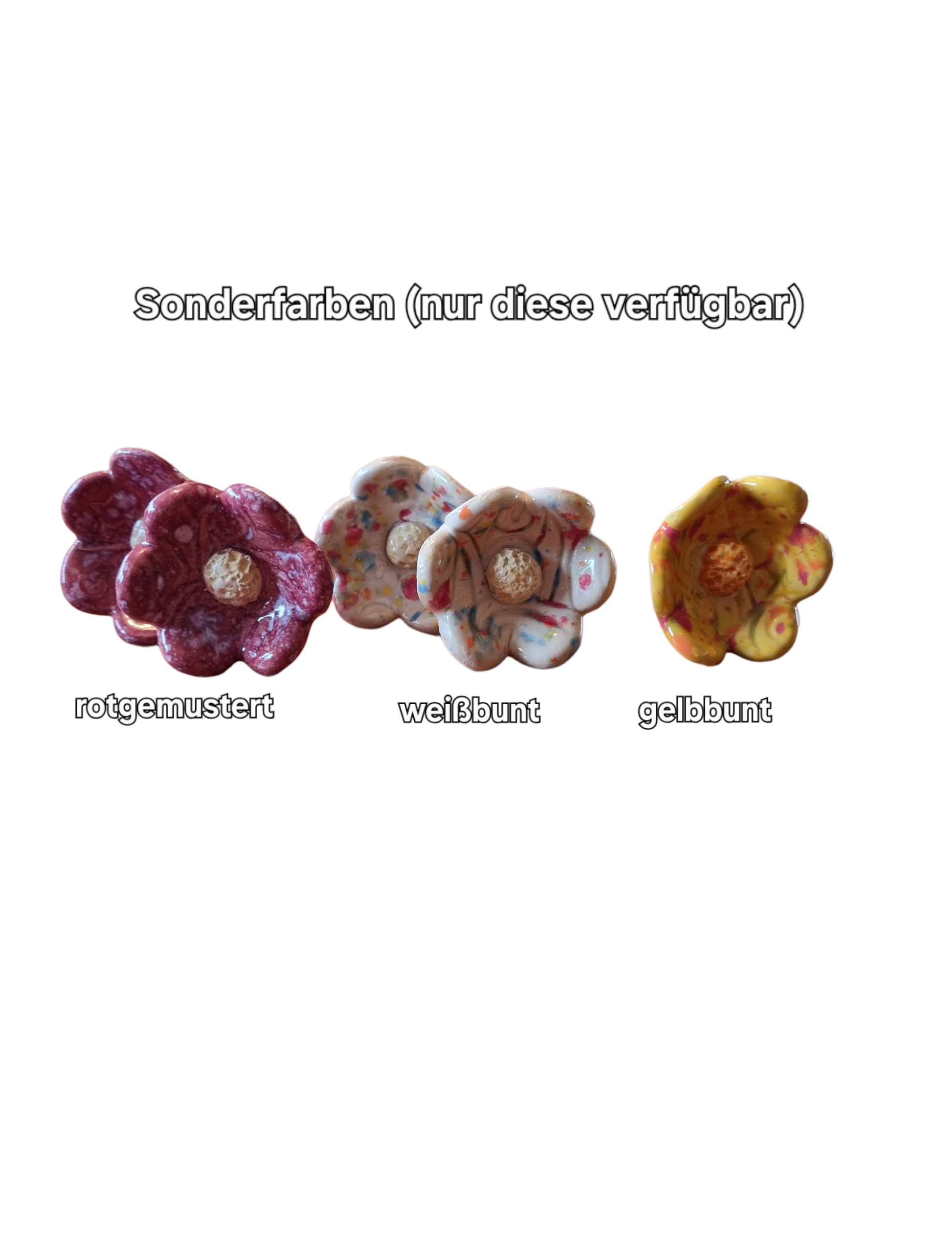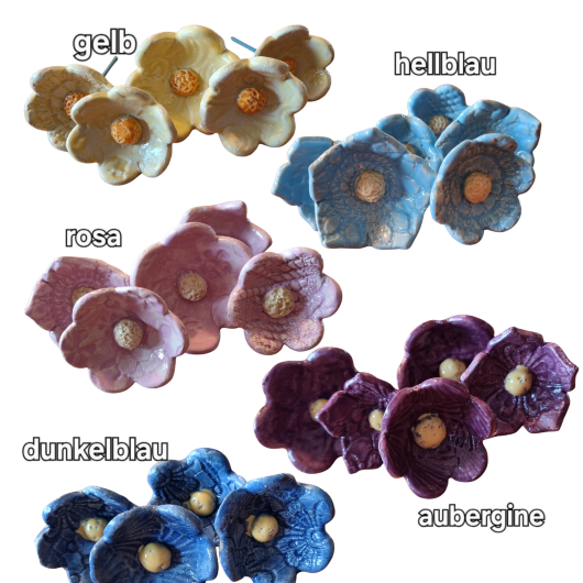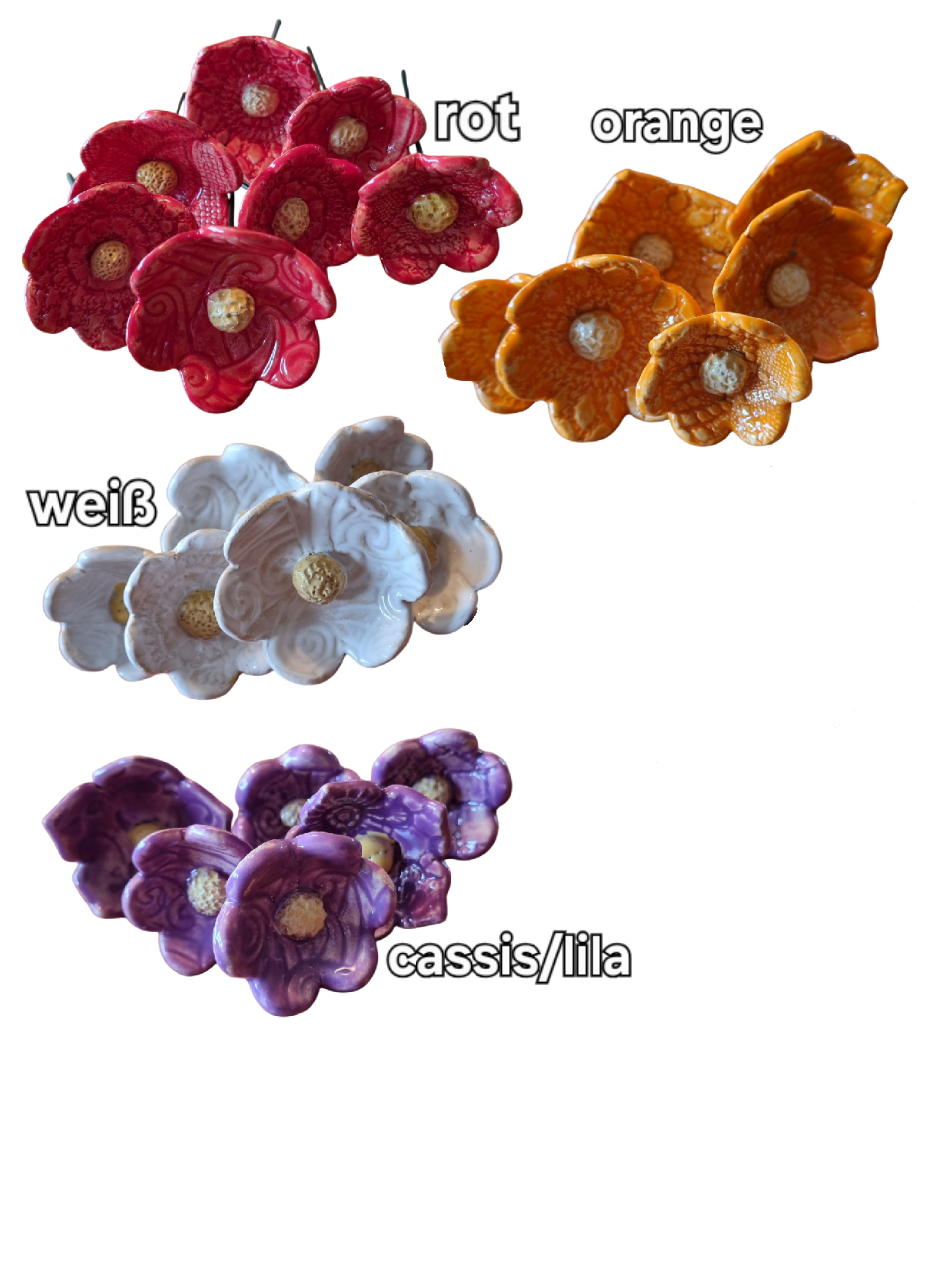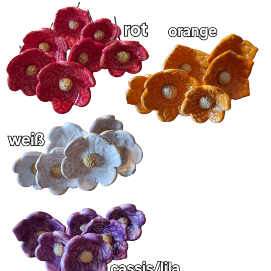 Die Blumen sind winterfest, jedoch empfehle ich sie dennoch hereinzuholen um die Farben der Glasuren schön zu erhalten.