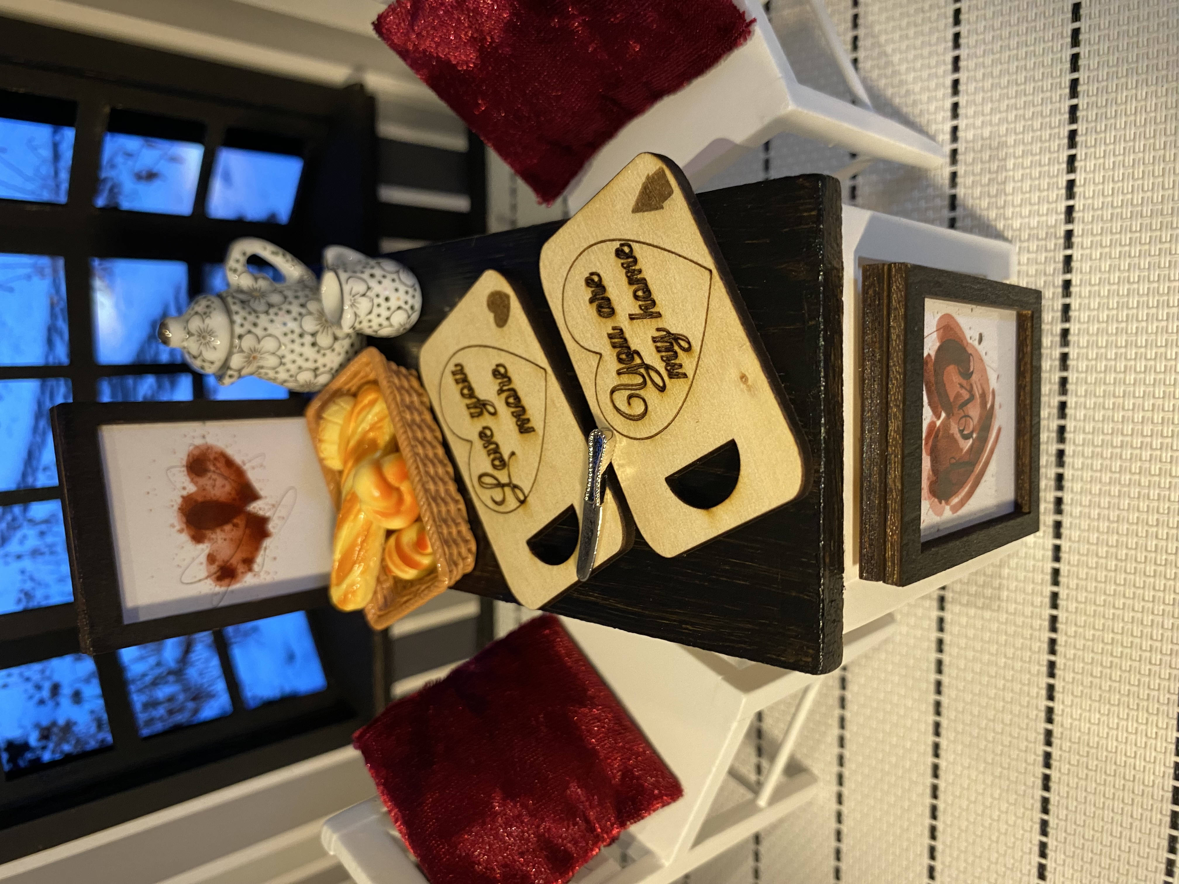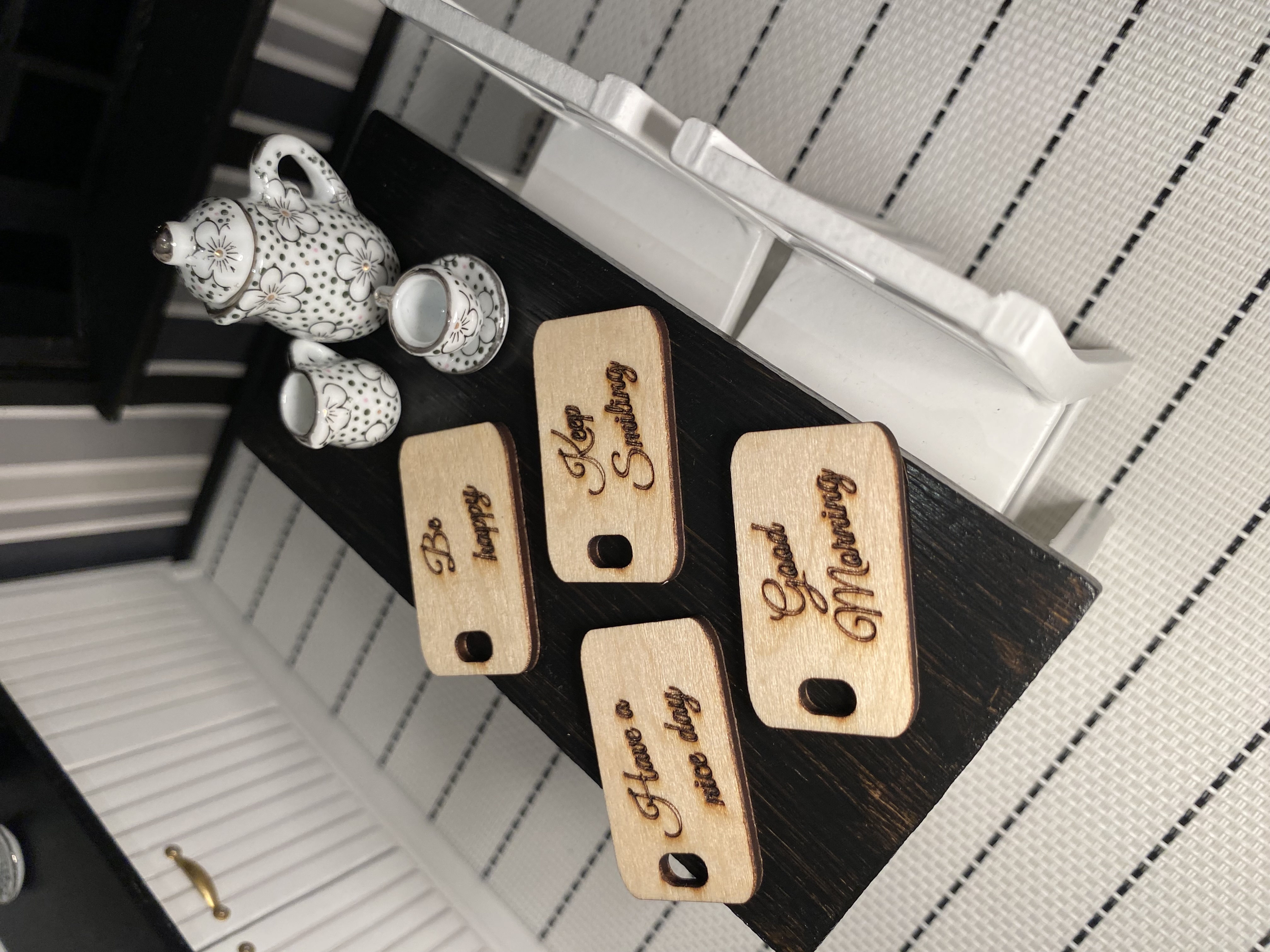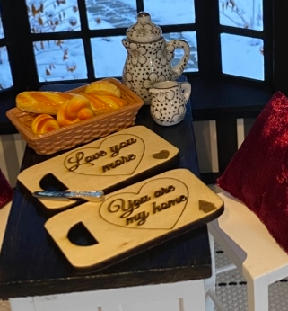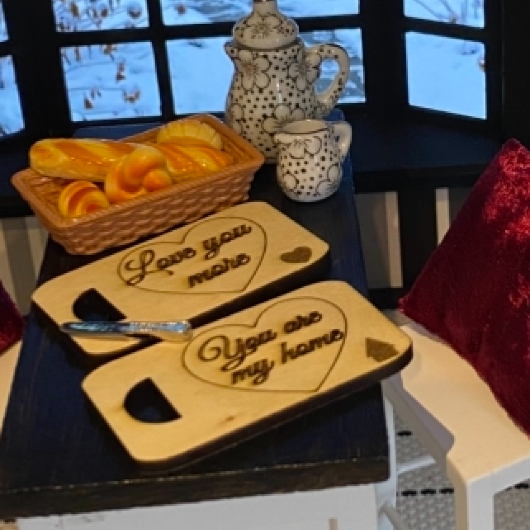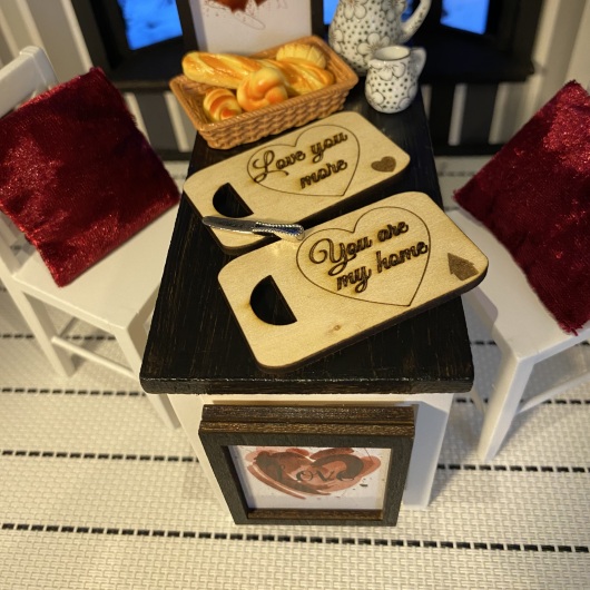Miniatur Frühstücksbrettchen Set 1:12 - Handgefertigt aus Holz für Puppenhaus, Roombox und Wichtelstube