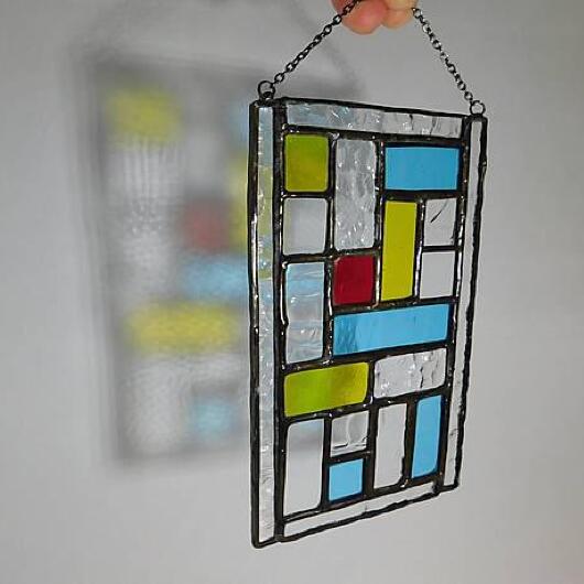 In Tiffany-Technik gefertigt, entsteht aus kleinen, farbigen Glasstücken ein einzigartiges Mosaik, das im Sonnenlicht zarte, regenbogenfarbene Reflexe in den Raum wirft.