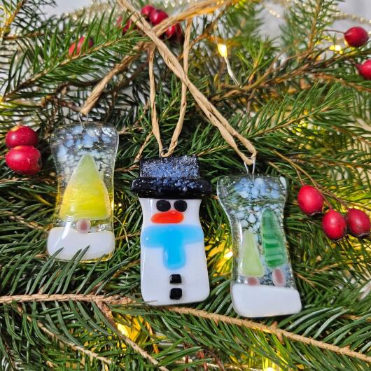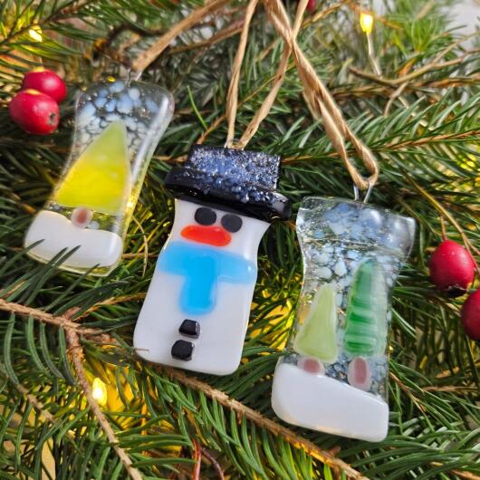 Diese zarten Ornamente werden aus Glas geschmolzen – in der Fusing-Technik, bei der sorgfältig ausgewählte Glasstücke im Ofen miteinander verschmelzen.