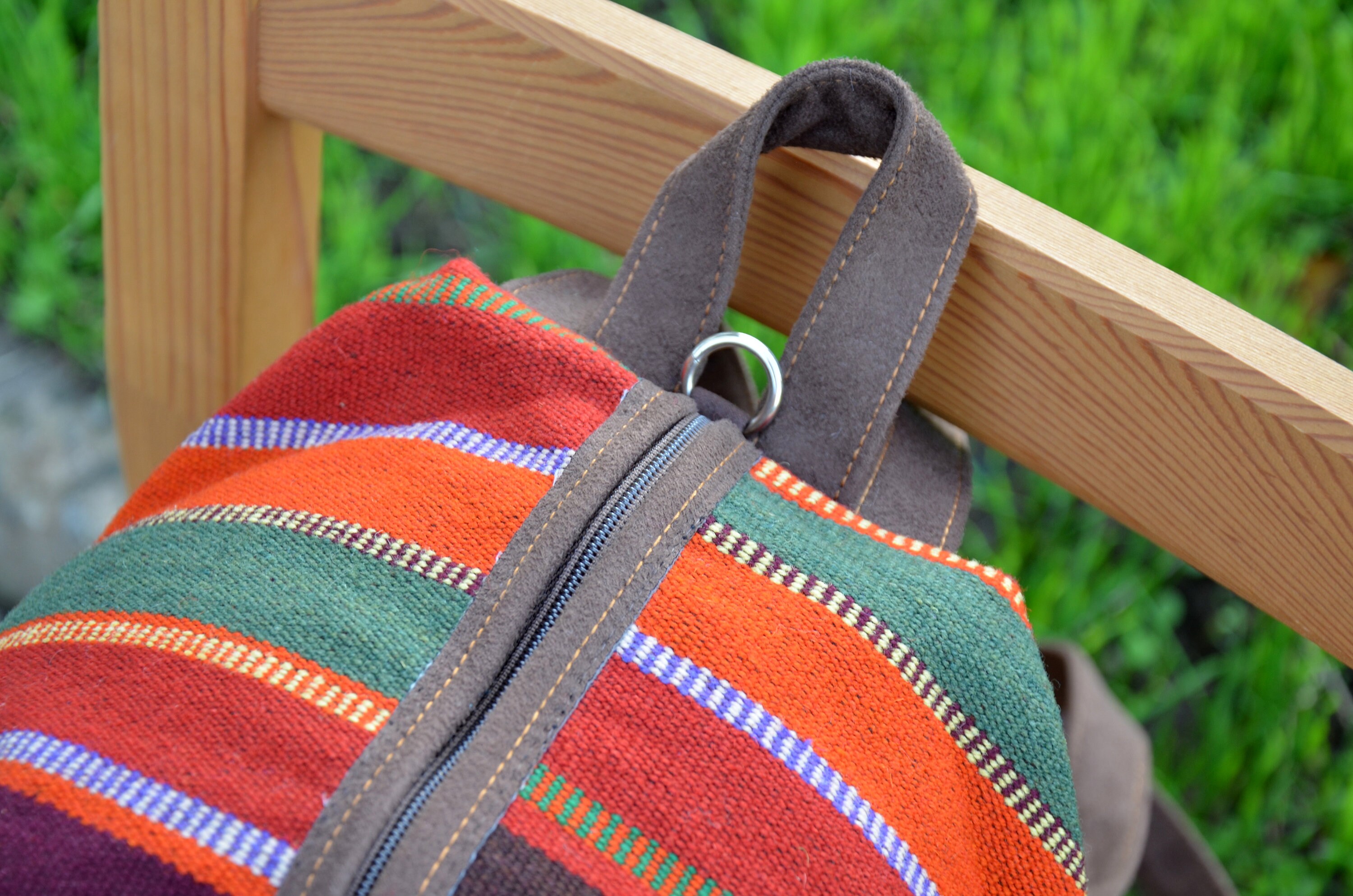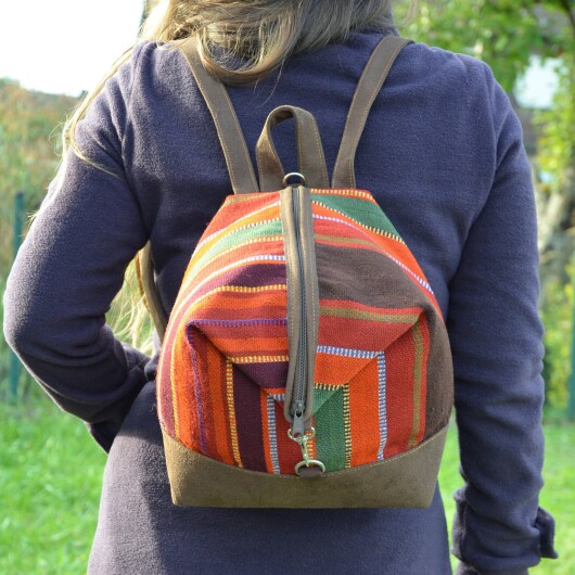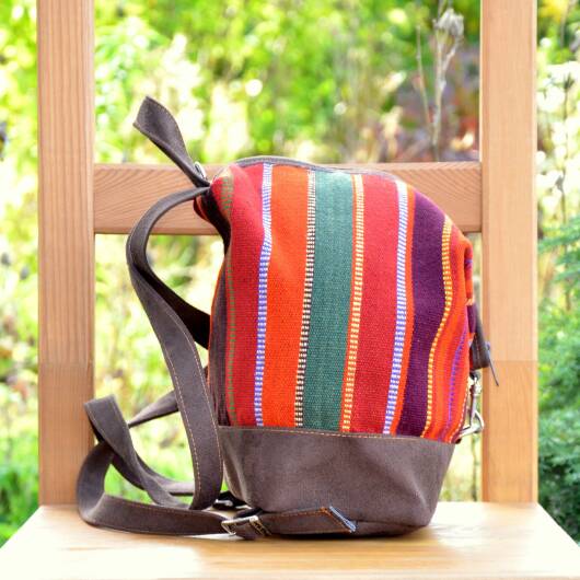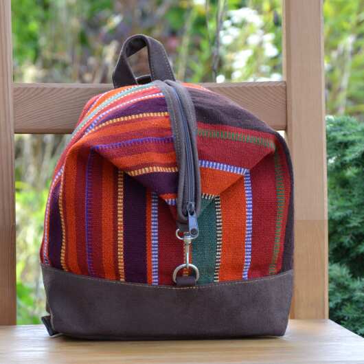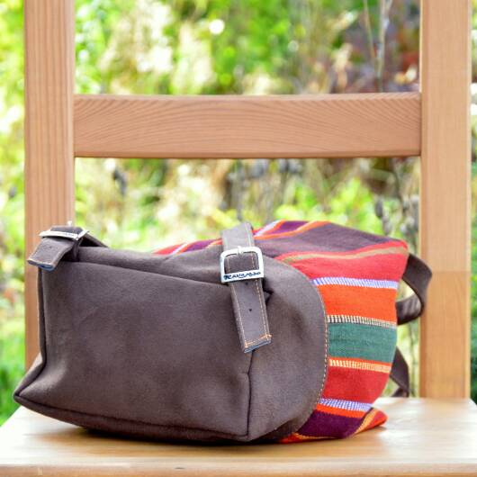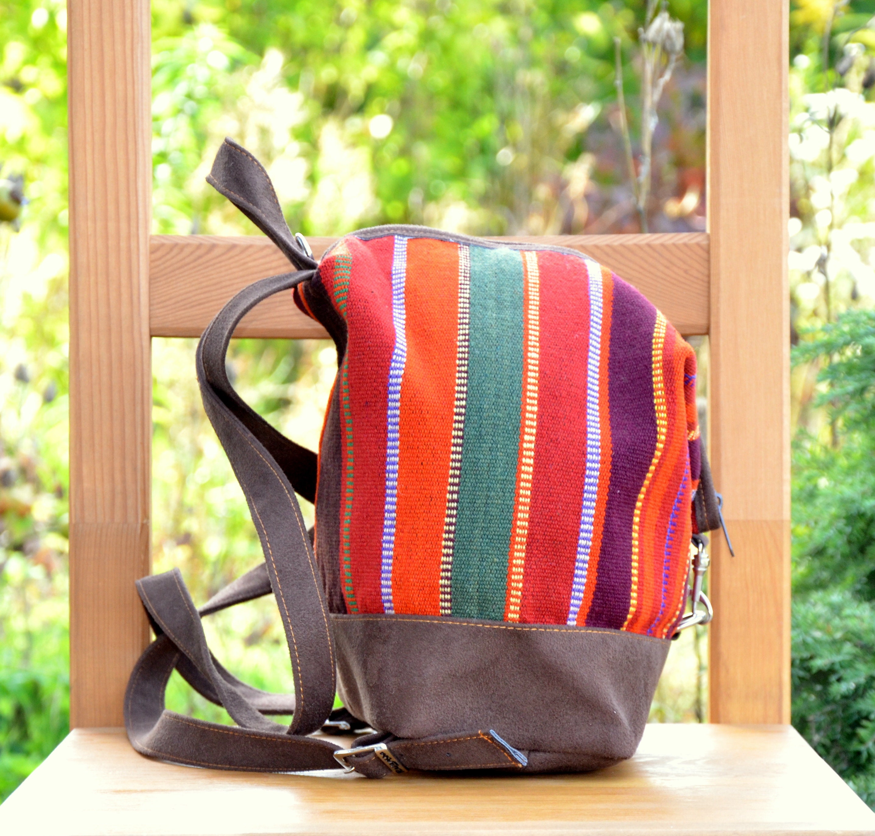 Our unique backpacks are handmade in Peru and are the result of an elegant combination of plain faux suede and naturally dyed and hand-woven sheep's wool from the Cusco region, also known as Manta Cusqueña. The cheerful blaze of colors reflects the traditional textile art of the Andean region as well as the Peruvian joie de vivre!