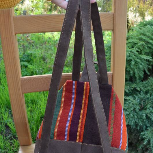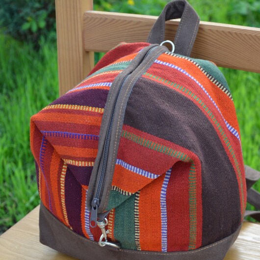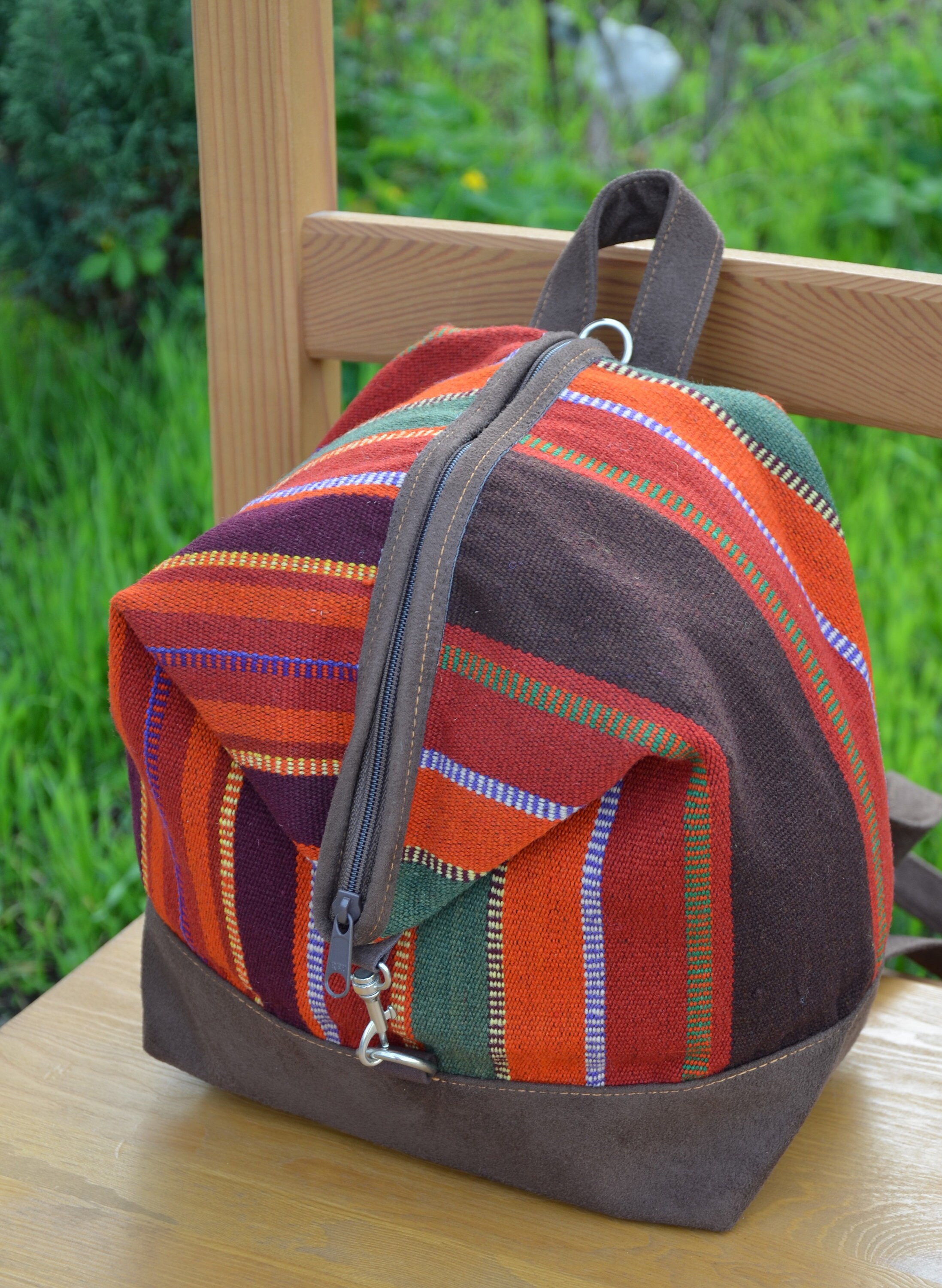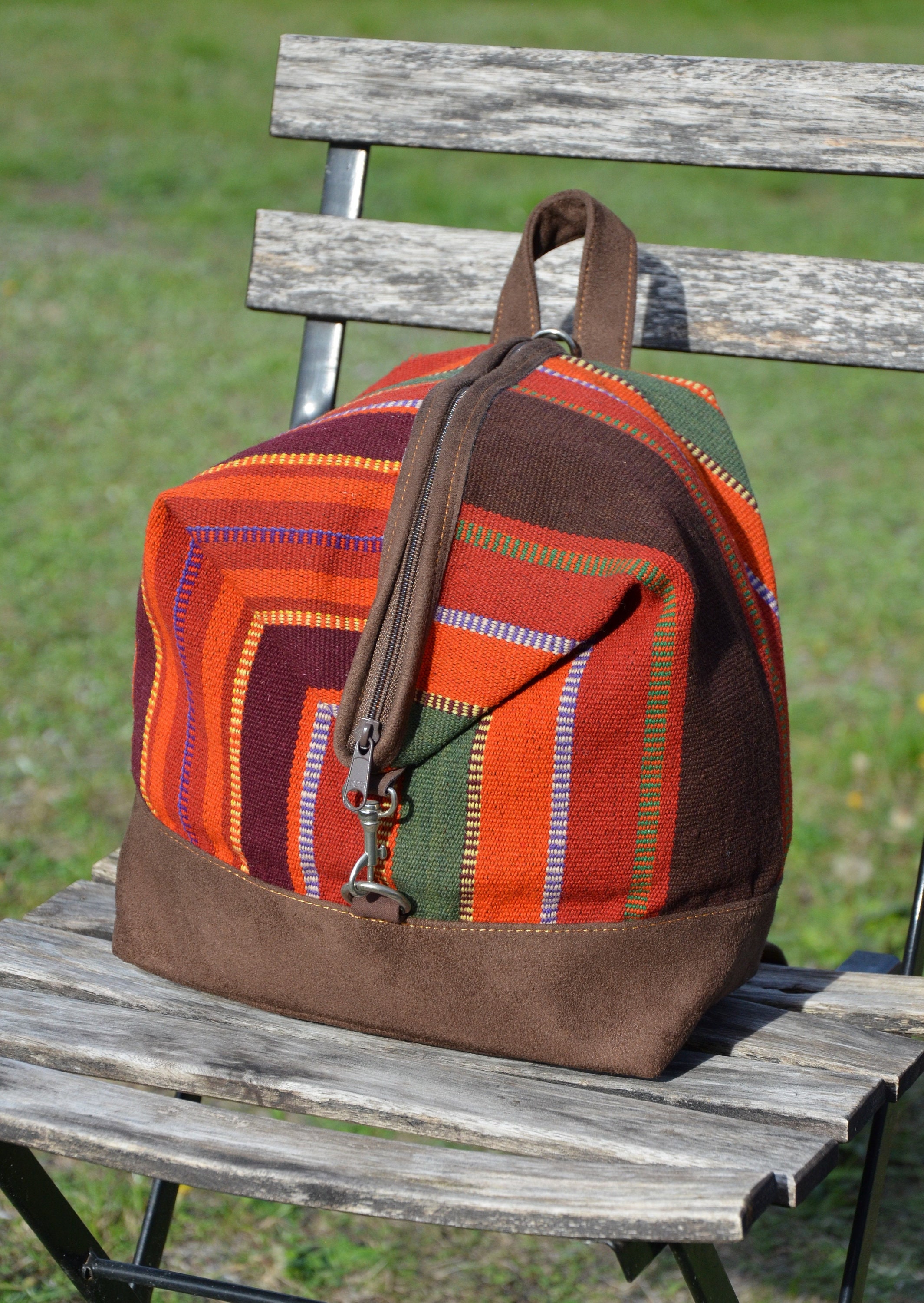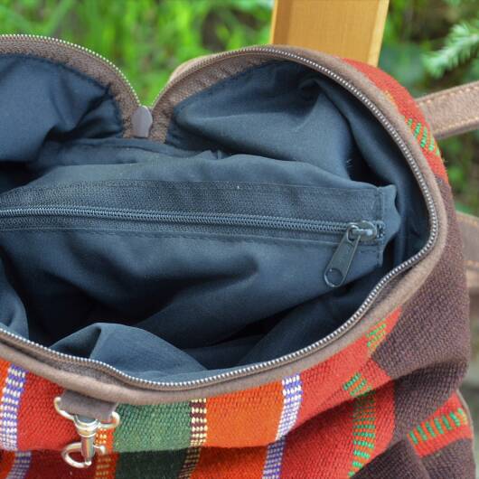 Our unique backpacks are handmade in Peru and are the result of an elegant combination of plain faux suede and naturally dyed and hand-woven sheep's wool from the Cusco region, also known as Manta Cusqueña. The cheerful blaze of colors reflects the traditional textile art of the Andean region as well as the Peruvian joie de vivre!