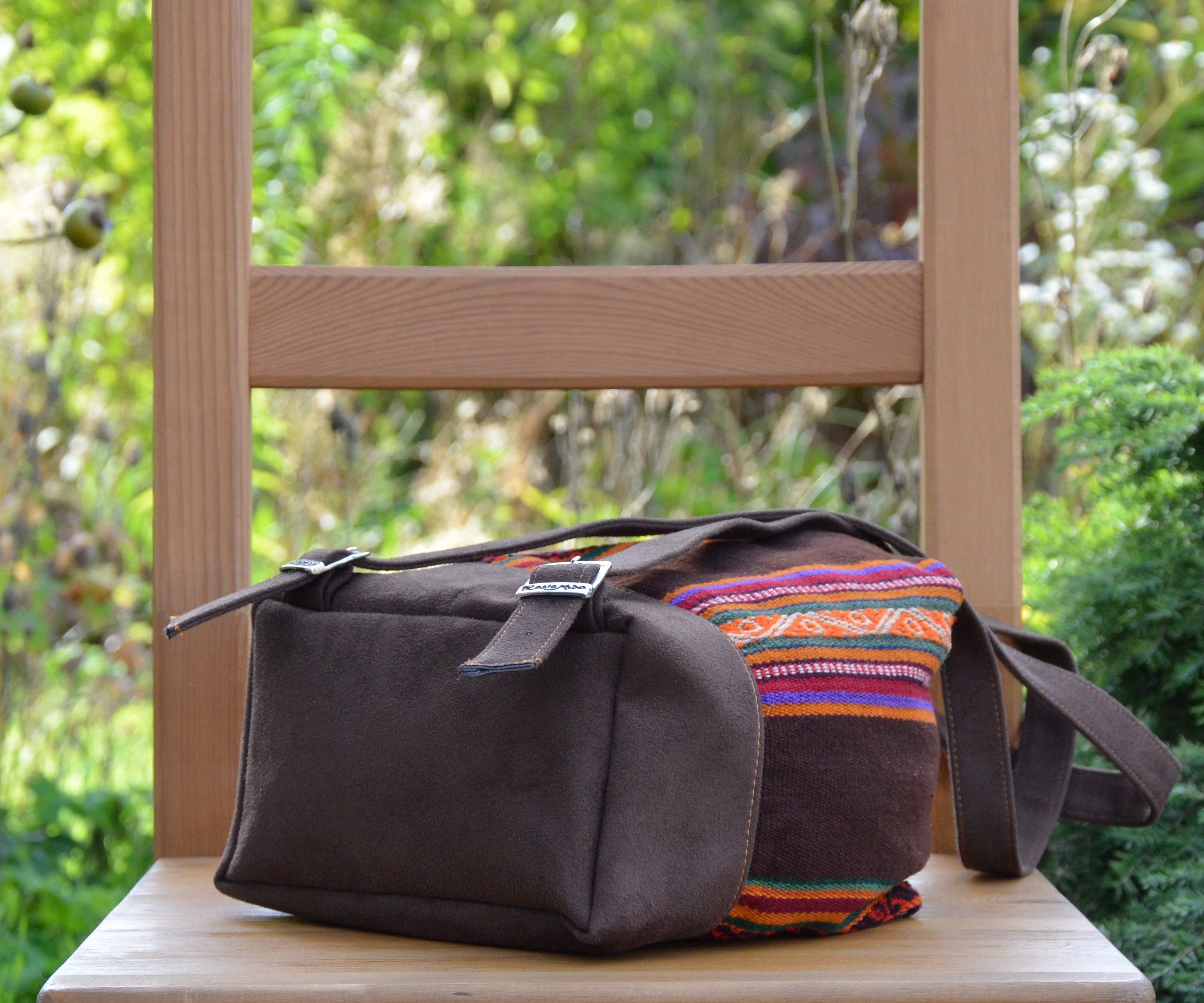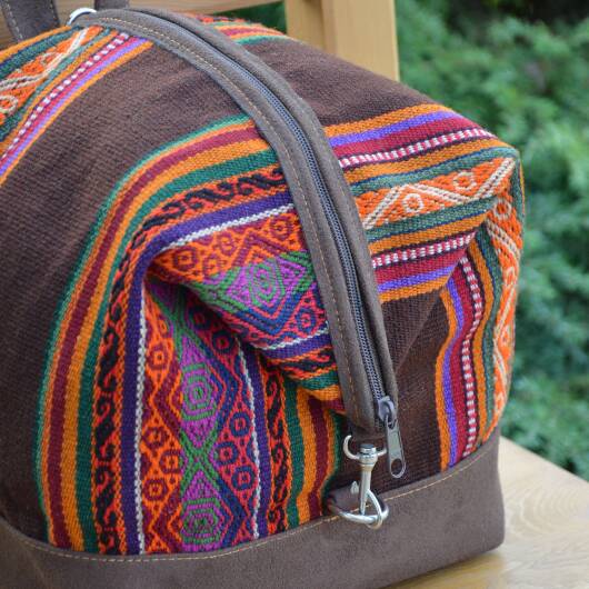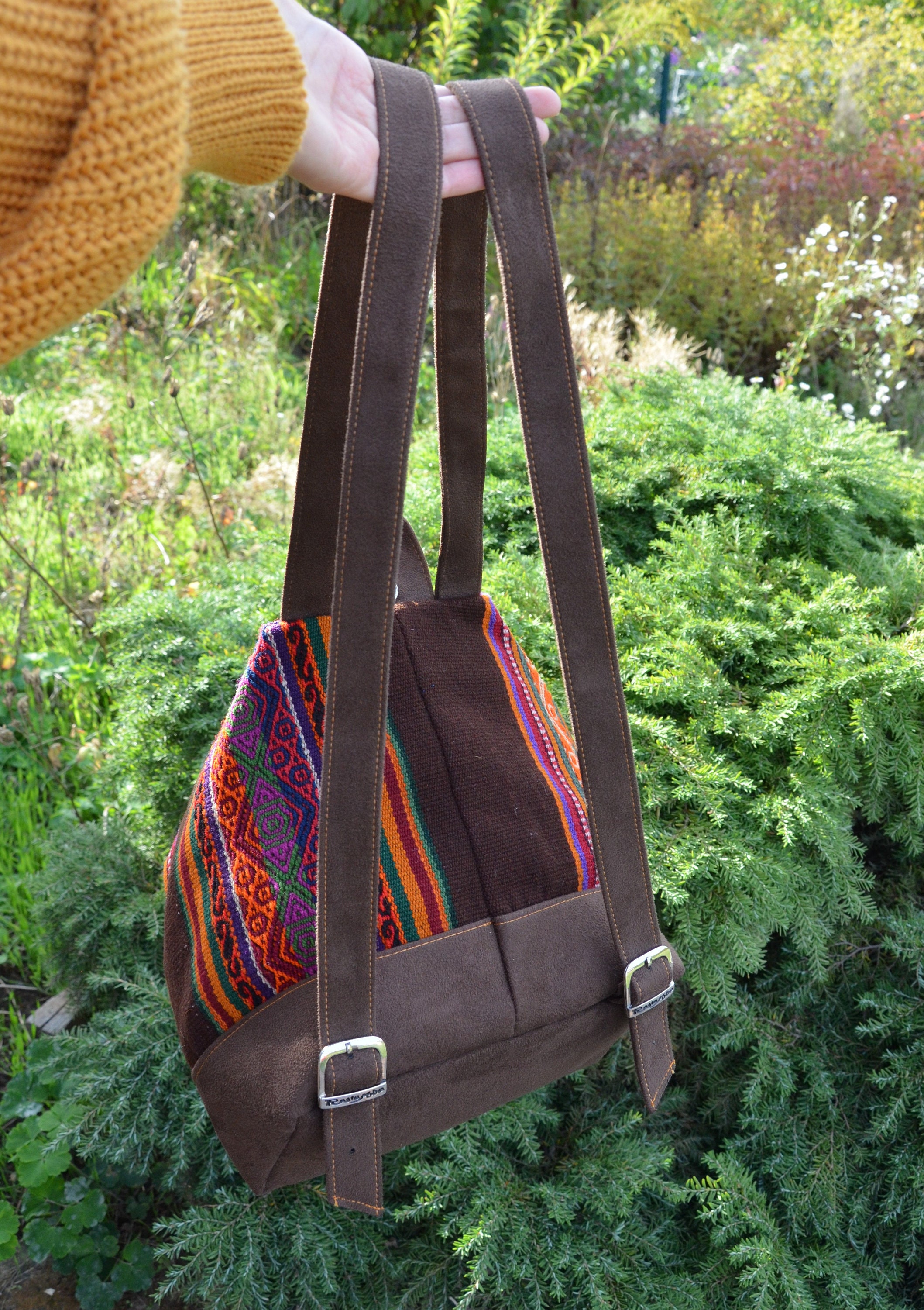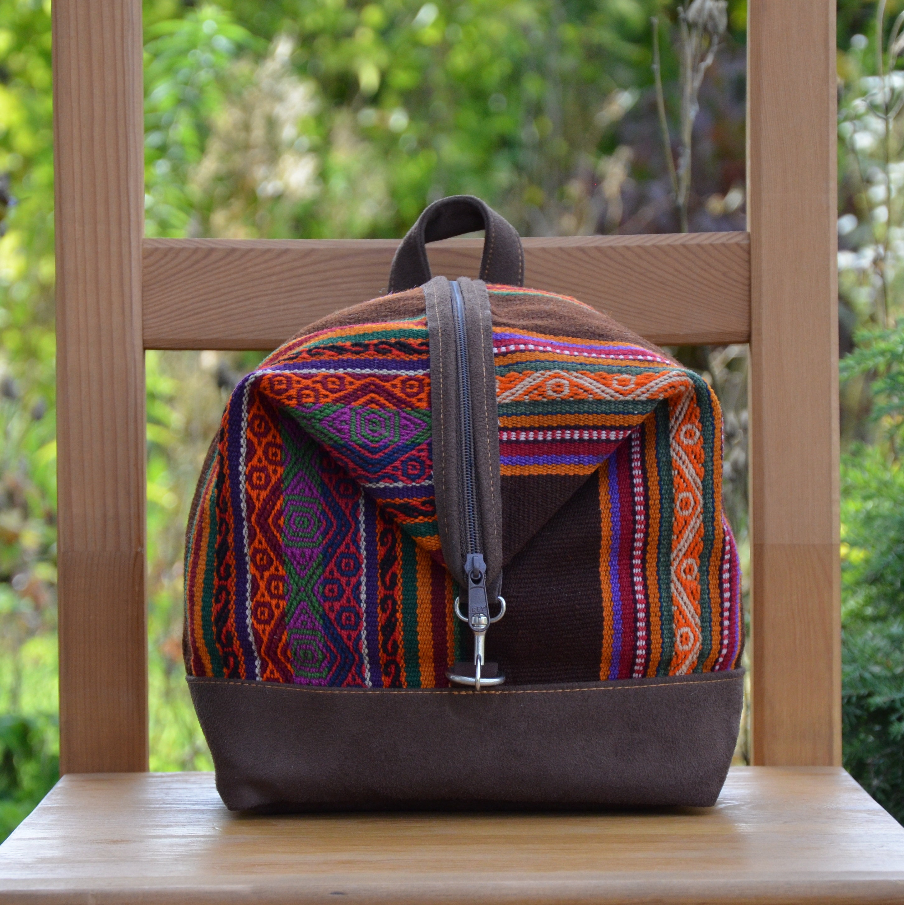 Our unique backpacks are handmade in Peru and are the result of an elegant combination of plain faux suede and naturally dyed and hand-woven sheep's wool from the Cusco region, also known as Manta Cusqueña. The cheerful blaze of colors reflects the traditional textile art of the Andean region as well as the Peruvian joie de vivre!