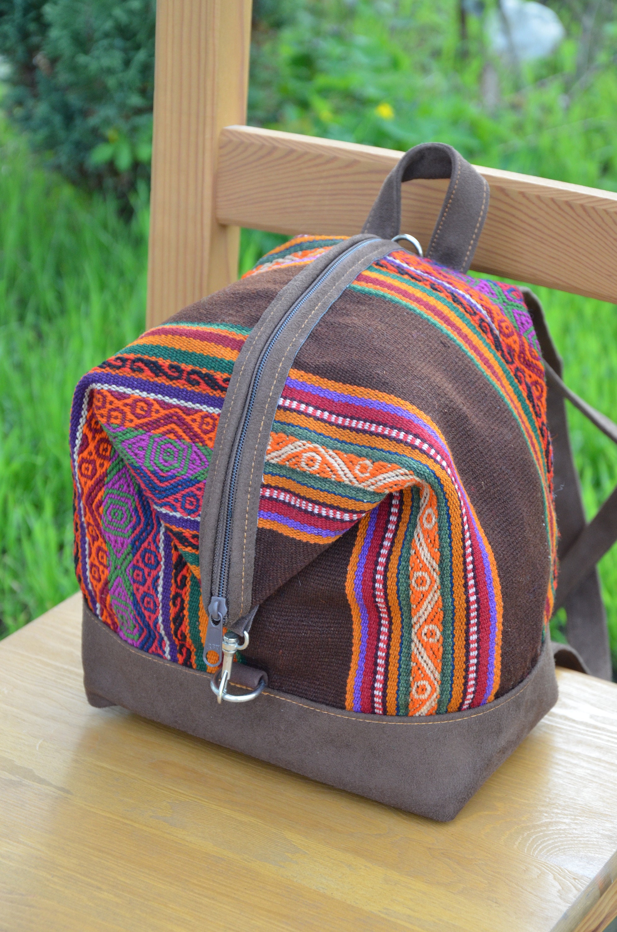 Small Boho Backpack/Handmade Colorful Andean Backpack/Naturally Dyed Handwoven Sheep Wool/ Handmade/Earth Colors /Ethnic/Hippie
