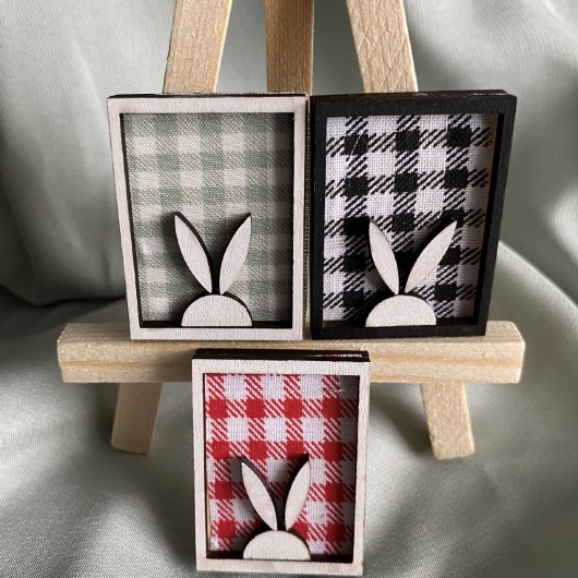 • Set-Inhalt: 3 hochwertige handgefertigte Bilderrahmen (Motiv: Hase/Abstrakt).