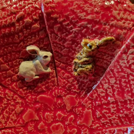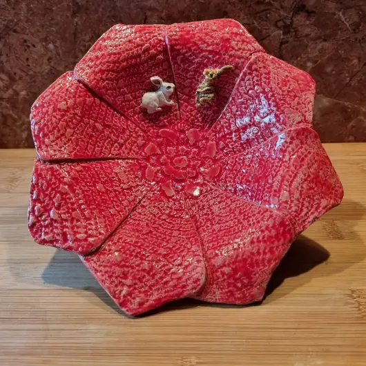 Purely handmade. Created from clay in construction work. Glazed and fired 2 times.