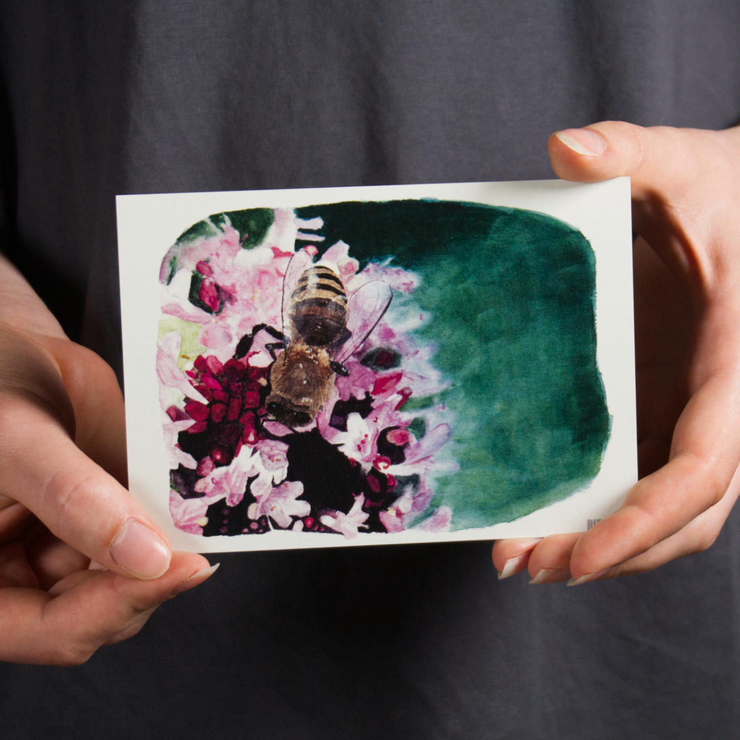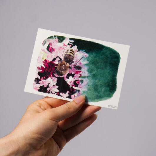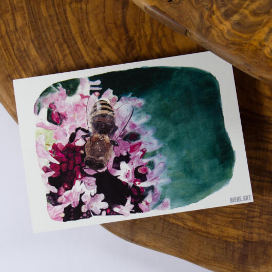 Genießen Sie die Schönheit der Natur mit dieser Postkarte von einer Biene, die Oregano bestäubt.