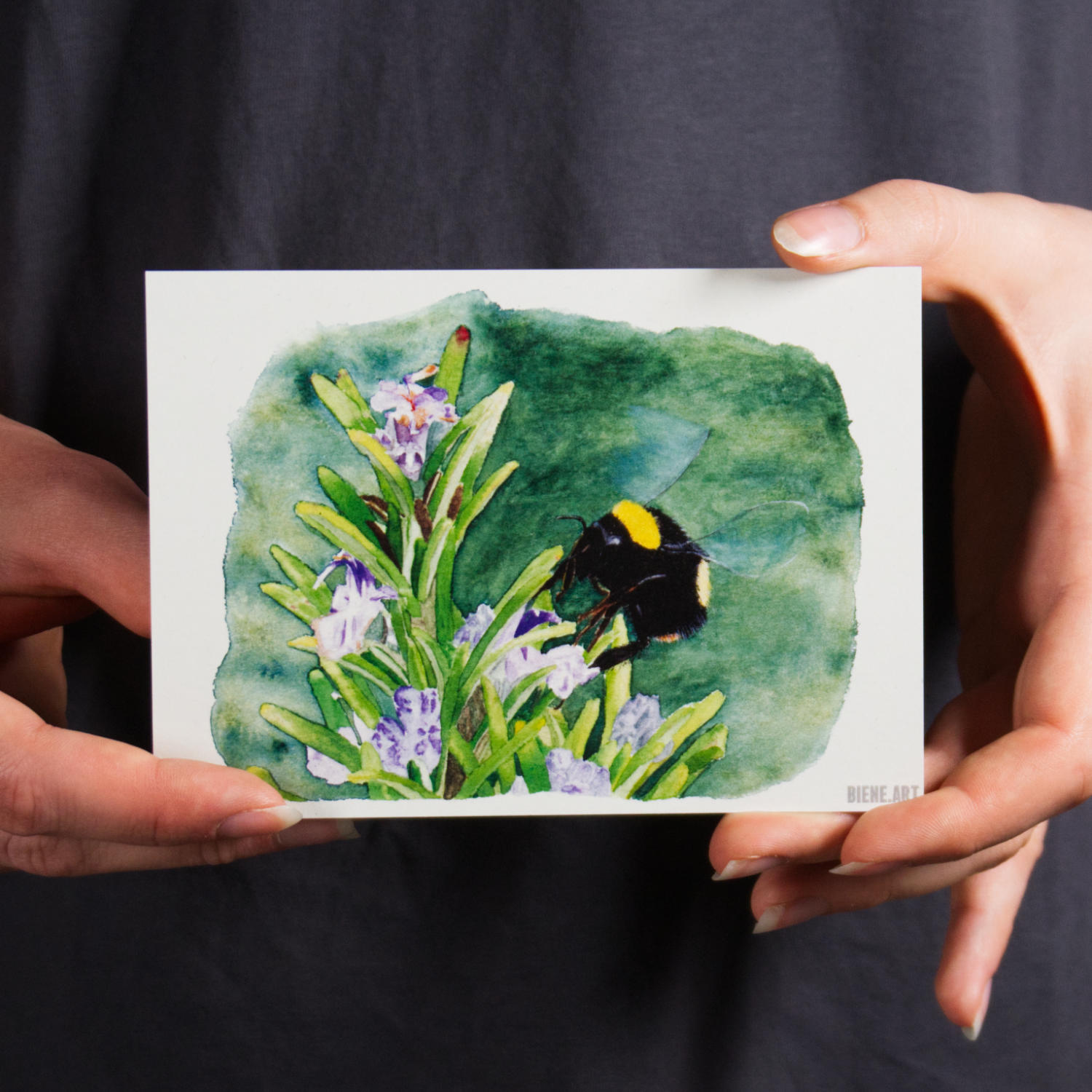 Hummel auf Rosmarin (Postkarte)