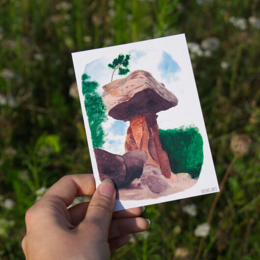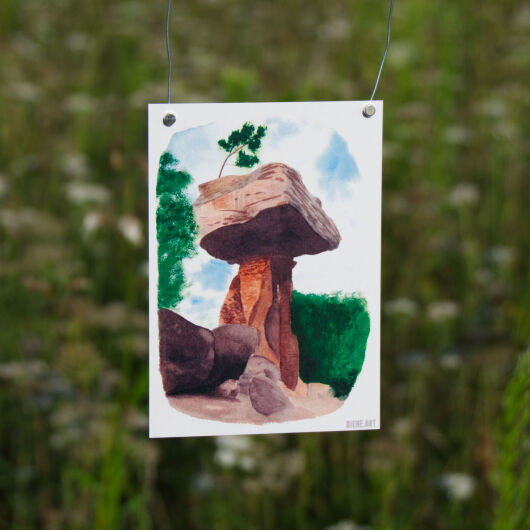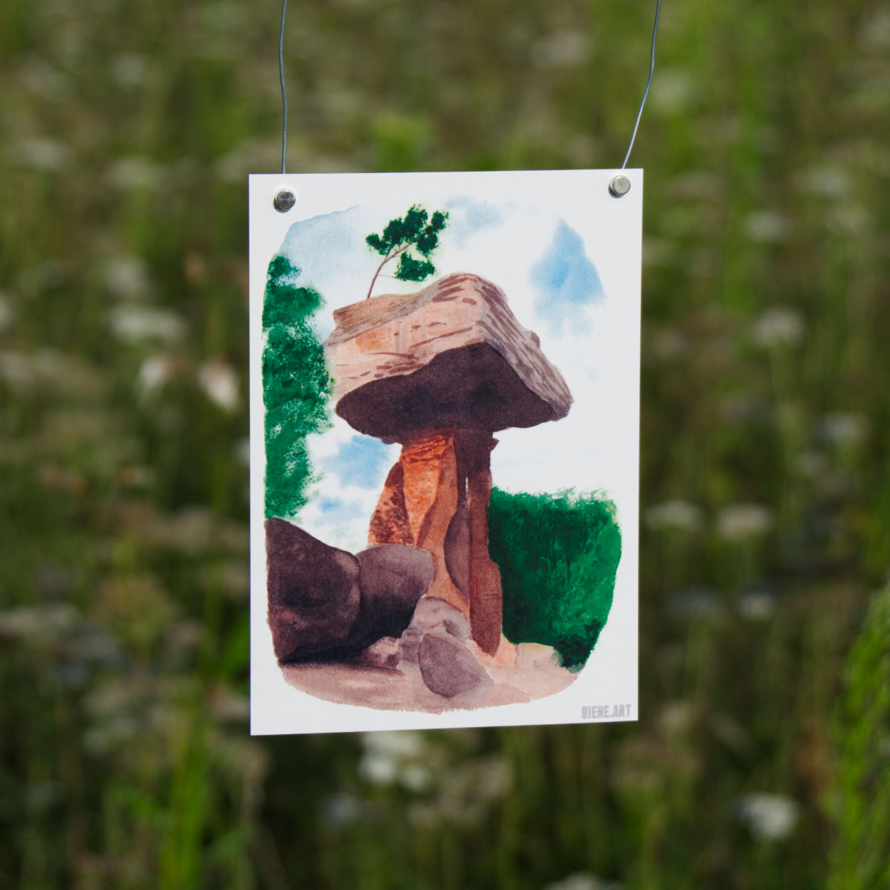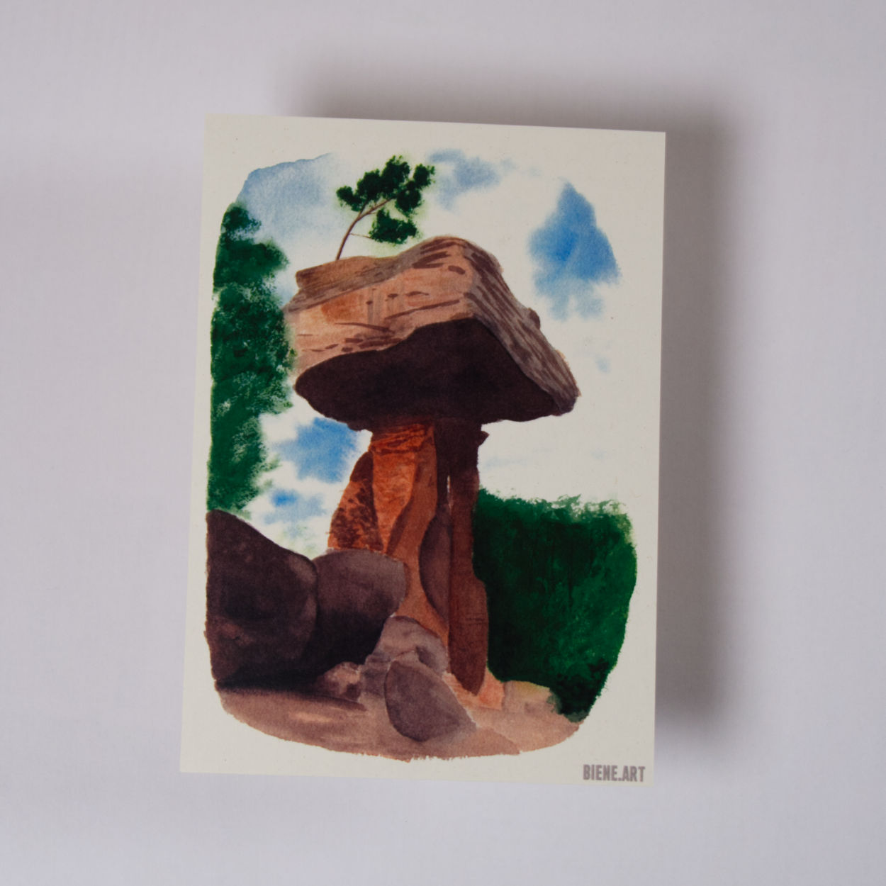 Das Aquarell wurde von mir nach der berühmten Sehenswürdigkeit des Pfälzer Waldes gemalt. Der Teufelstisch ist ein 14 Meter hoher Pilzfels aus Sandstein.