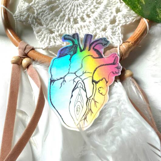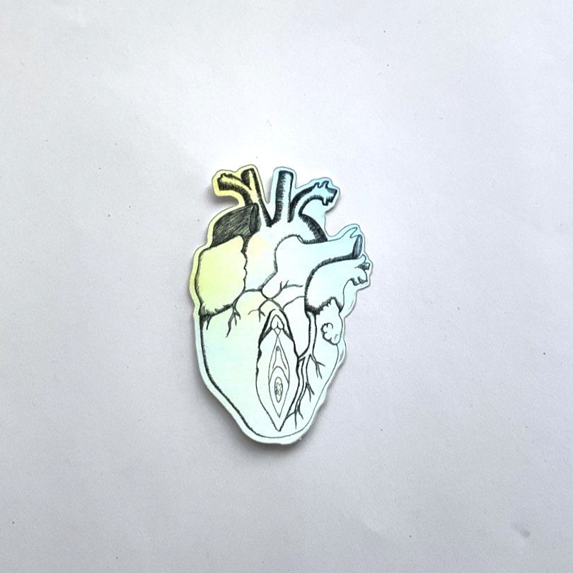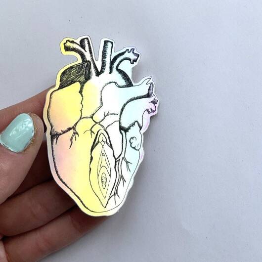 Holographic Heart Vulva Sticker | Anatomy Body Drawing | Viva la Vulva Accessory