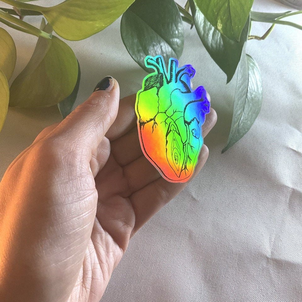 Introducing the sparkling Holographic Heart Vulva Sticker, a captivating blend of art and anatomy that adds a touch of bold expression to your belongings. Perfect for those who appreciate the beauty of the human form and want to make a statement, this sticker is crafted with meticulous detail to showcase the intricate beauty of both the heart and vulva. Let your personality shine with this bold and unique sticker. It's a conversation starter and an artistic representation of the human body, celebrating both its beauty and complexity. Elevate your style and make a statement with the Heart Vulva Sticker, a celebration of empowerment and the beauty of the human body. Ideal for personal use or as a thoughtful gift, this sticker is bound to turn heads and spark conversations wherever it goes.