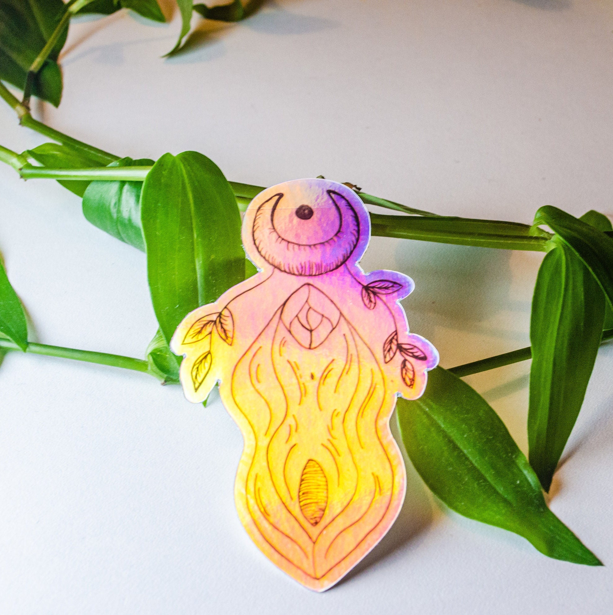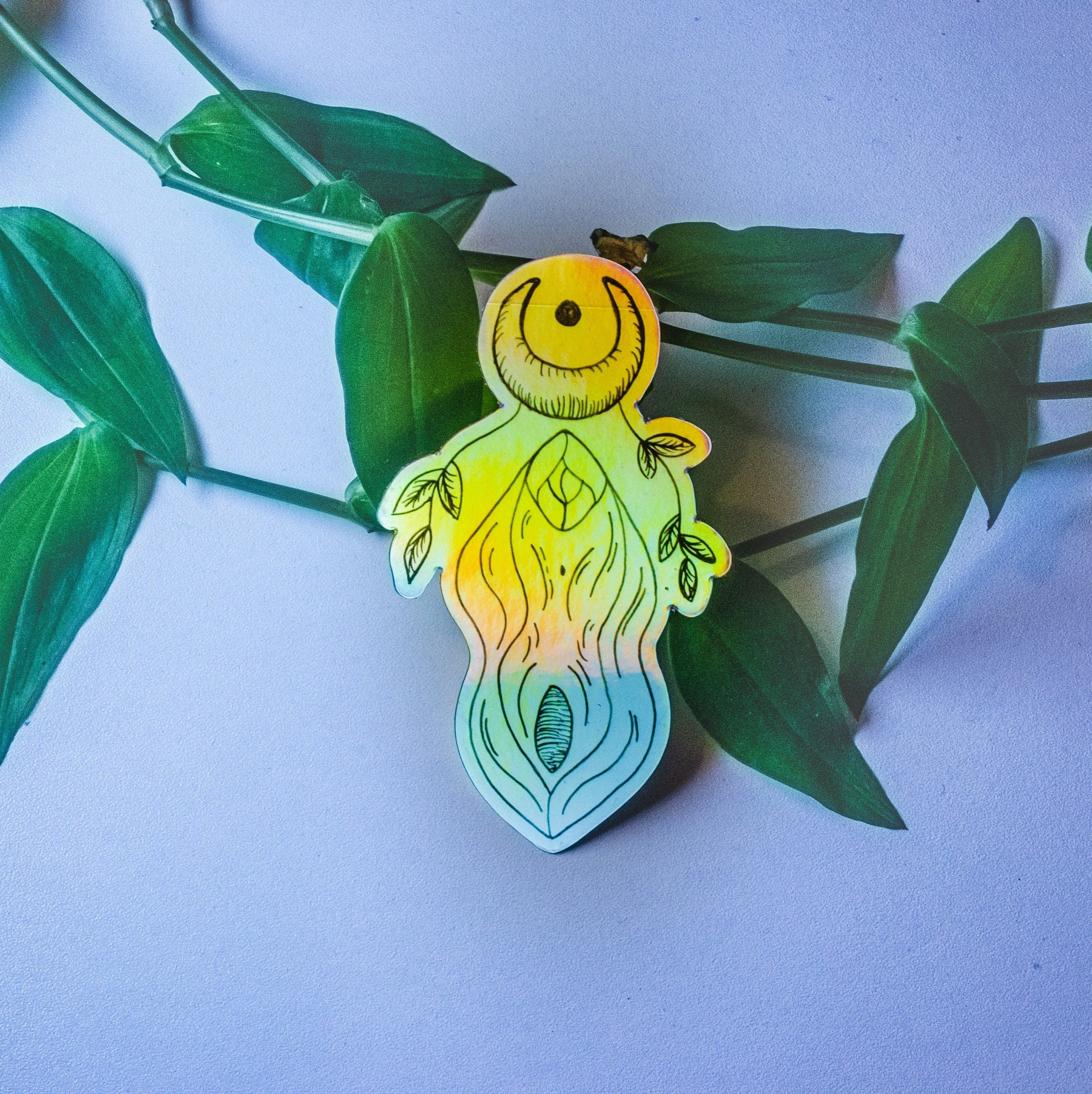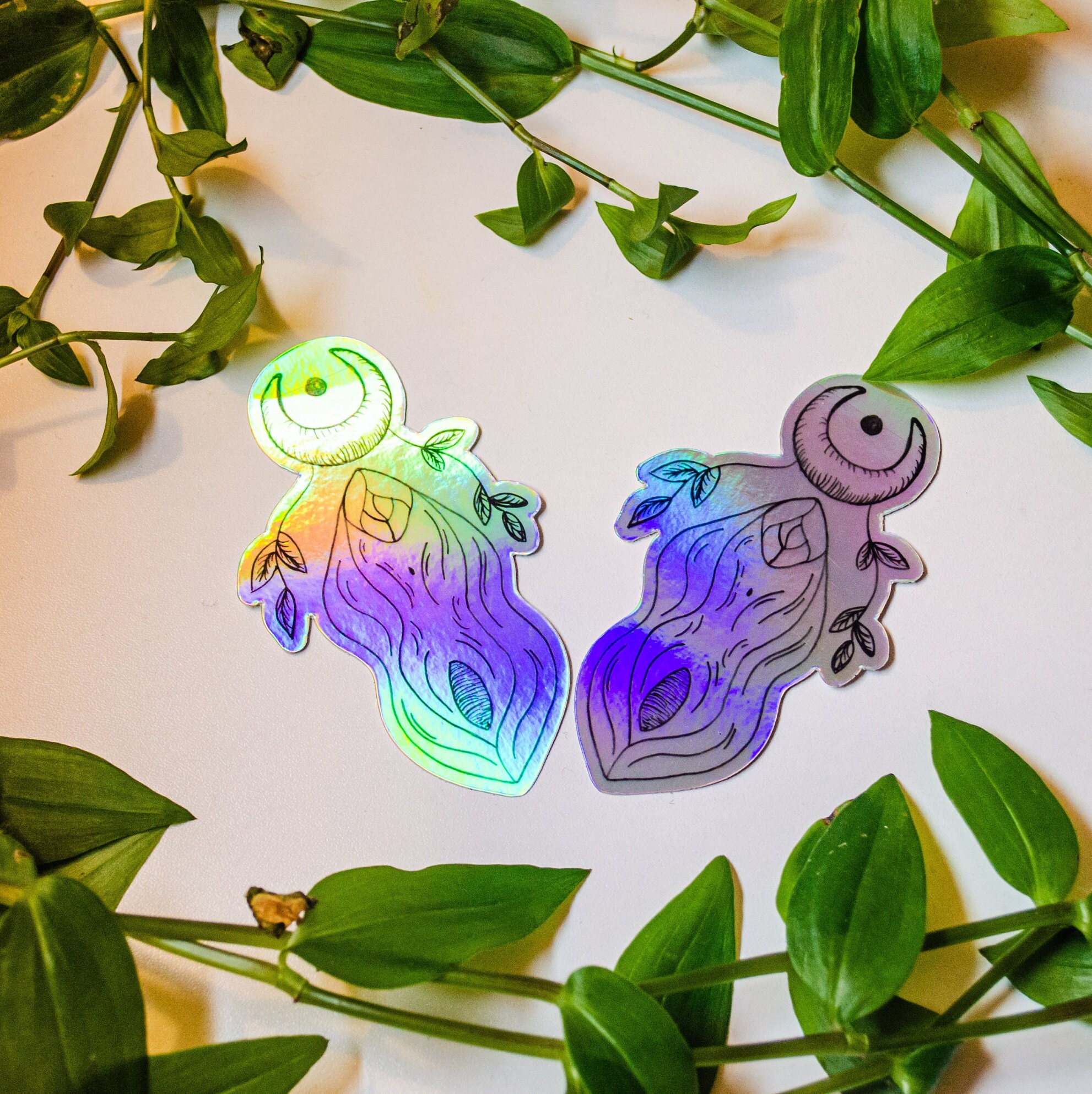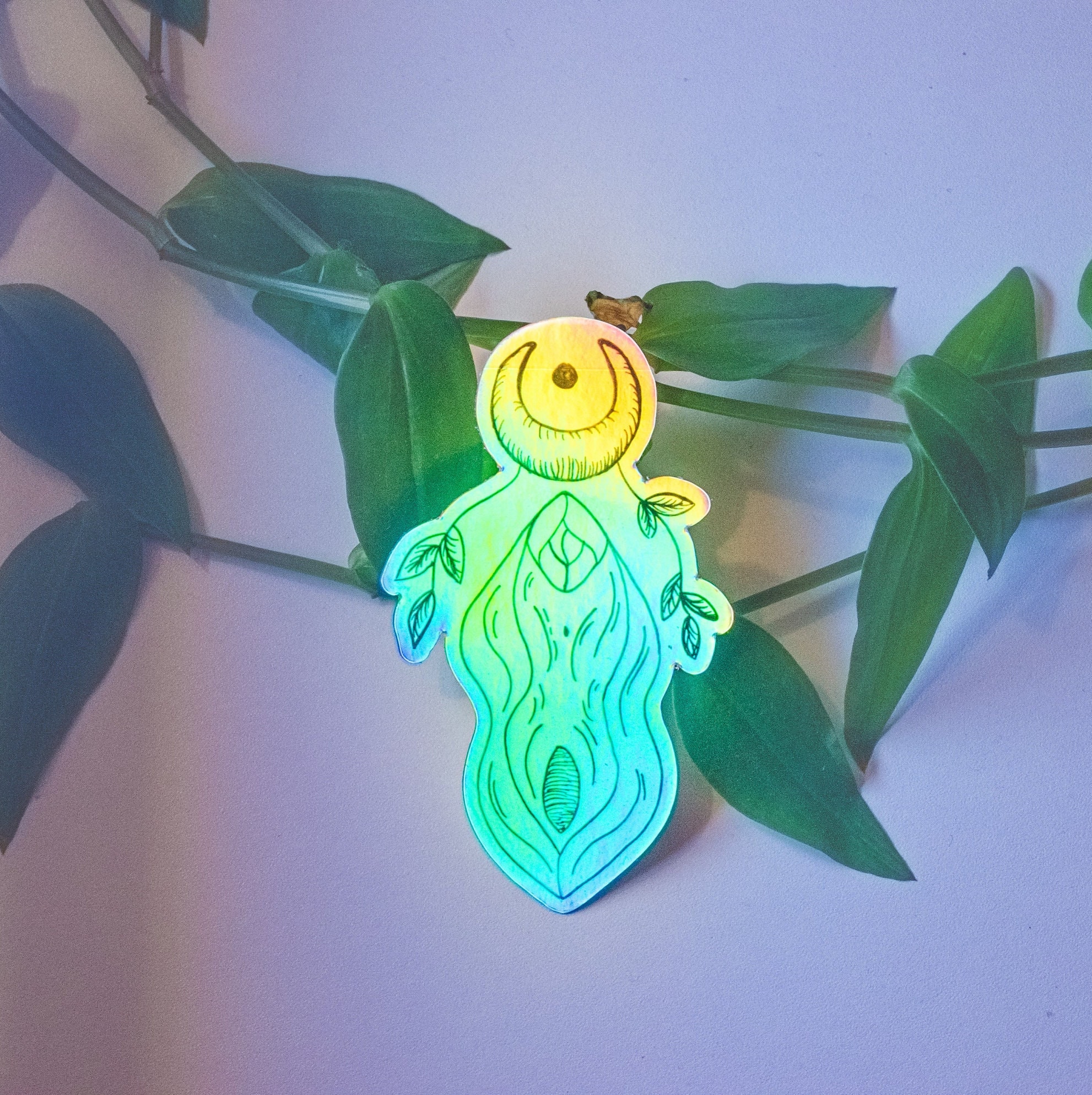 Holographic Vulva Sticker | Moon Drawing | Spiritual Boho Art | Holo Shiny Rainbow Decal