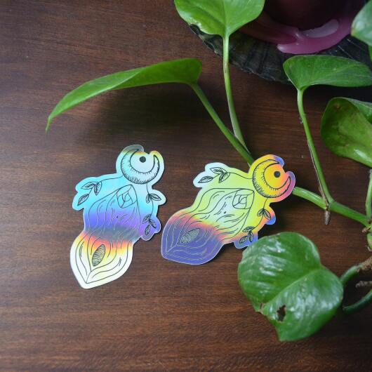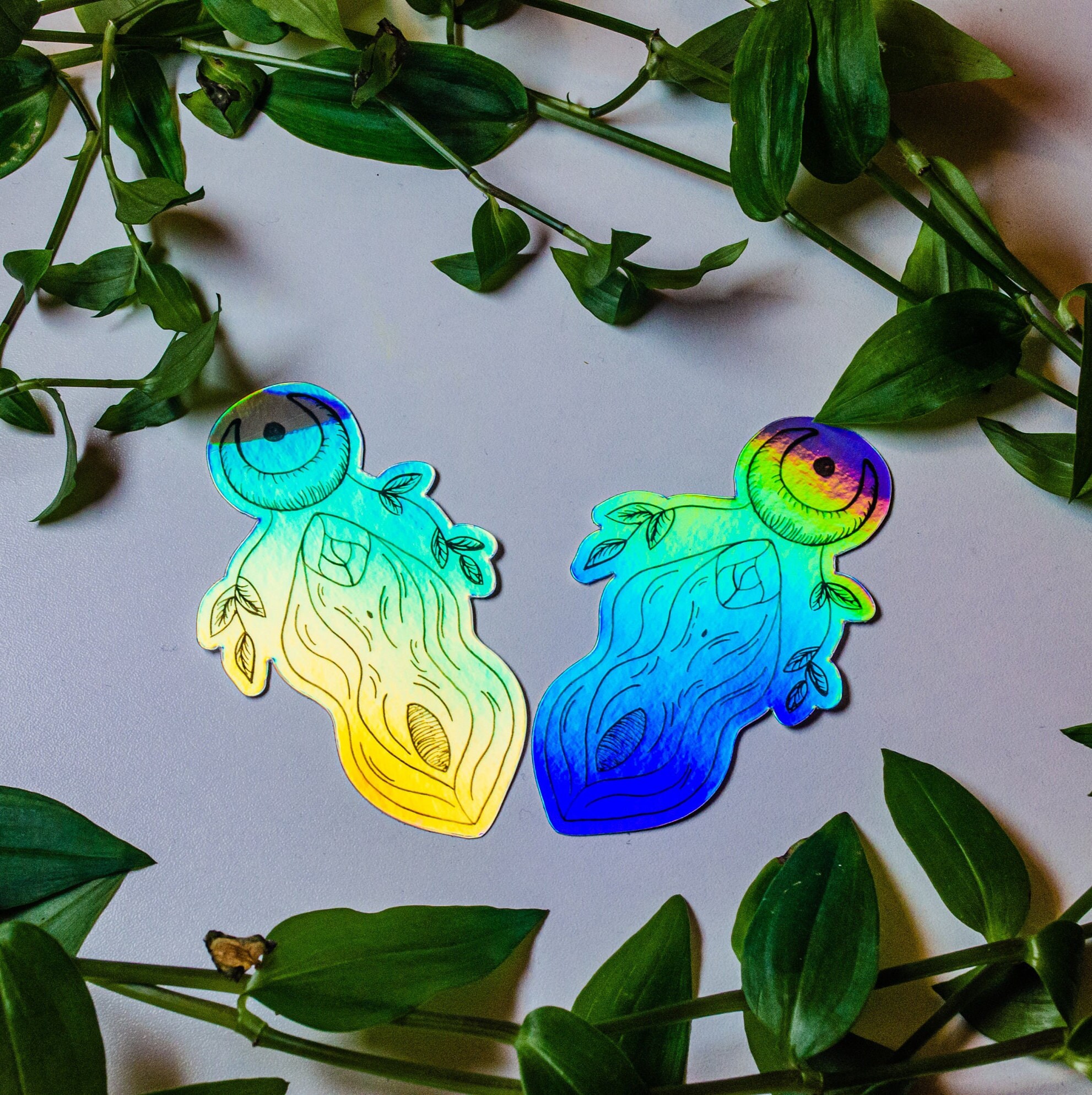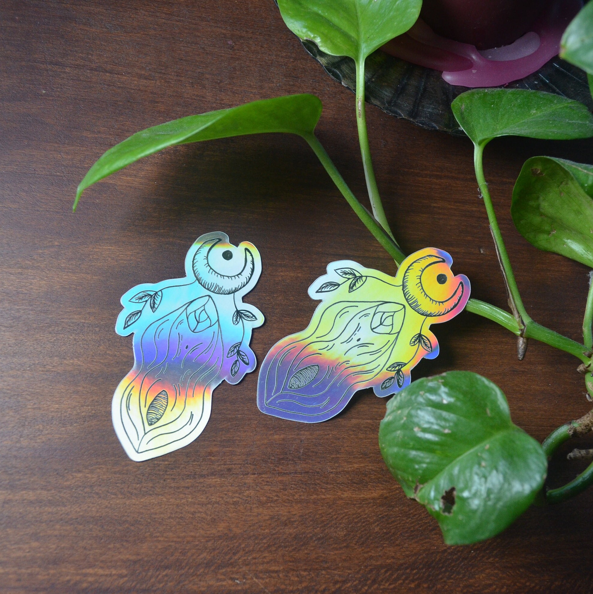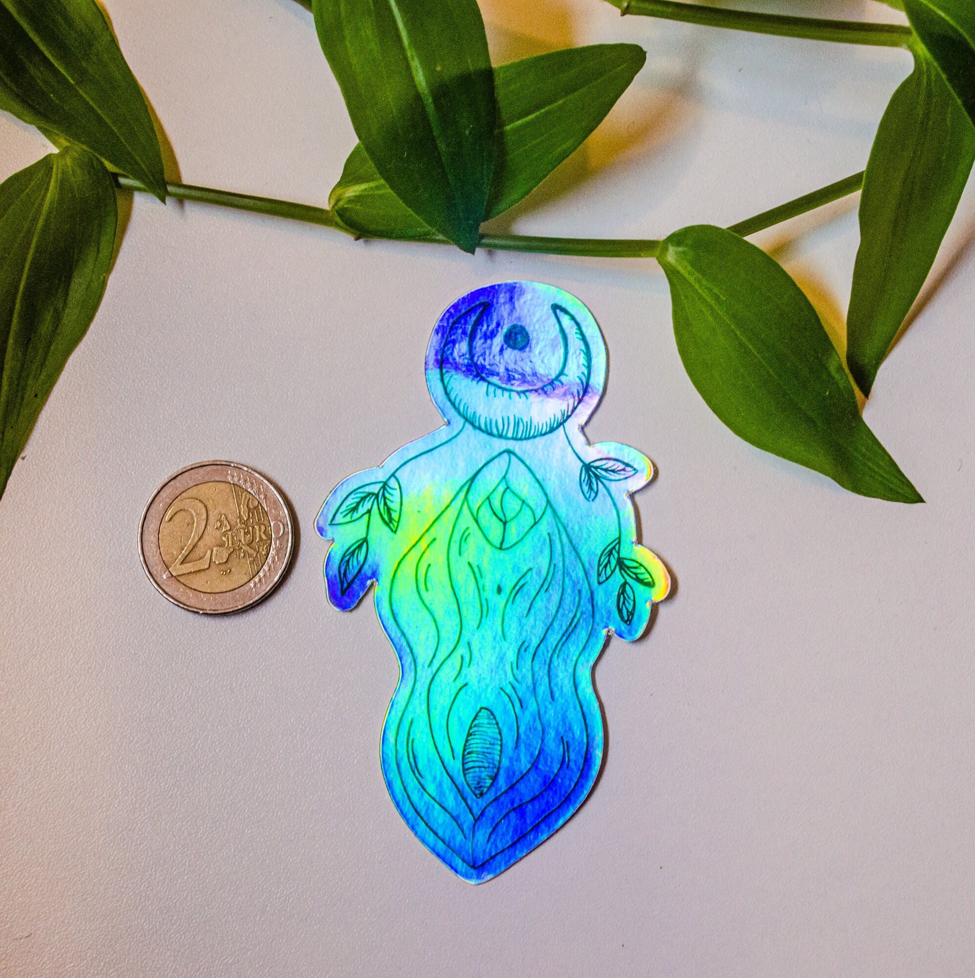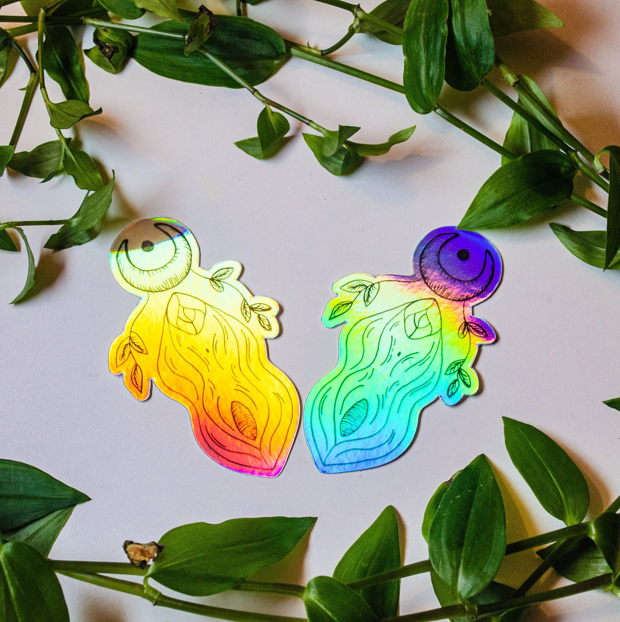 Holographic Vulva Sticker | Moon Drawing | Spiritual Boho Art | Holo Shiny Rainbow Decal