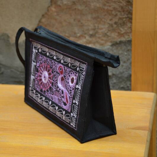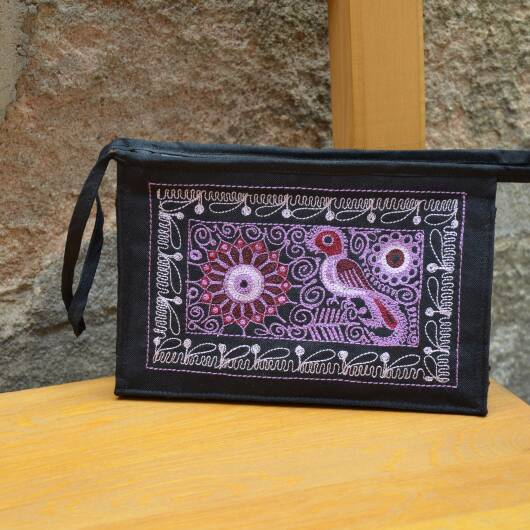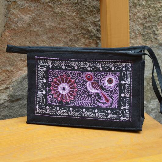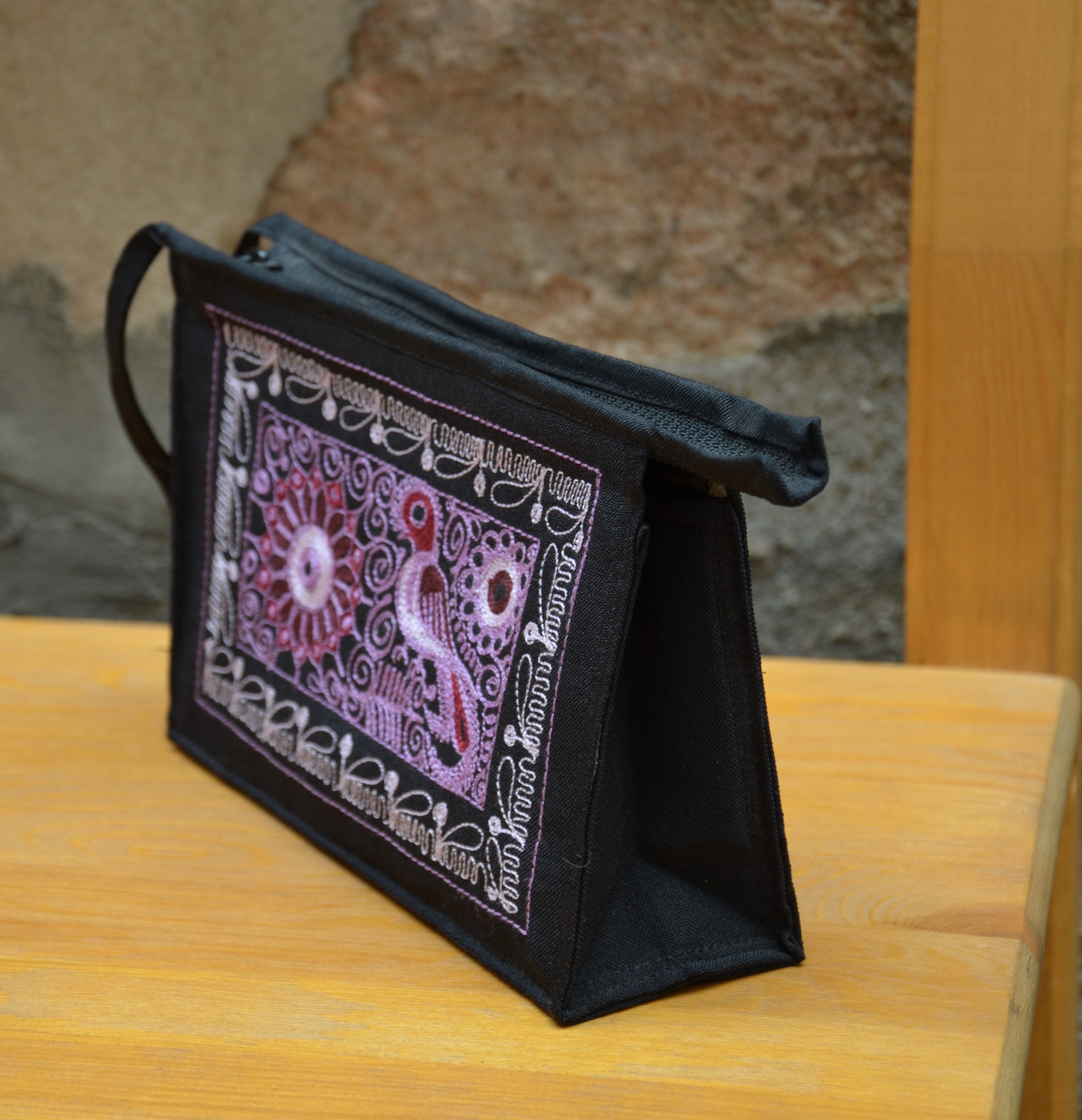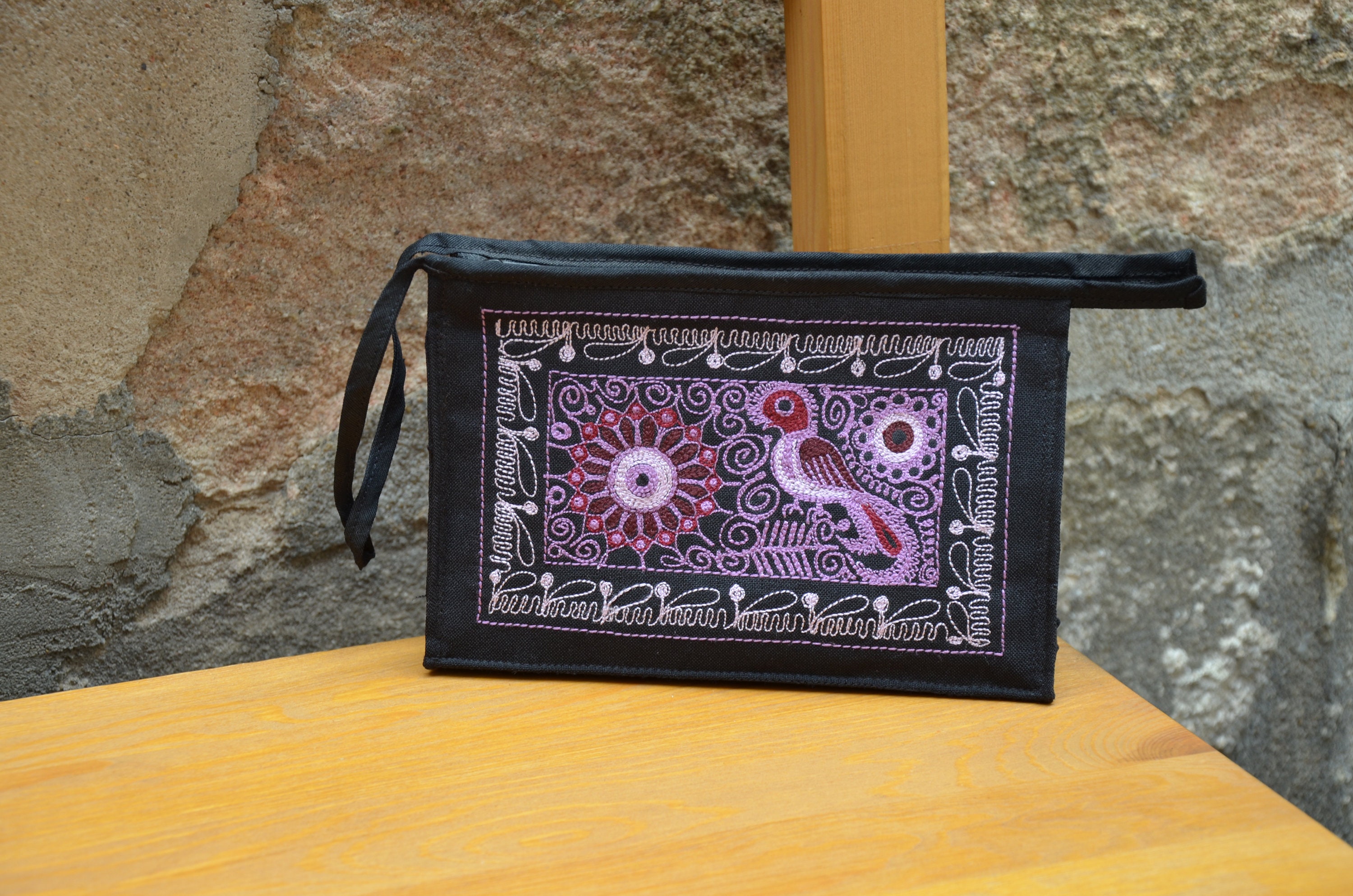 Schwarze Boho Kosmetiktasche / Handmade Kosmetiktasche / Kulturbeutel / Kulturtasche / Farbenfrohe Kulturtasche / Ethno Kulturbeutel Hippie