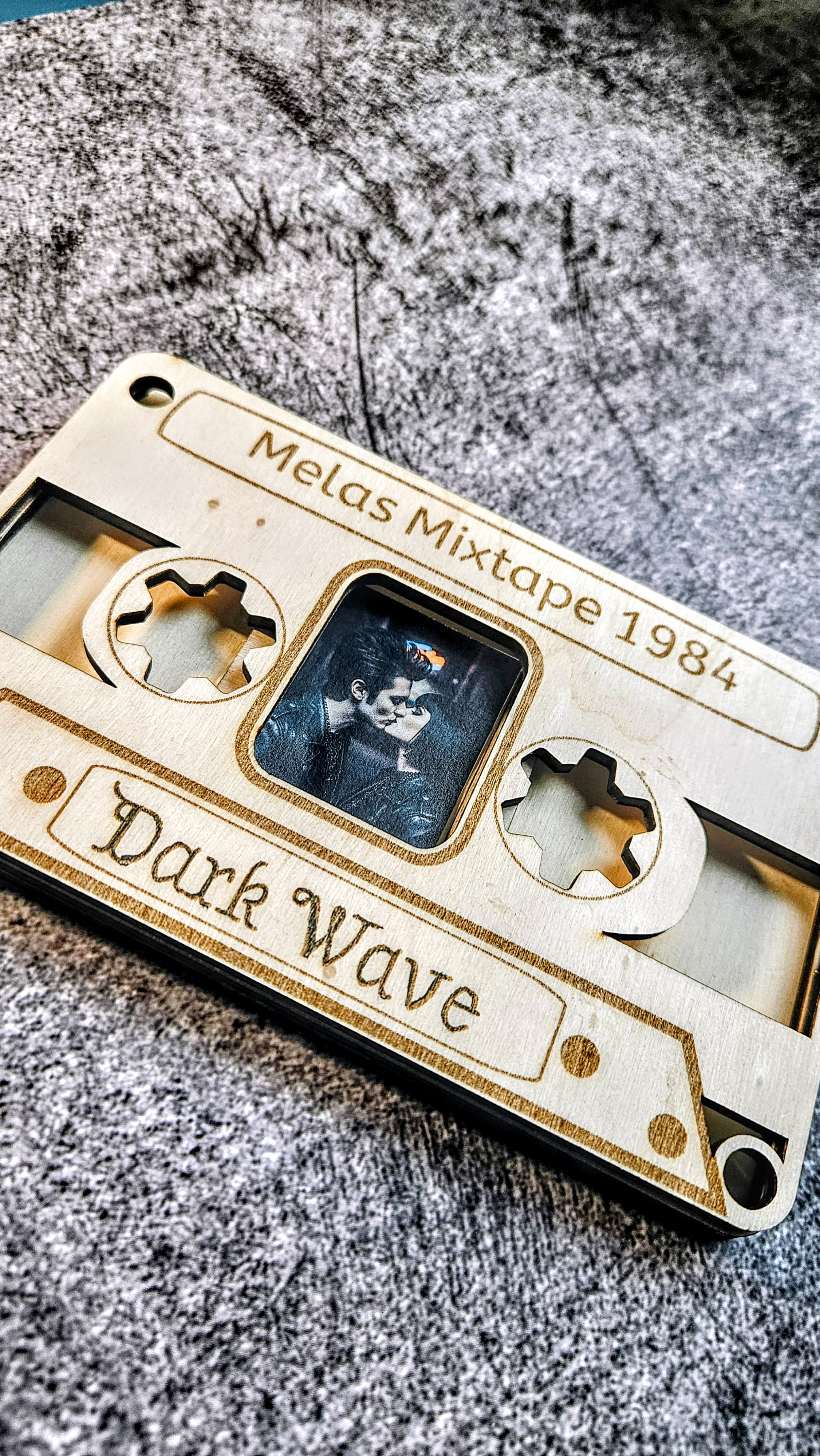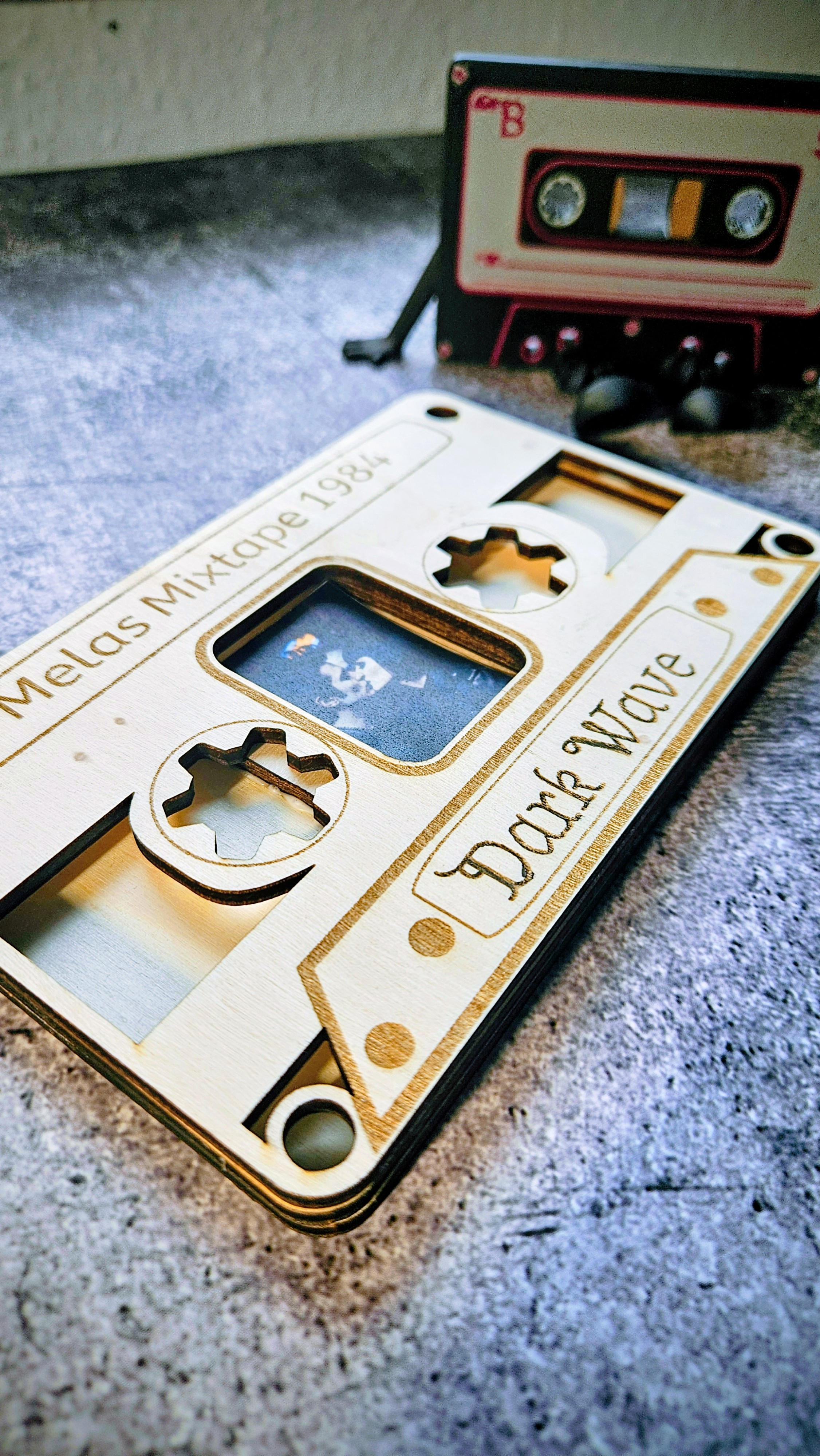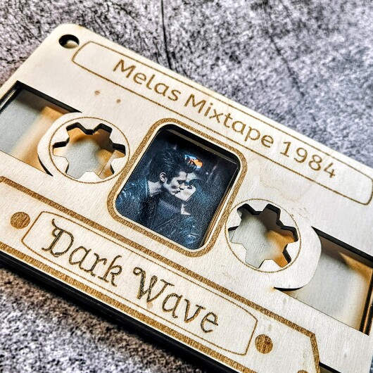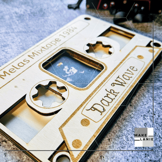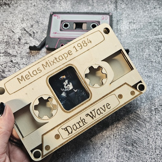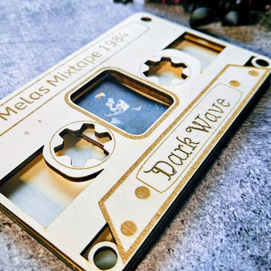 Dieser einzigartige Bilderrahmen in Form einer klassischen Musikkassette ist das ultimative Accessoire für alle Kinder der 80er, Musikliebhaber und Fans der Dark Wave Szene. Gefertigt aus hochwertigem 4 mm Pappelsperrholz, wird jedes Stück präzise mit dem Laser geschnitten und individuell für dich graviert.