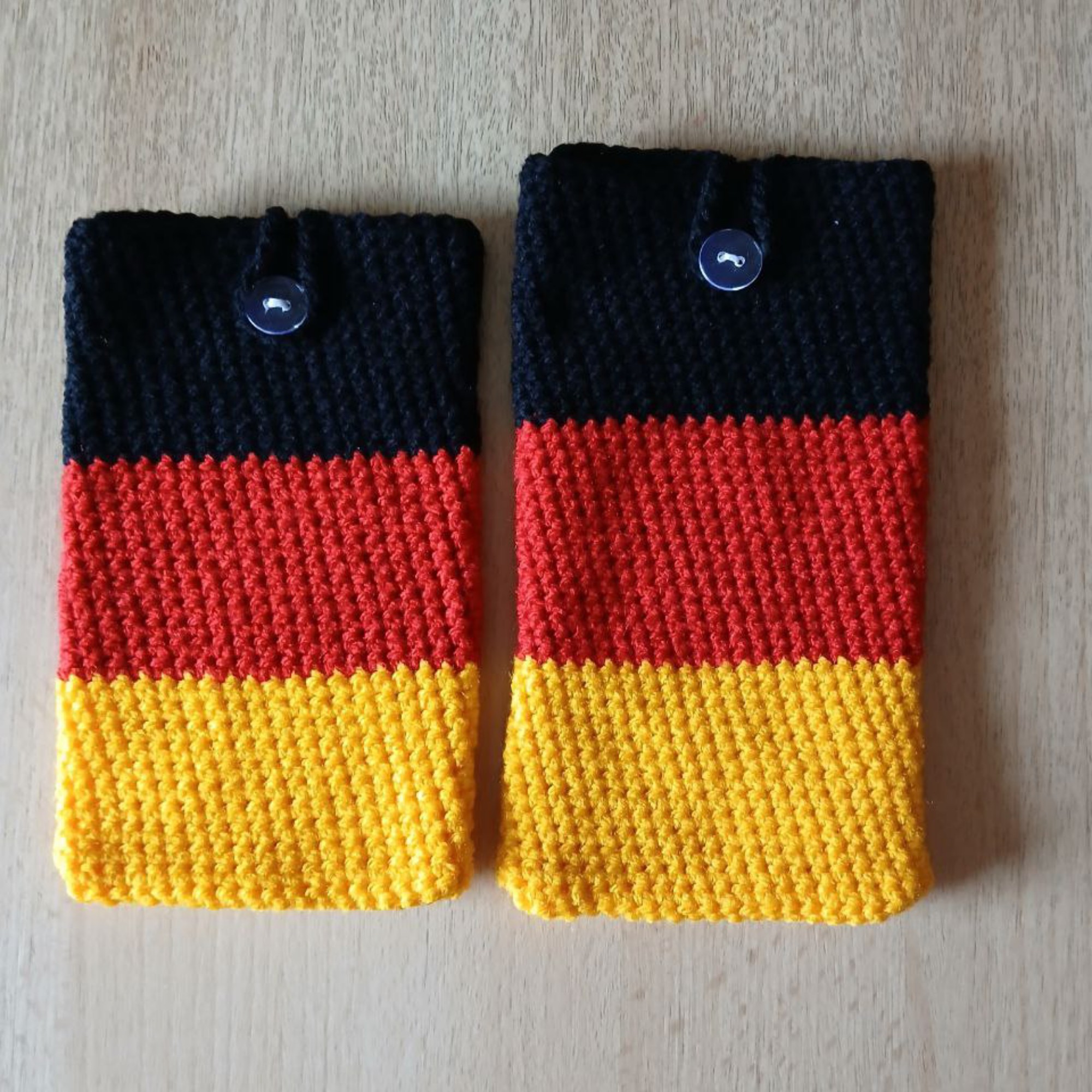 Zeigen Sie Stil, Heimatverbundenheit und Ihre Liebe zum Detail – mit dieser handgehäkelten Handyhülle in den Farben Schwarz-Rot-Gold, erhältlich in zwei verschiedenen Größen. Diese besondere Deutschland Handyhülle ist nicht nur ein funktionales Accessoire, sondern auch ein Statement: für Fans und für alle, die mit Handarbeit ihre Heimatverbundenheit zum Ausdruck bringen wollen.