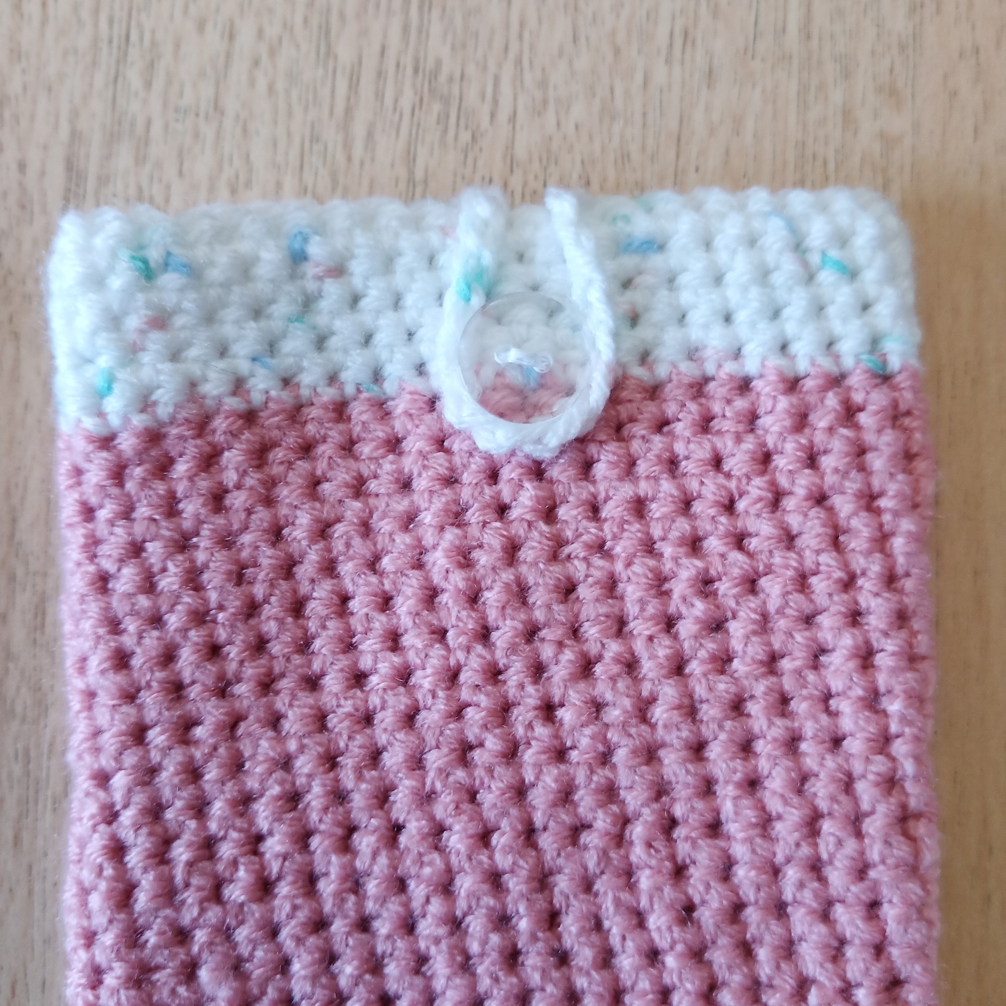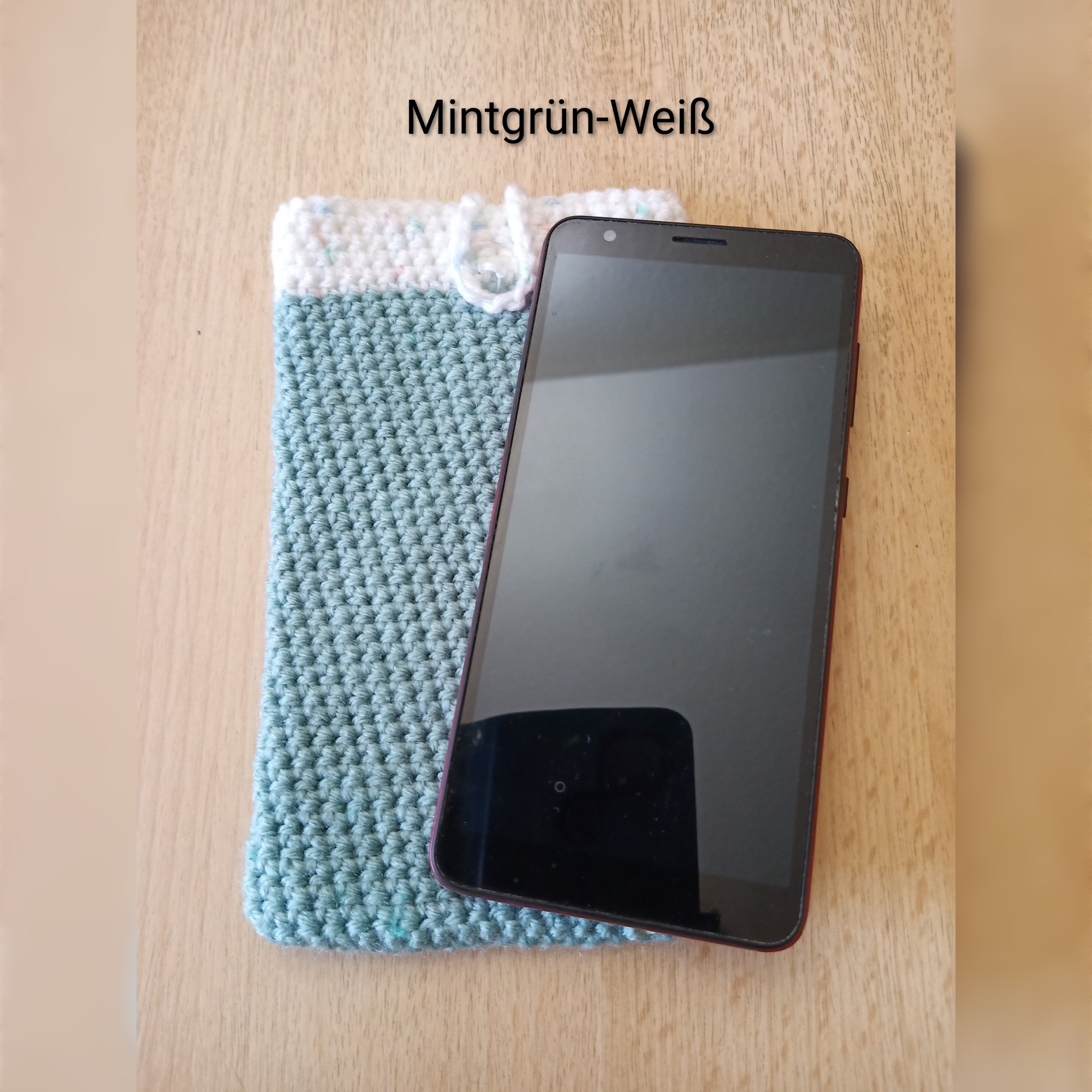 Schützen Sie Ihr Smartphone mit Stil – diese handgehäkelte Handyhülle in zwei Farben vereint praktischen Nutzen mit liebevoller Handarbeit. Gefertigt aus weichem, aber strapazierfähiger Wolle, bietet sie optimalen Schutz vor Kratzern, leichten Stößen und Schmutz. Der dekorative Knopfverschluss sorgt dafür, dass Ihr Handy sicher verstaut bleibt – egal ob in der Handtasche, im Rucksack oder unterwegs in der Hand.