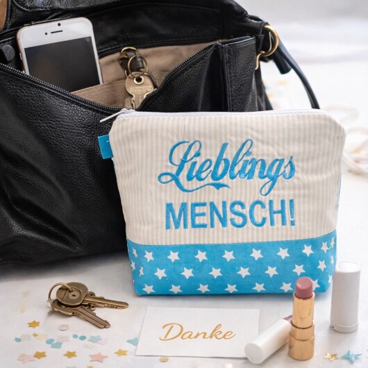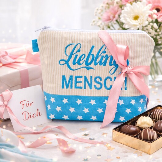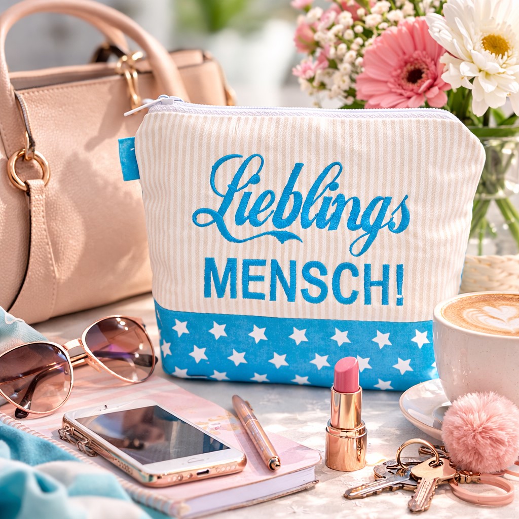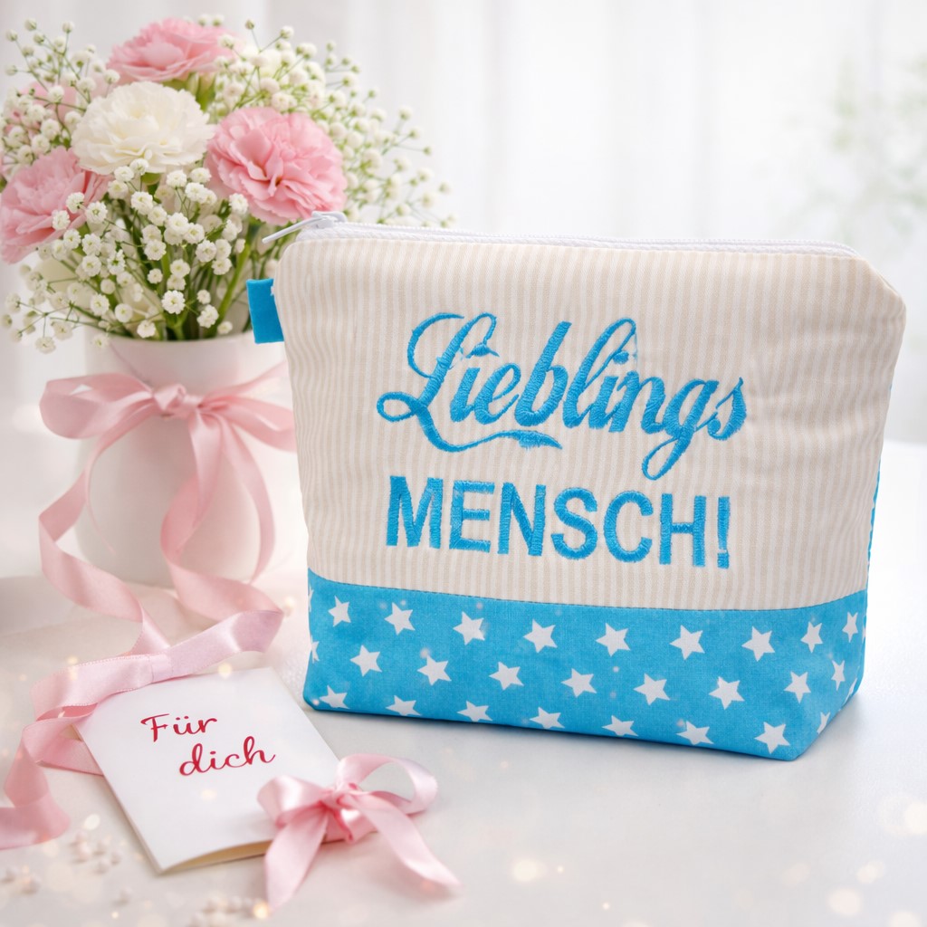 Lieber etwas schenken, das bleibt statt Blumen, die morgen verwelken – diese Kosmetiktasche sagt „Lieblingsmensch“ und trifft mitten ins Herz. Ein kleines Geschenk mit großer Botschaft für Freundin, Mama oder Kollegin. Praktisch, persönlich und garantiert ein Lächeln wert.