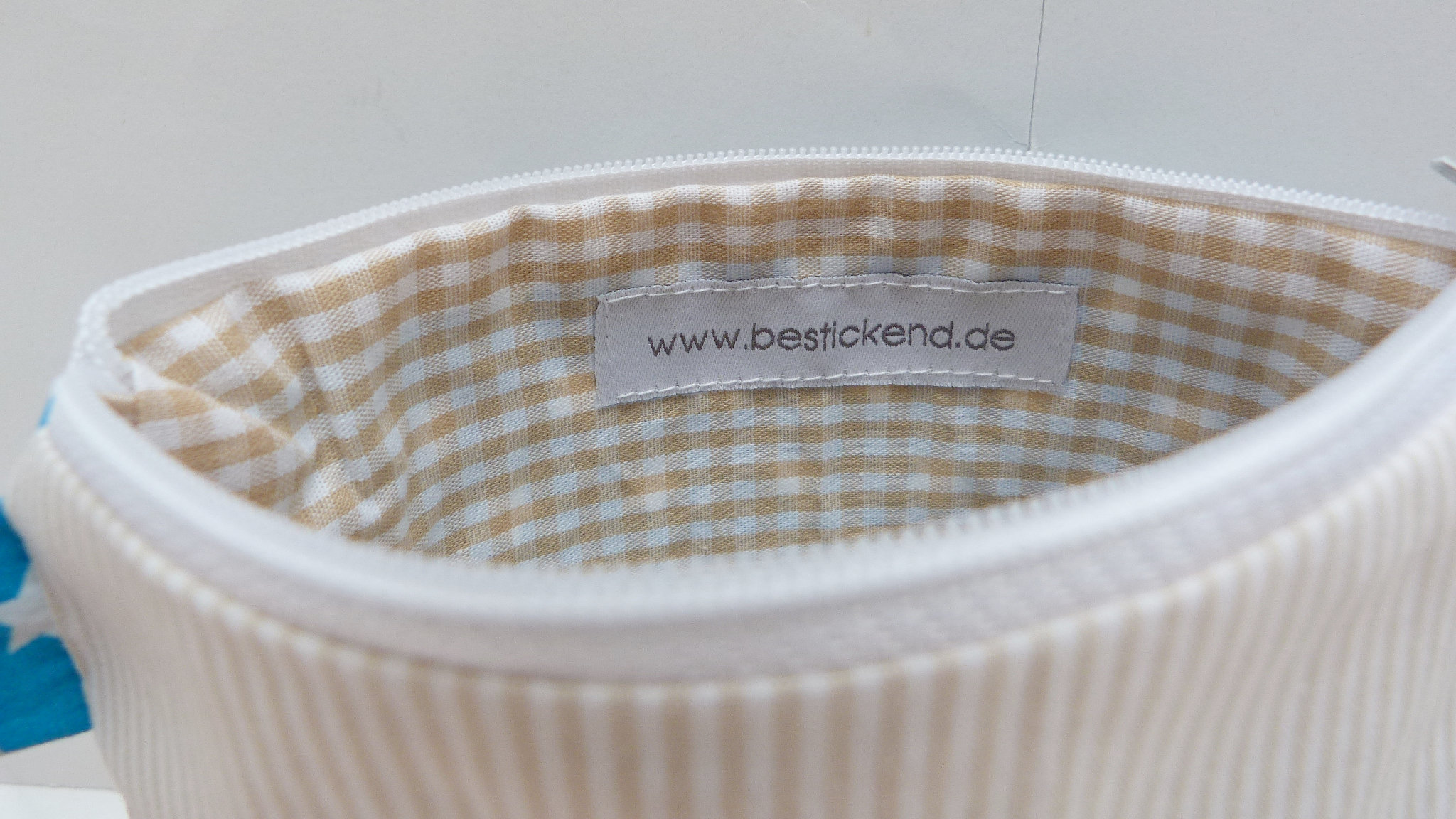 Sie wird individuell bestickt und mit einem Reißverschluss geschlossen.