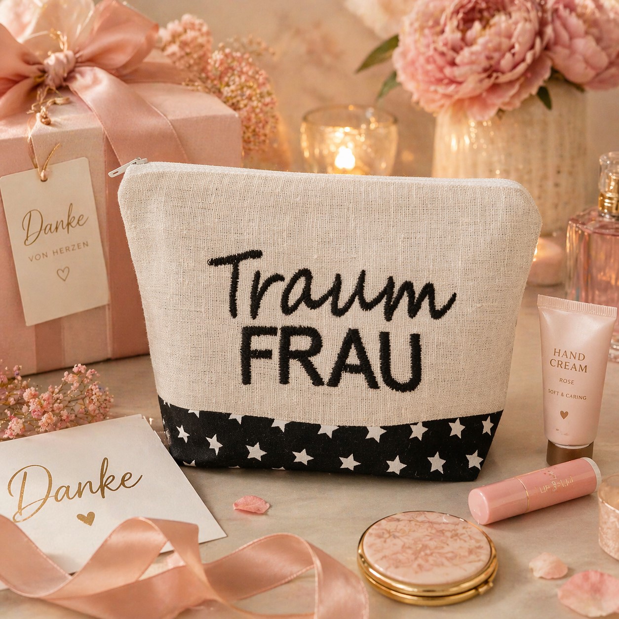 Lieber etwas schenken, das bleibt statt Blumen, die morgen verwelken – diese Kosmetiktasche sagt „Lieblingsmensch“ und trifft mitten ins Herz. Ein kleines Geschenk mit großer Botschaft für Freundin, Mama oder Kollegin. Praktisch, persönlich und garantiert ein Lächeln wert.