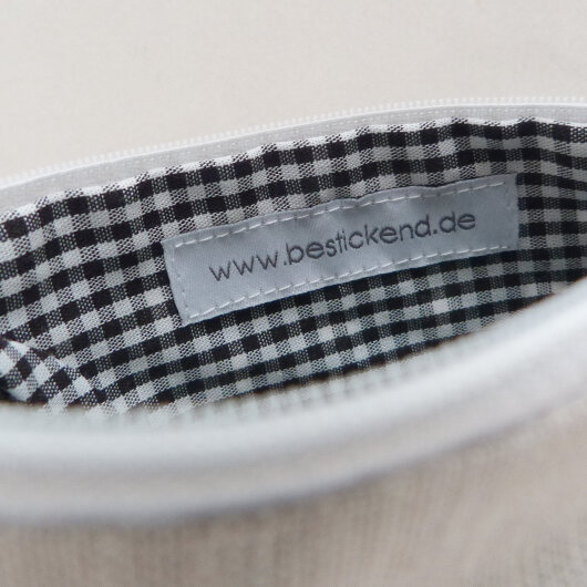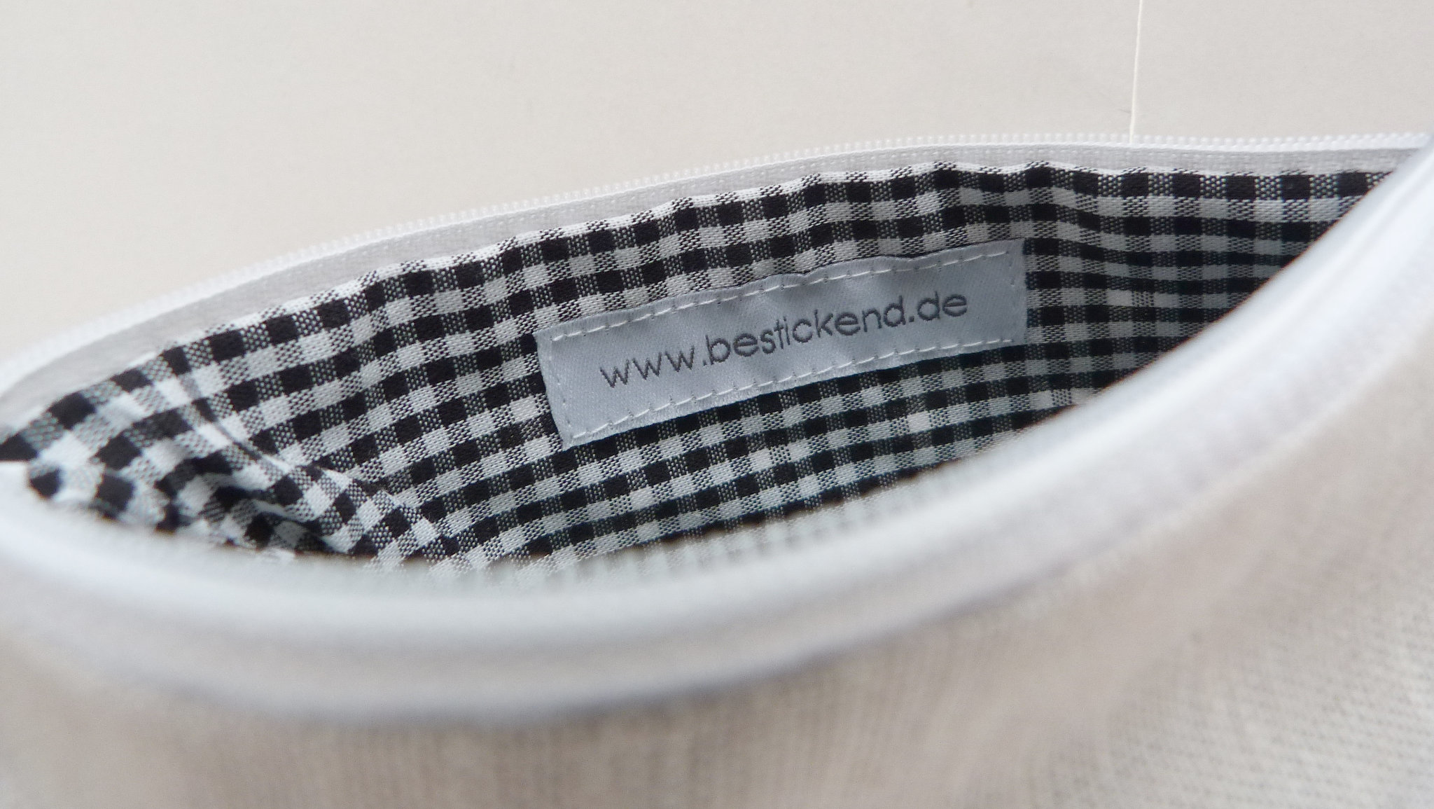 Sie wird individuell bestickt und mit einem Reißverschluss geschlossen.