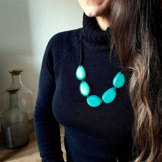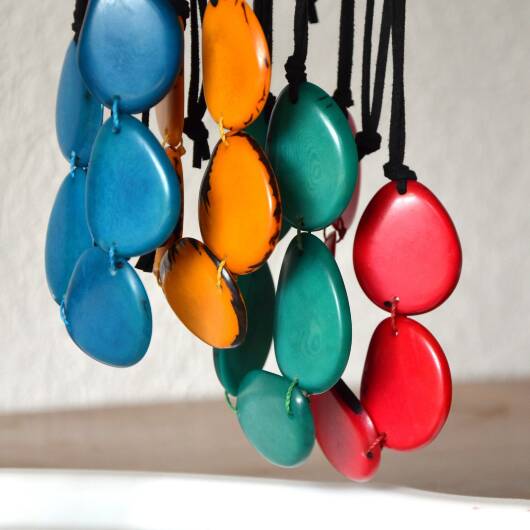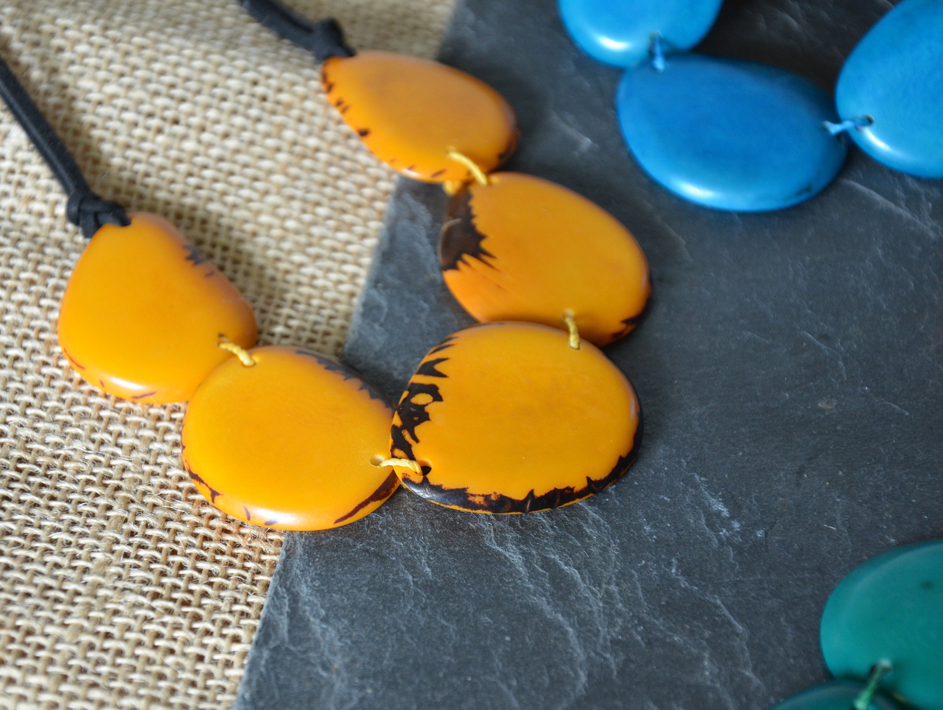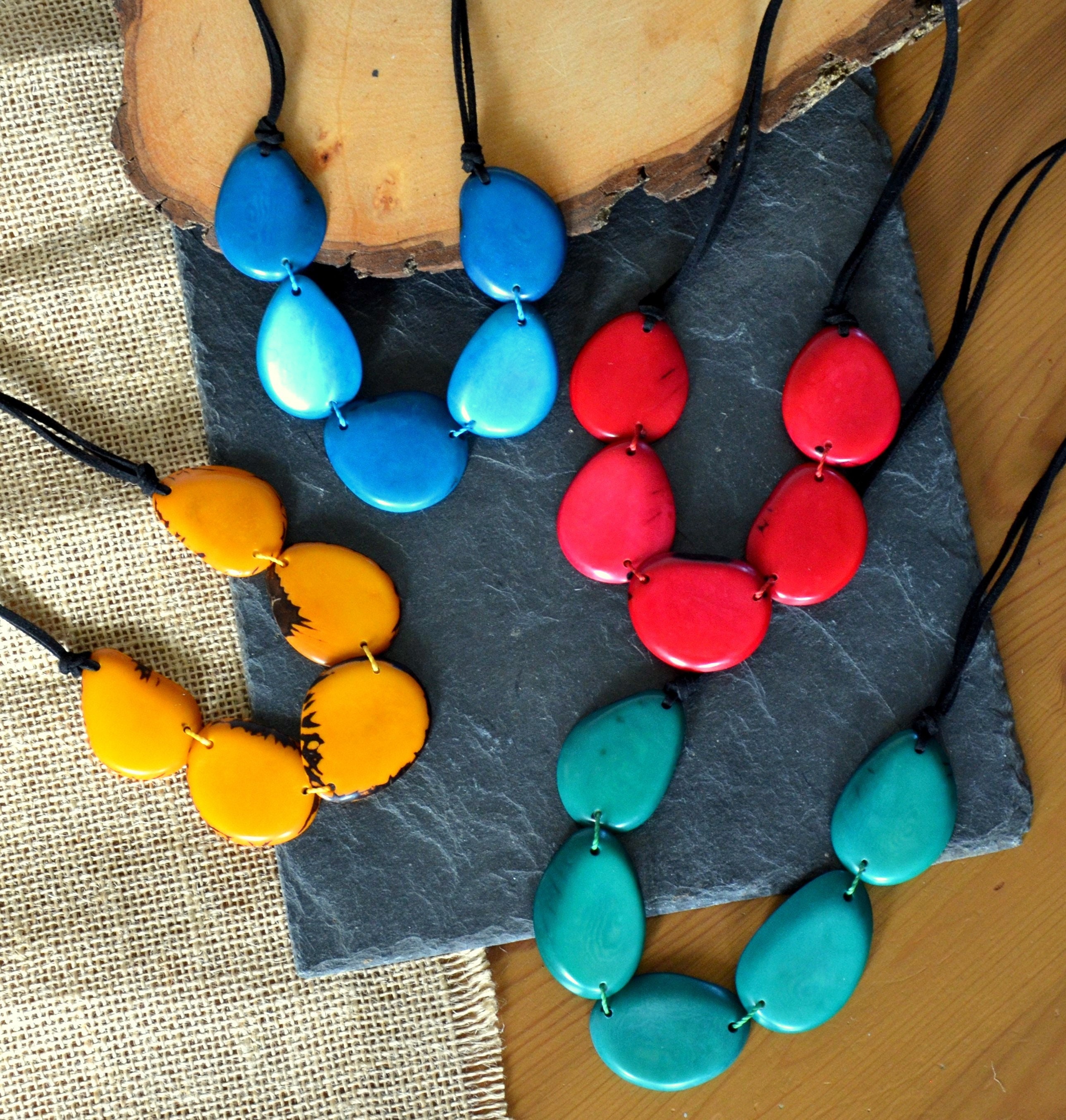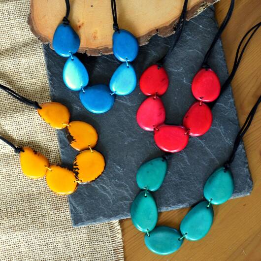 Boho Eco Tagua Kette / Tagua Nuss Halskette / Kette aus natürlichen Materialien / Statement Kette / Kette in kräftigen Farben