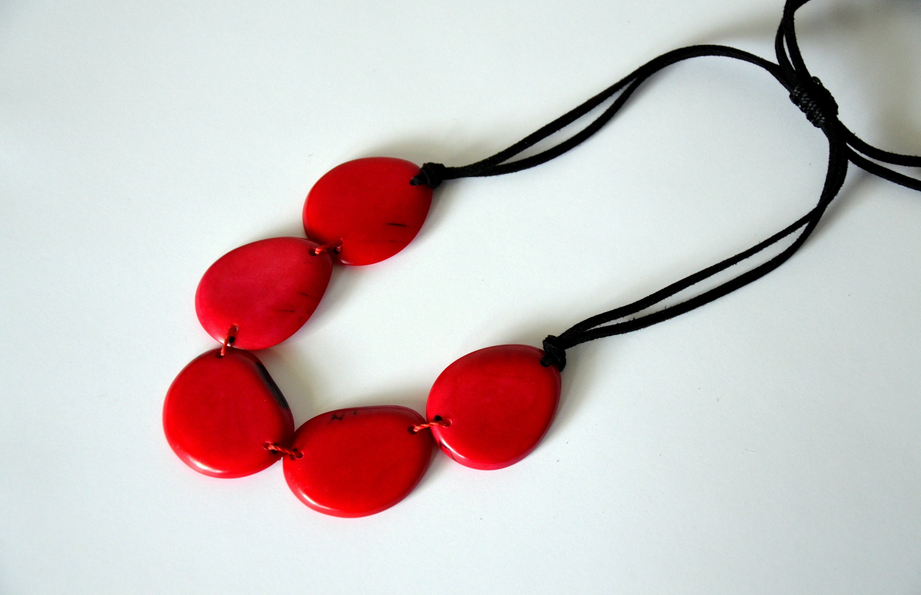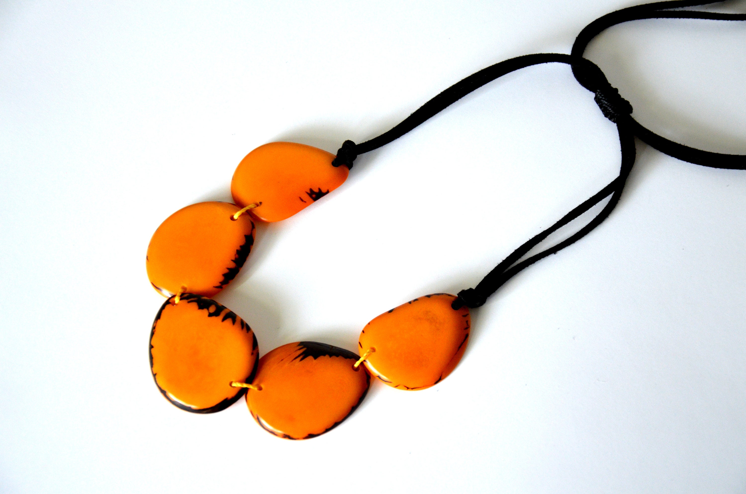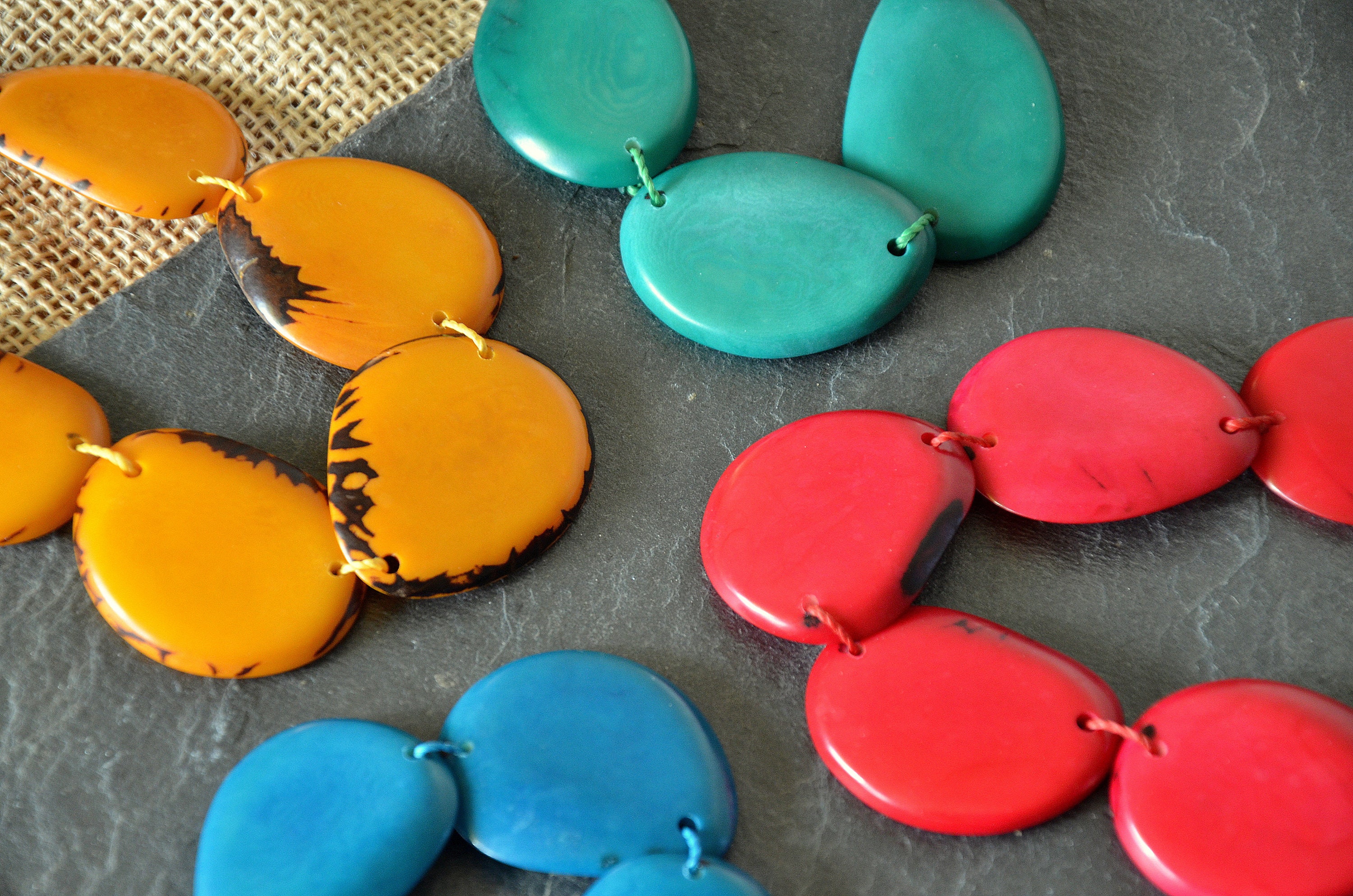 Boho Eco Tagua Kette / Tagua Nuss Halskette / Kette aus natürlichen Materialien / Statement Kette / Kette in kräftigen Farben