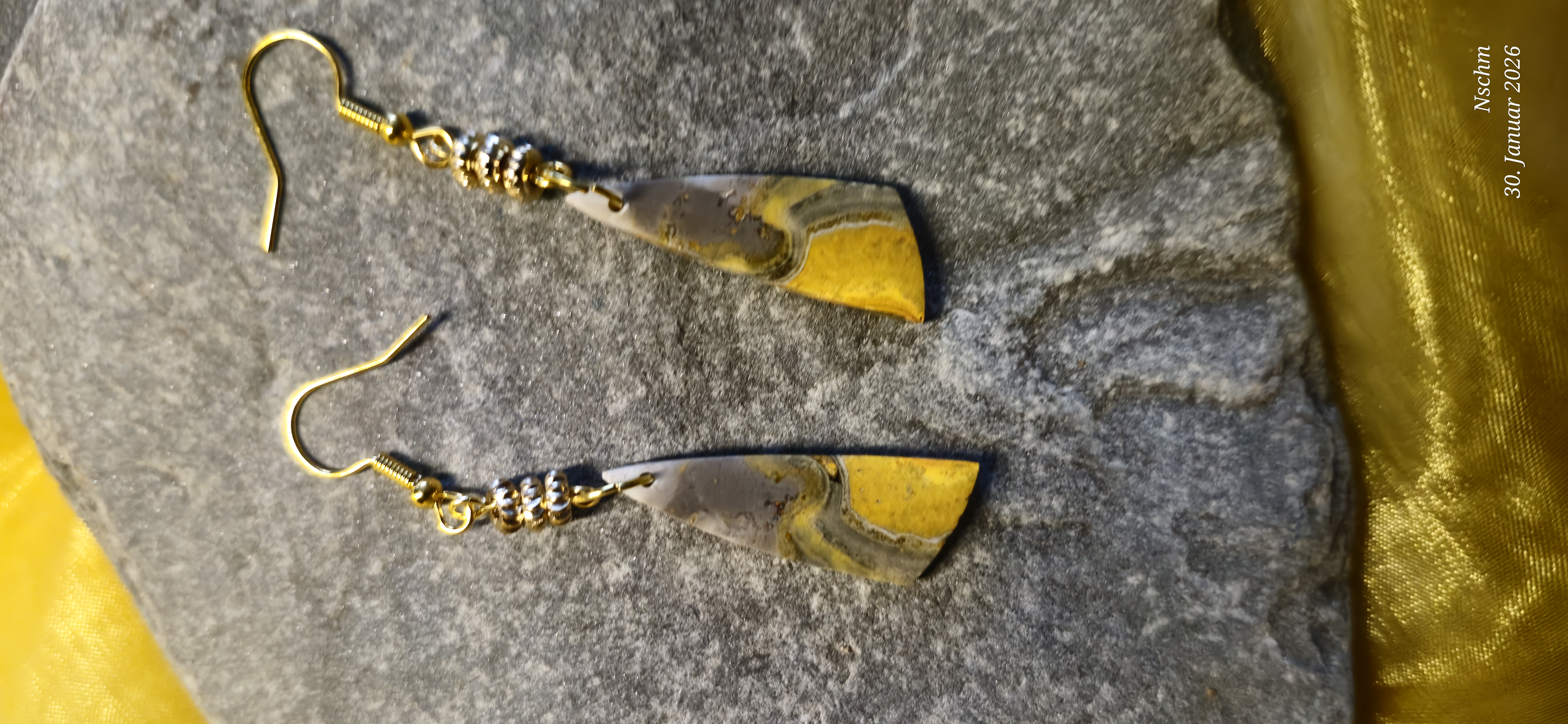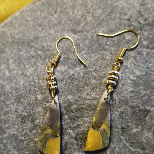 Die vergoldeten Ohrhaken (14,18 oder 24 Karat Gold) setzten warme Akzente und unterstreichen die Leuchtkraft des Steins, ohne ihm die Aufmerksamkeit zu nehmen. Bumblebee Jaspis steht für Lebensfreude, Kreativität und innere Stärke. Diese Ohrringe sind mehr als Schmuck - sie sind kleine Kraftbegleiter für den Alltag oder ein besonderes Geschenk für einen Herzensmenschen.