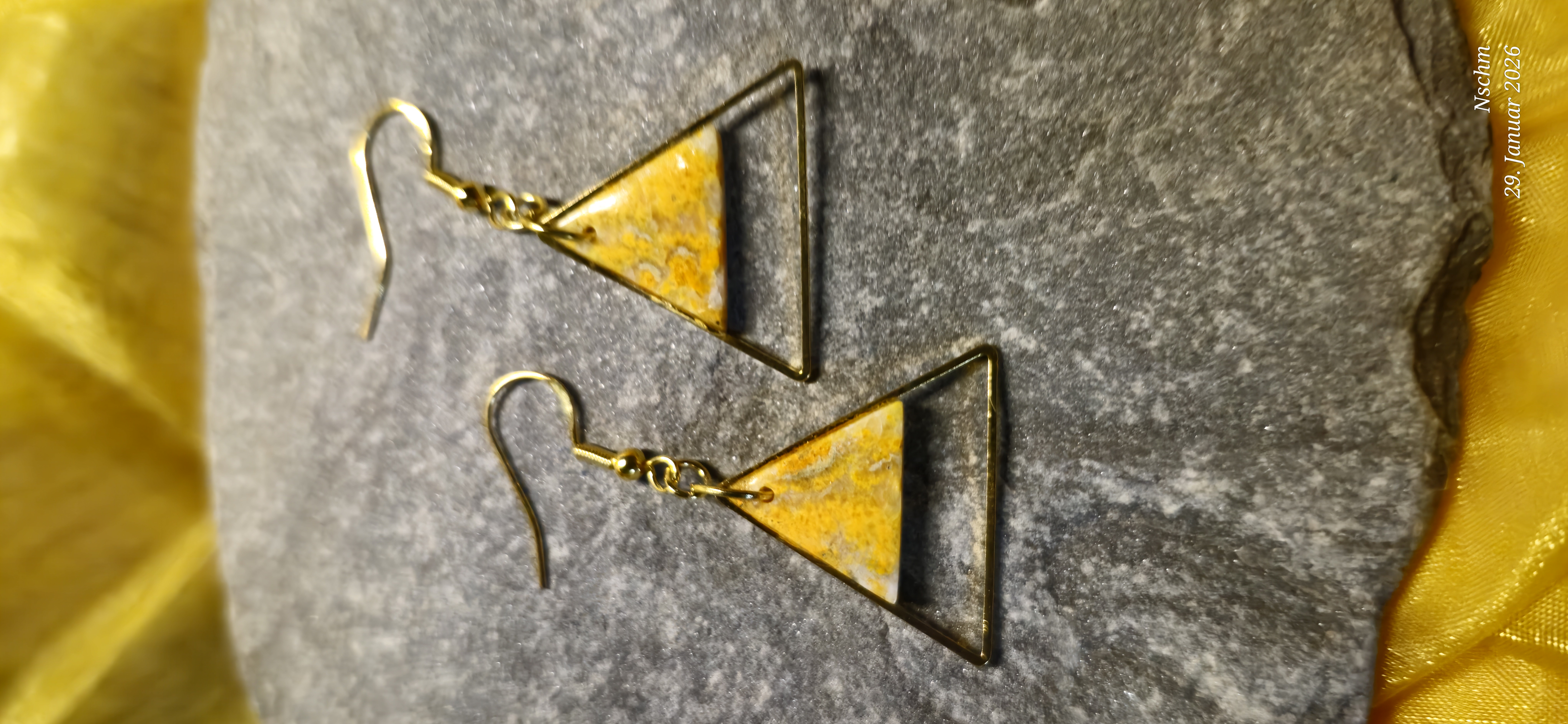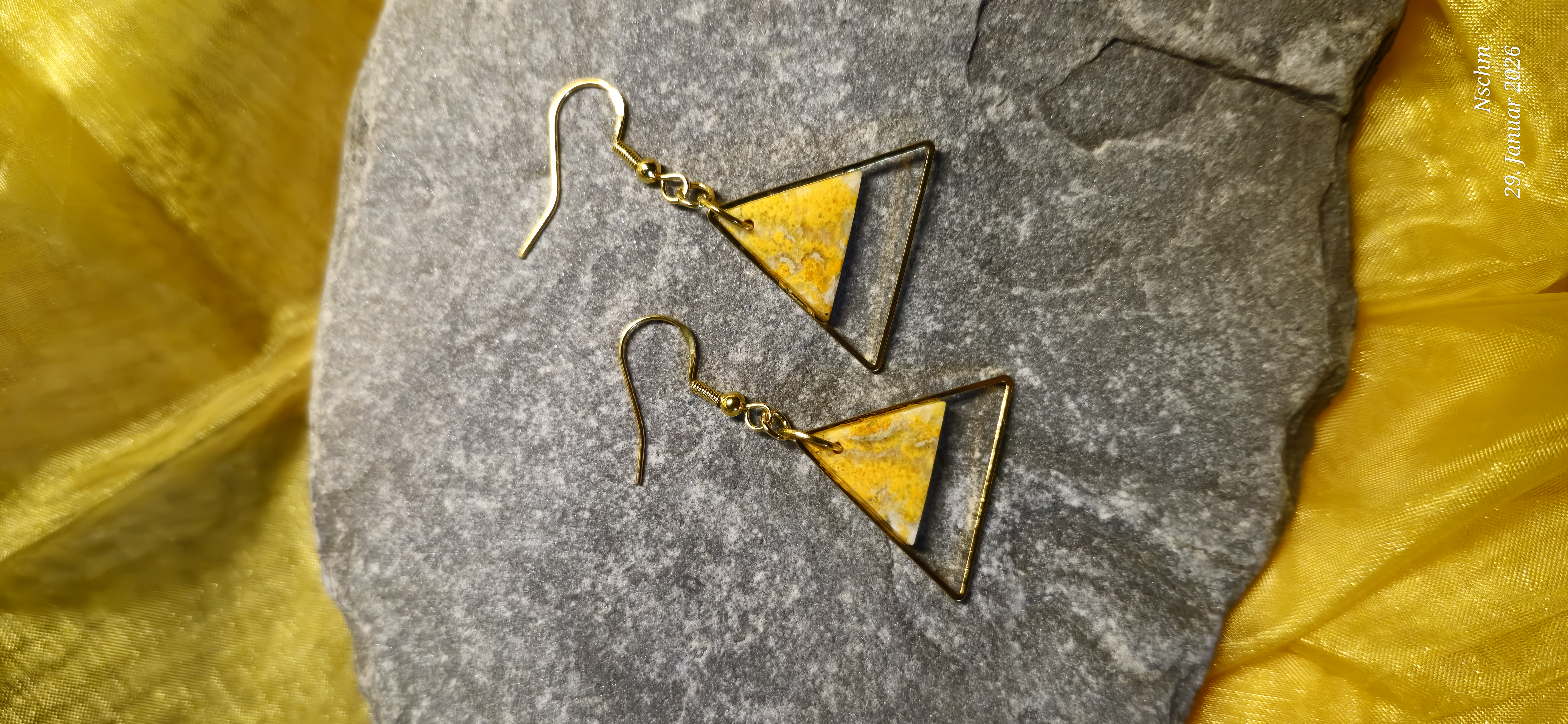 Diese einzigartigen Ohrringe aus Bumblebee Jaspis vereinen natürliche Schönheit mit liebevoller Handarbeit. Die intensiven Gelg-, Honig- und warmen Grautöne erinnern an Sonnenlicht, Blüten und die kraftvolle Lebendigkeit der Natur. Jeder Stein besitzt seine eigene Maserung - kein Paar gleicht dem anderen.