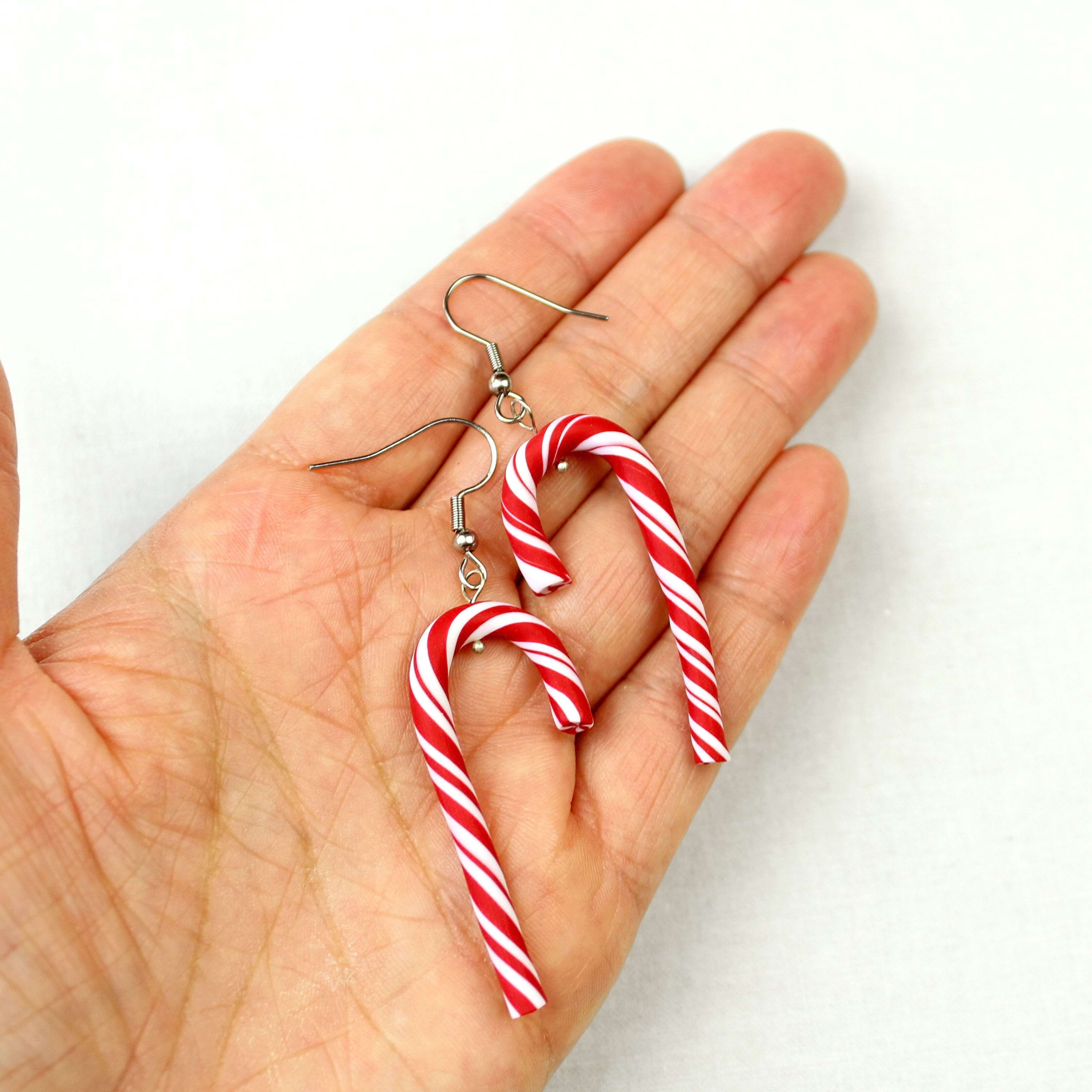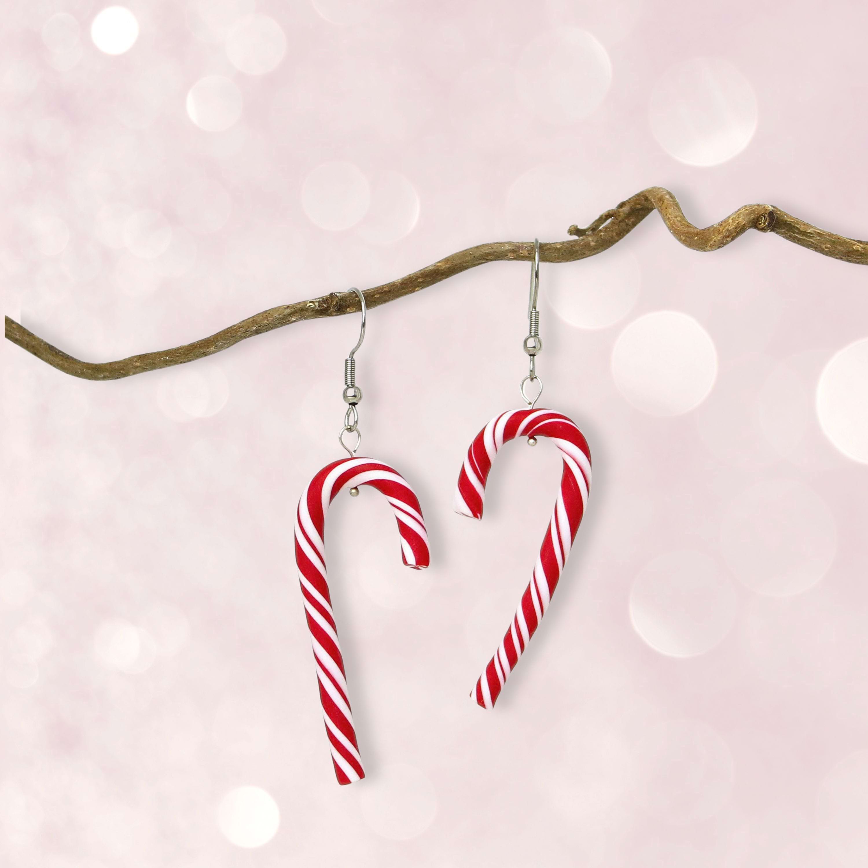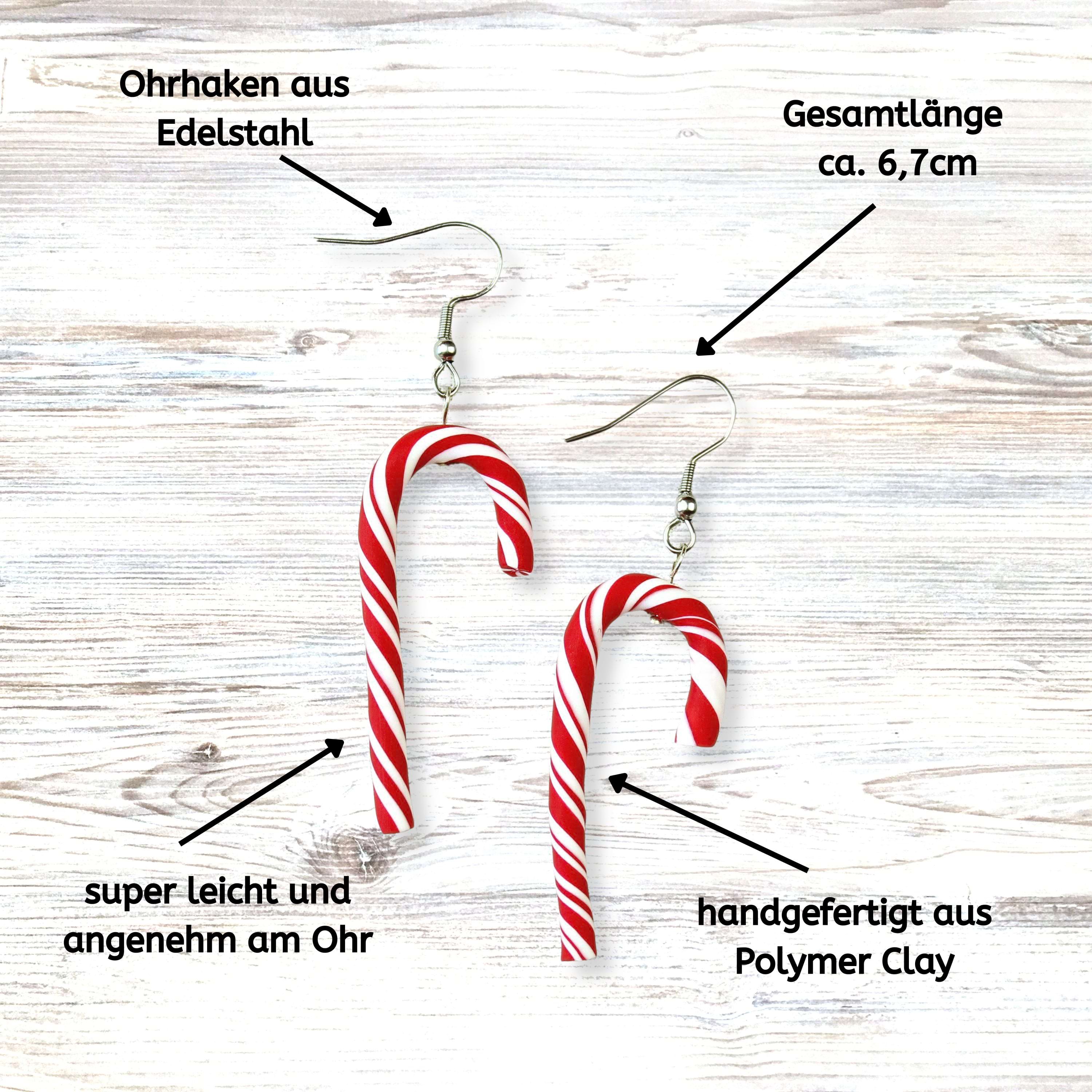 Handgemachte Zuckerstangen Ohrringe aus Polymer Clay – weihnachtlicher Ohrschmuck