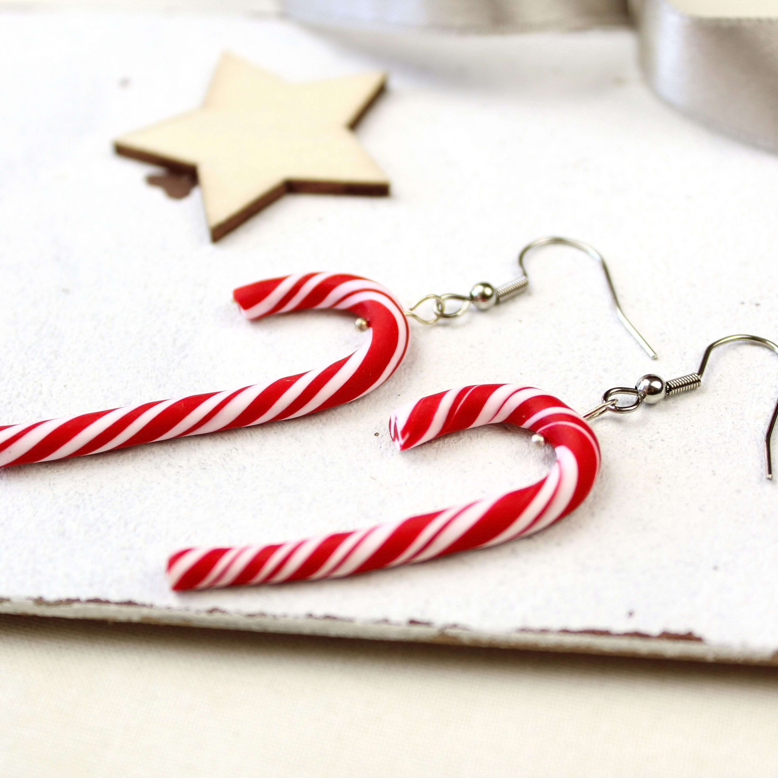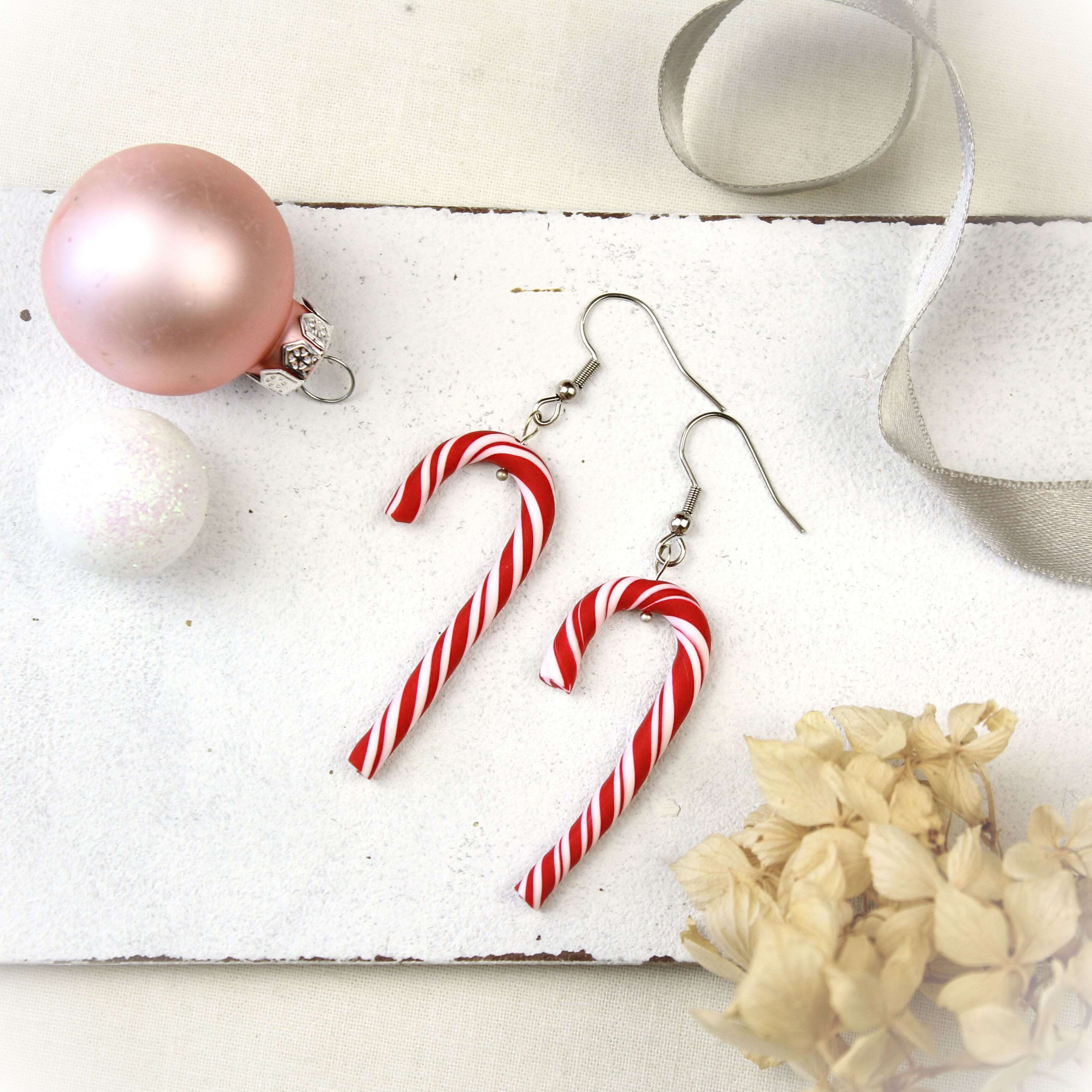 Zuckerstangen Ohrringe aus Polymer Clay – leichte Weihnachtsohrringe