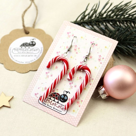 Hol dir diese Zuckerstangen Ohrringe und freue dich über ein winterliches Accessoire, das dir durch die Adventszeit hindurch Freude macht.