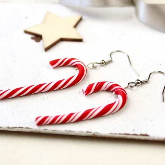 Weihnachtsohrringe Zuckerstangen – handgemachter Ohrschmuck aus Clay