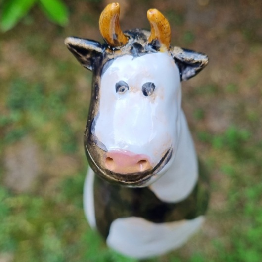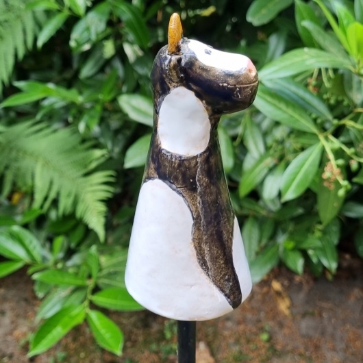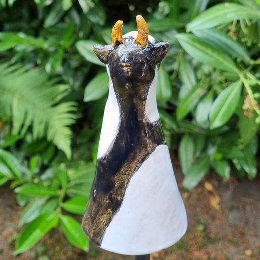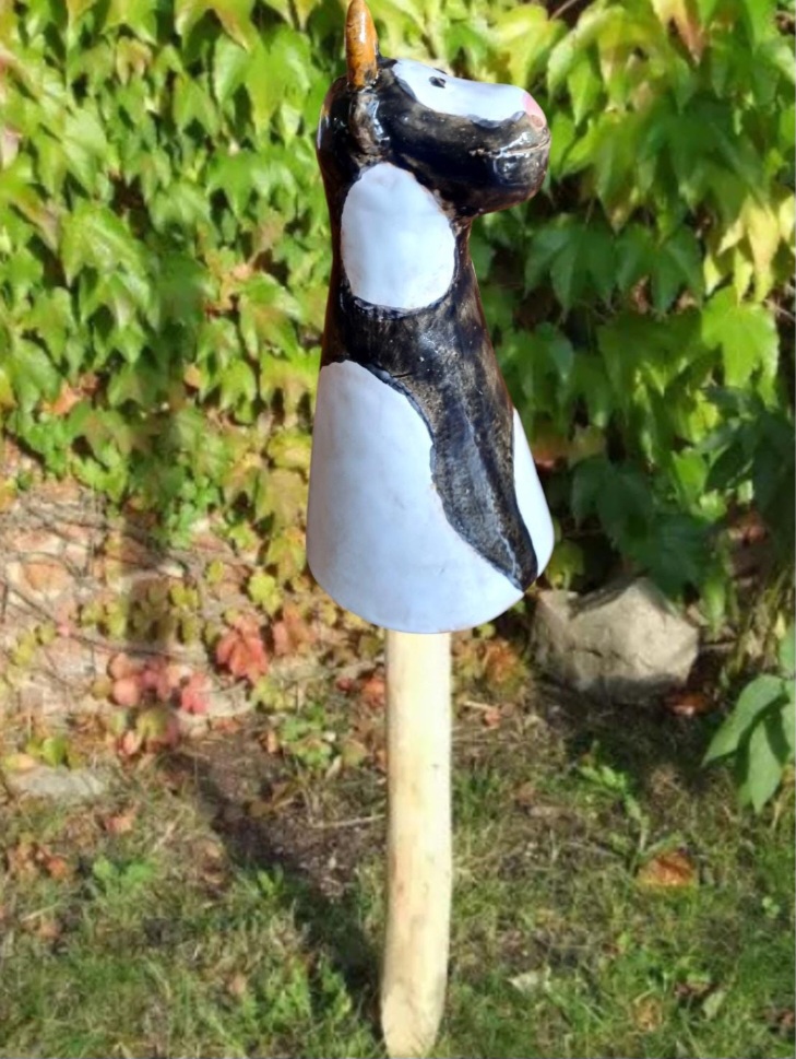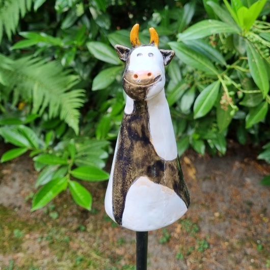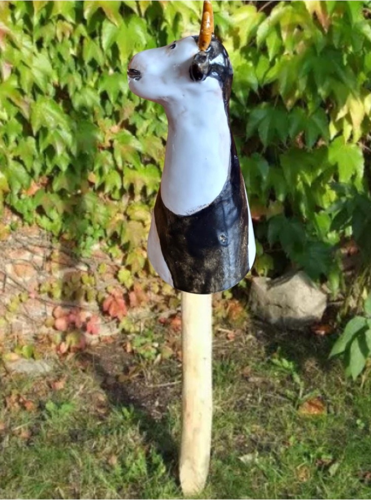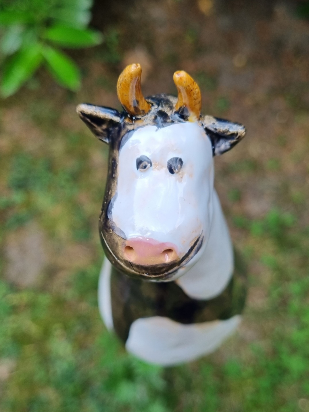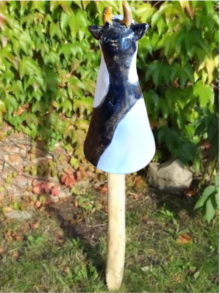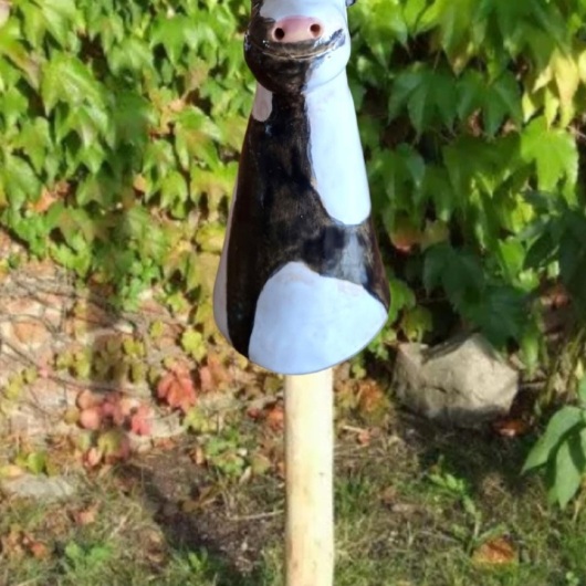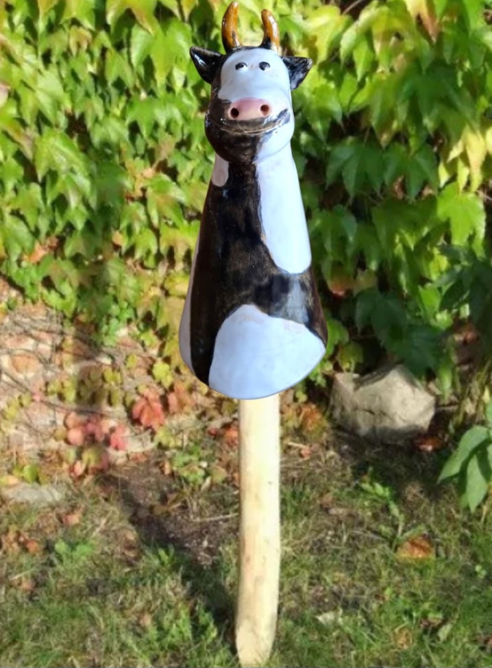 Schwarzbunte Kuh. Zum Hocken auf Zäunen oder Pfählen oder als Dekoobjekt im Haus und Garten.