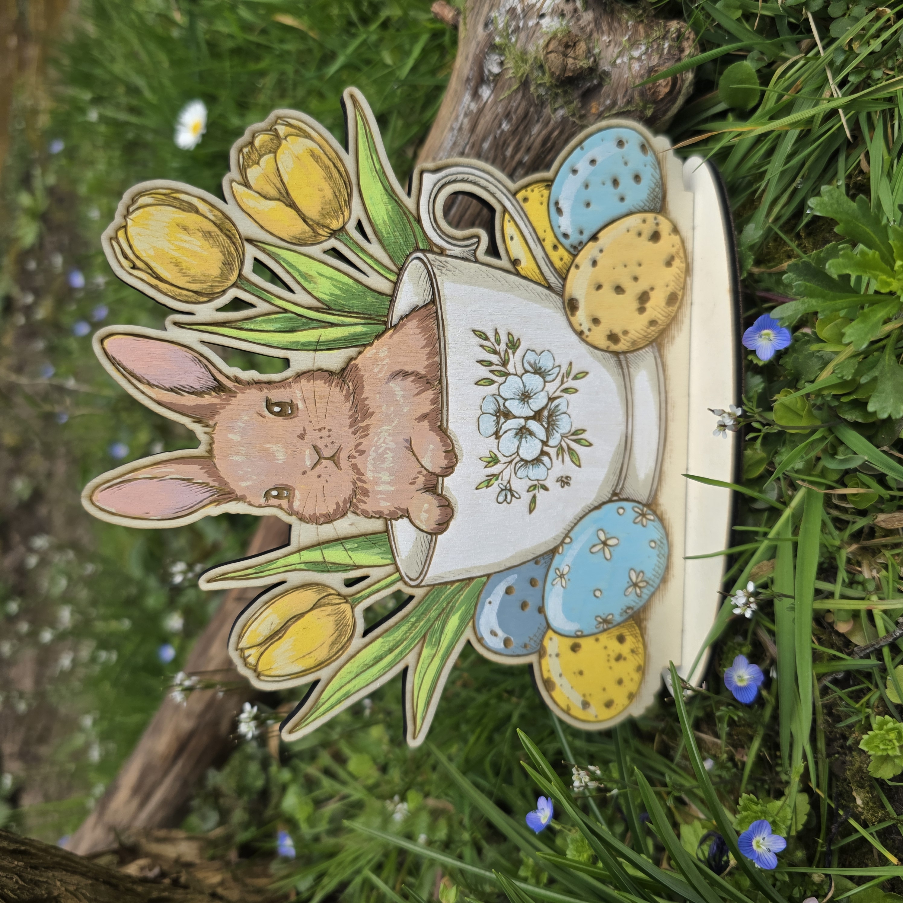 Häschen in Tasse- Dekoraufsteller für Ostern