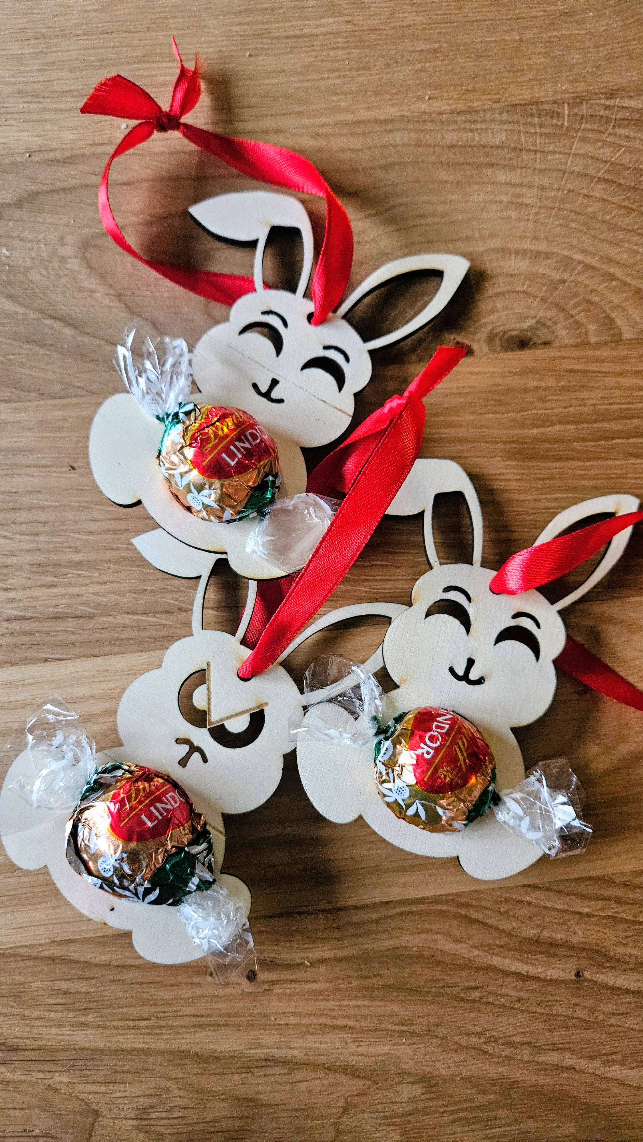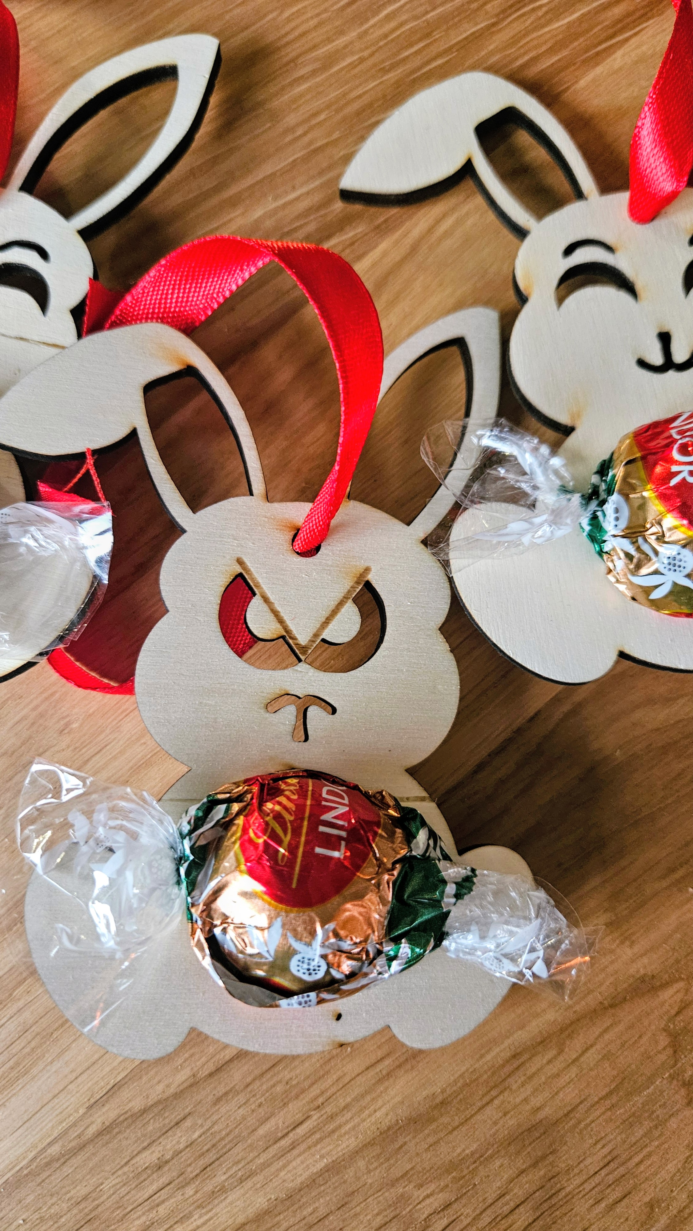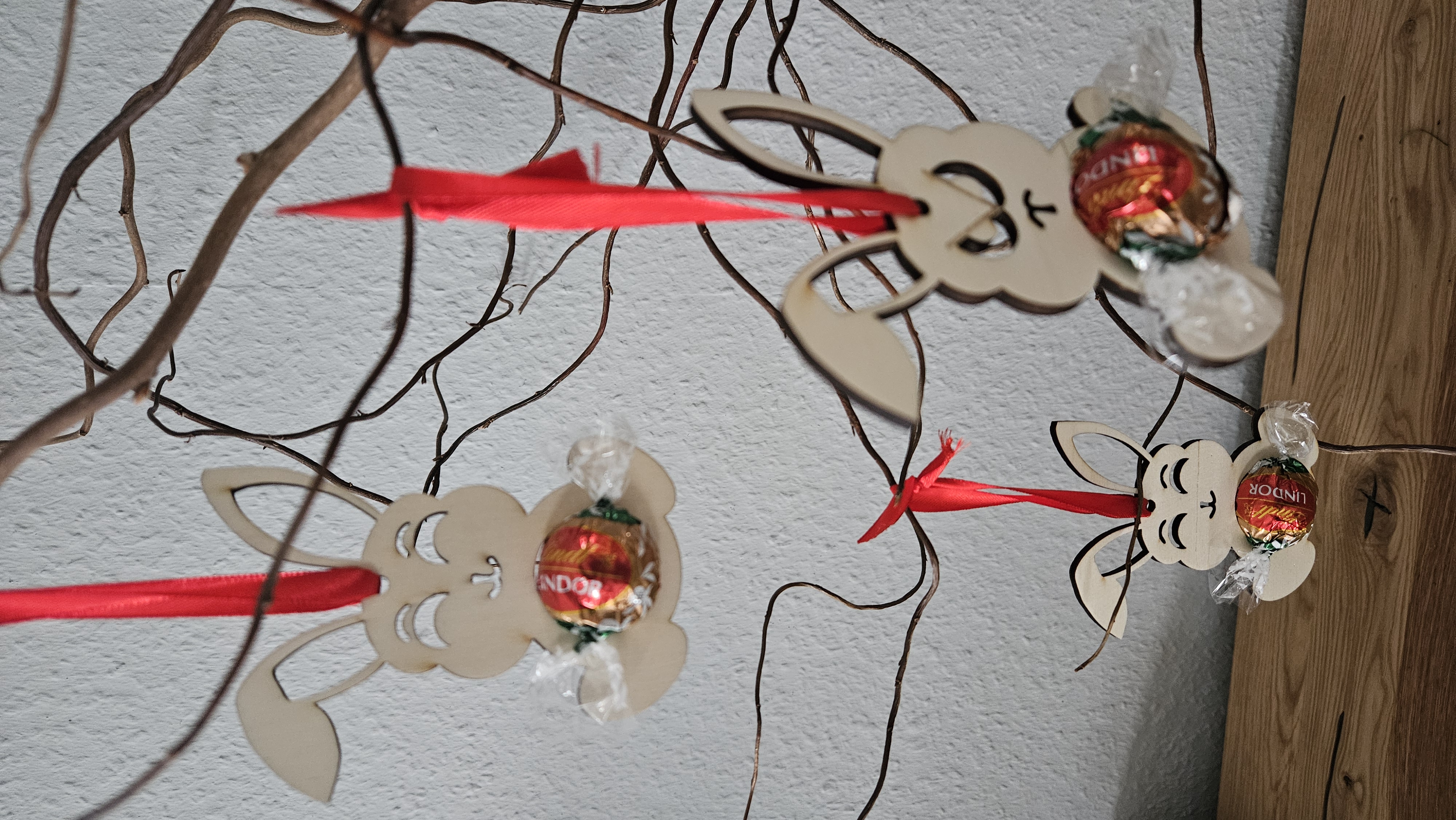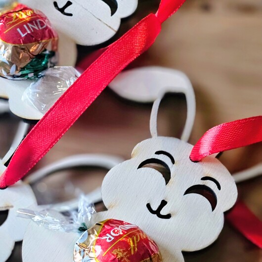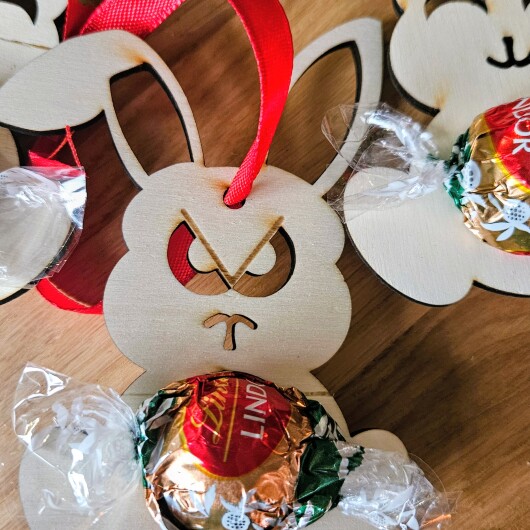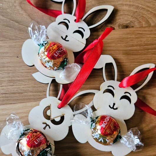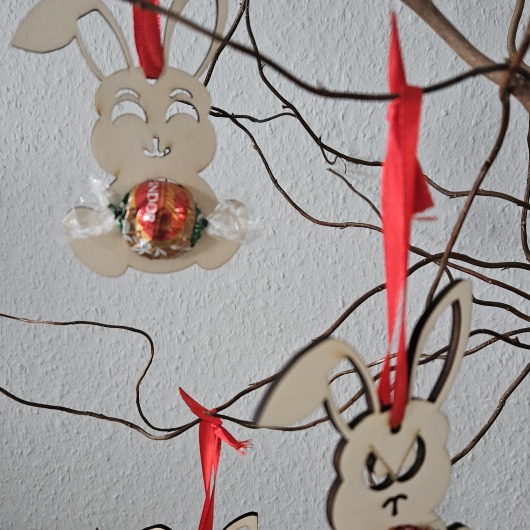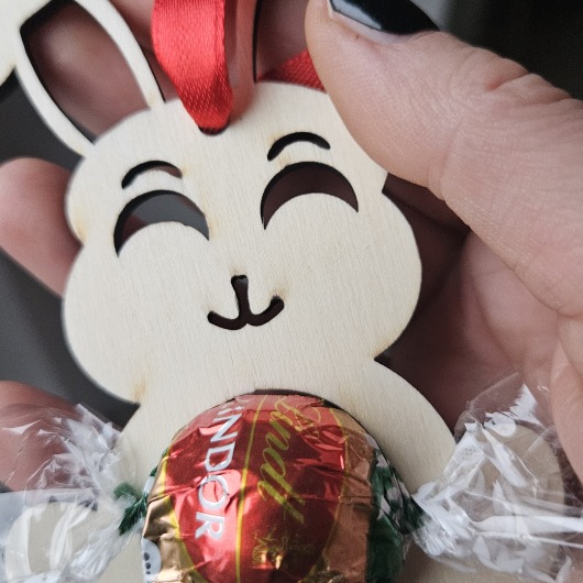 Osterhase aus Holz mit Schokokugel-Halter – "Irgendwas stimmt mit Hasi nicht"